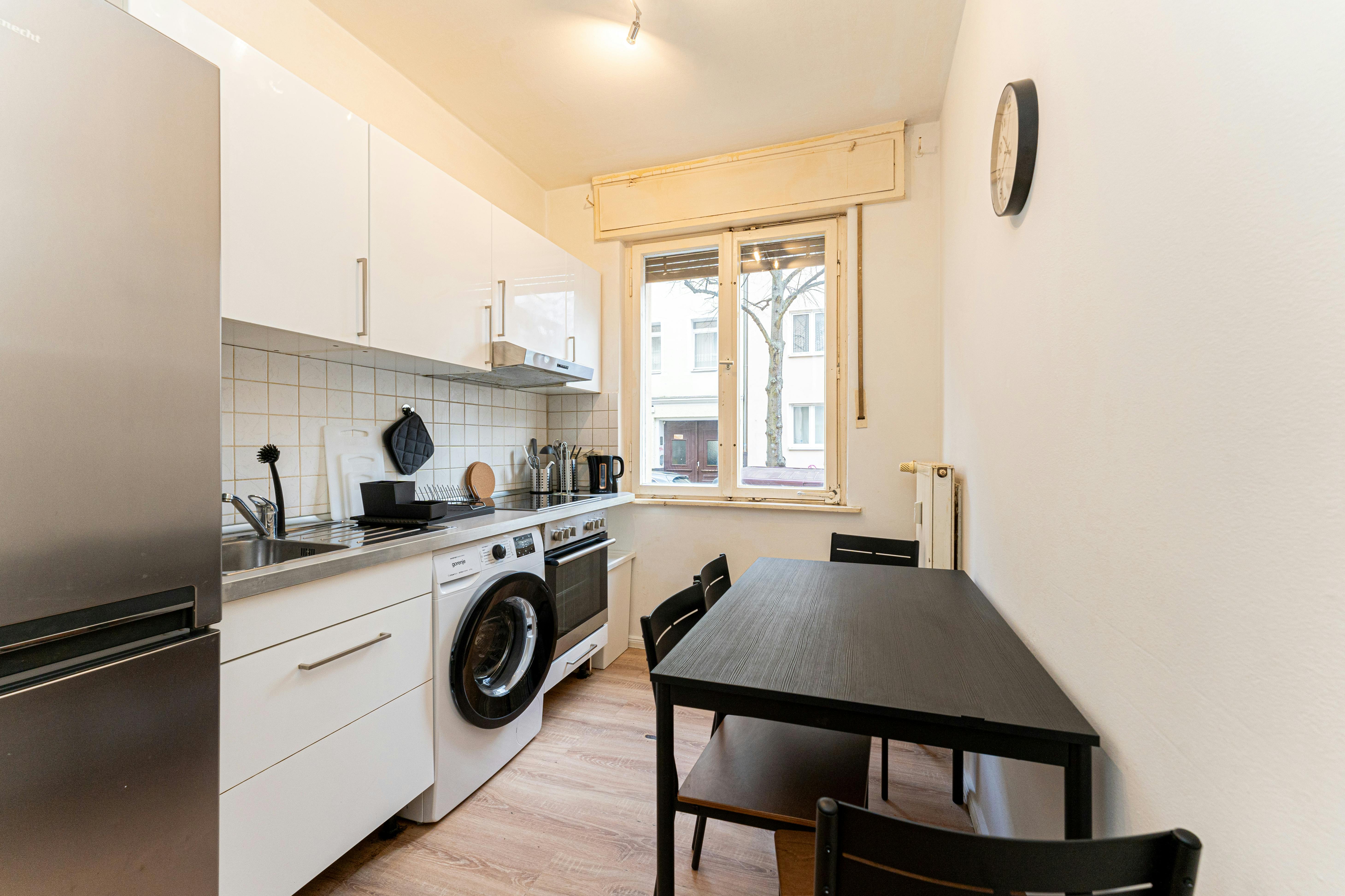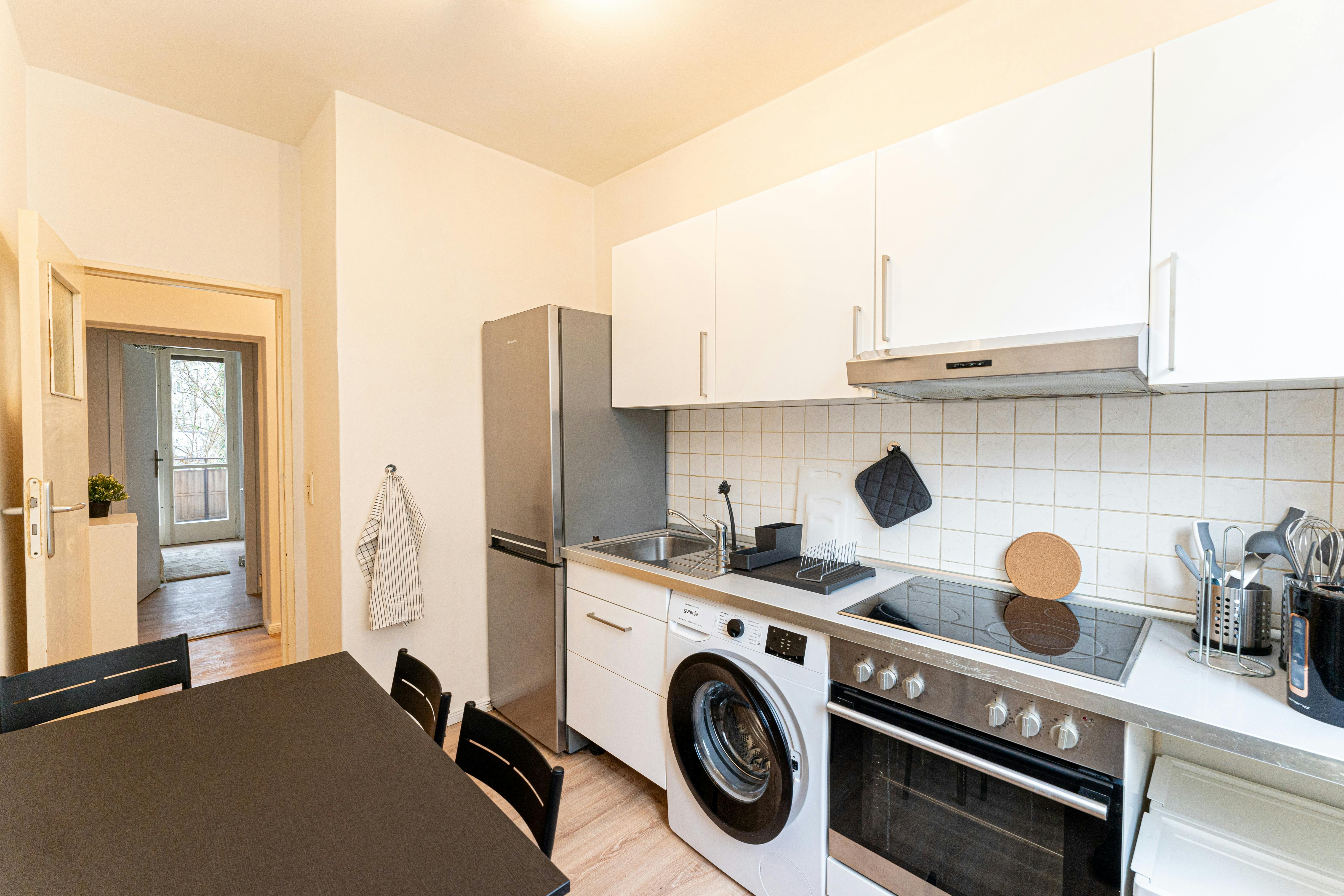 Room 4 Hi Guys, this is a fully furnished room in a shared flat. The room has a comfortable bed, a desk with chair and a wardrobe for your clothes. Also the common areas are fully equipped with washing machine, cooking equipment and all you need for your daily living. Anmeldung/Registration is possible. The monthly rent price is all inclusive (rent + heating + water + Internet + GEZ/german TV license fee). For the move in dates we have only the 1st or the 16th of each month a tenant can move in. In specific cases we have a flexible move in date, but...