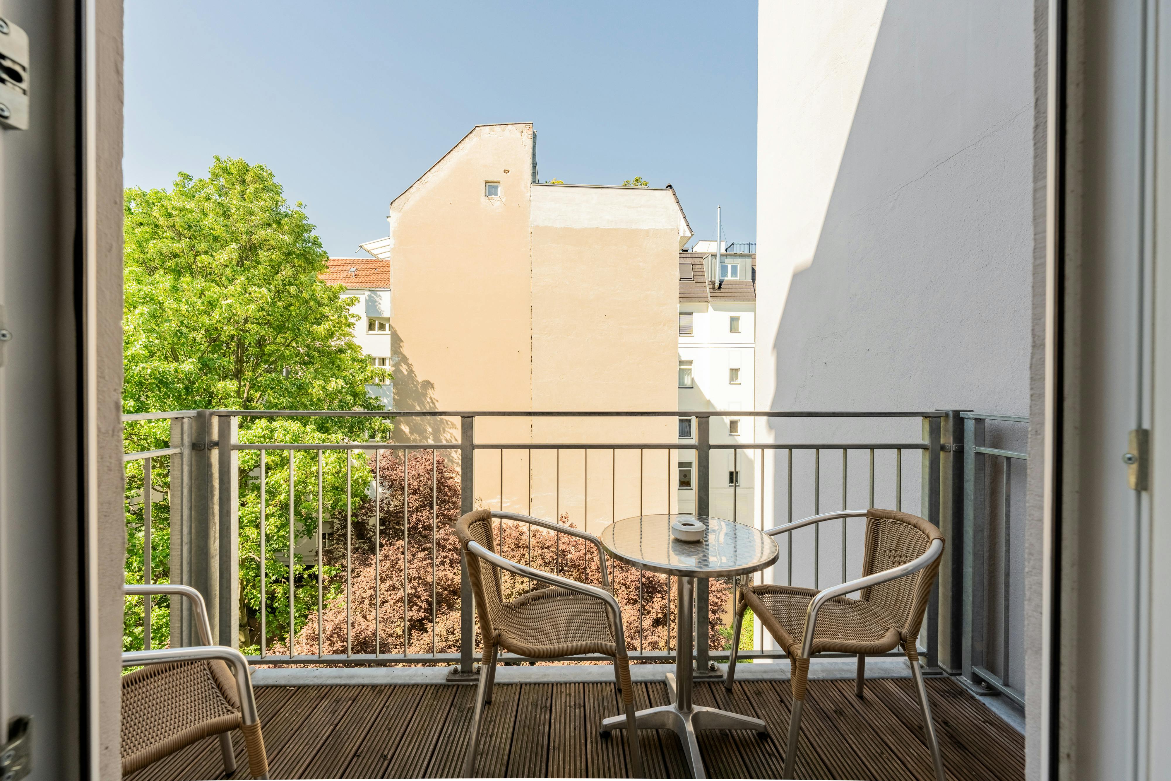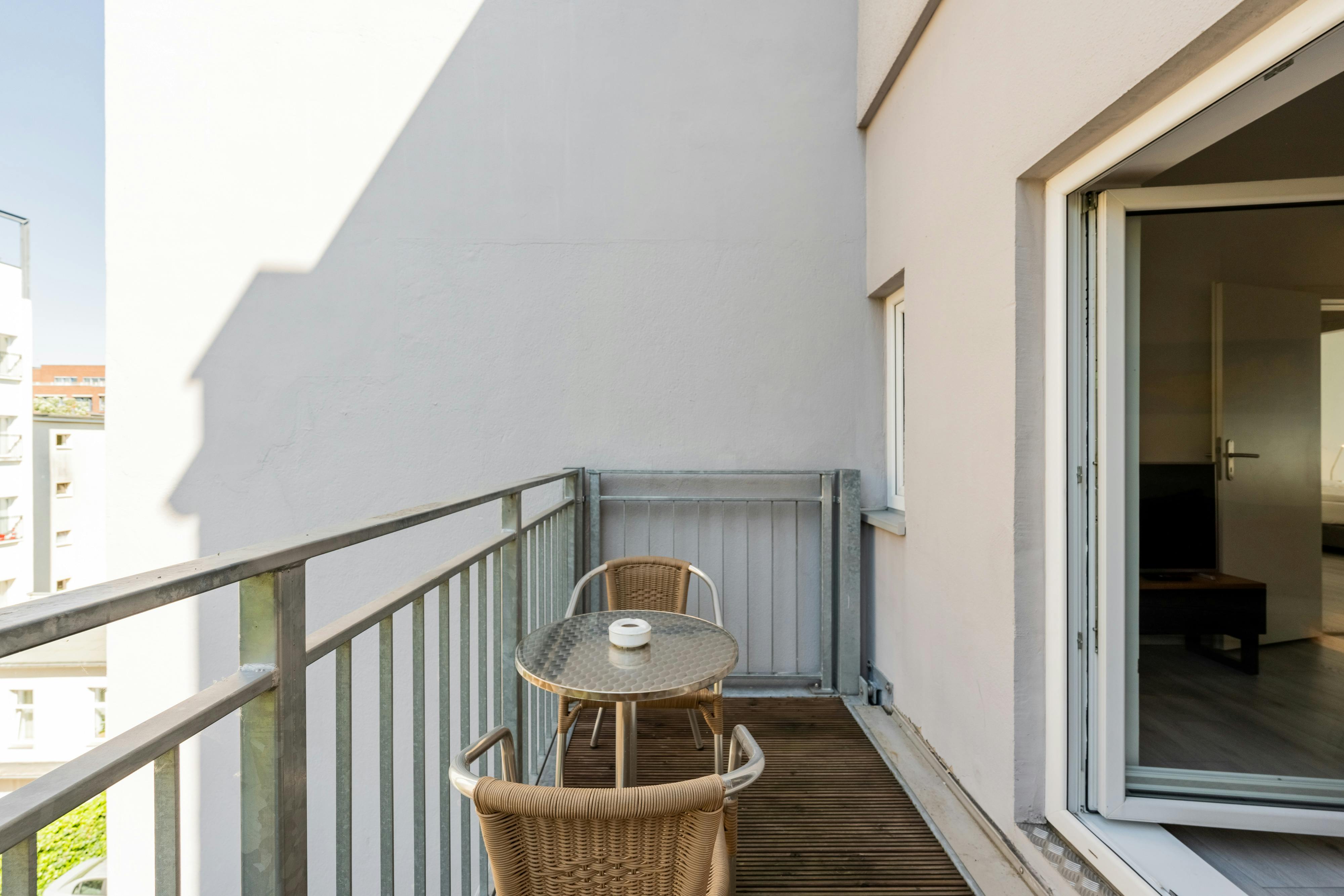 Dreiraumwohnung mit Balkon: für bis zu 3 Personen, modern und behaglich eingerichtet, Wohnzimmer mit Sitzgruppe, Flat TV, High Speed Internet. Modernes Bad mit Wanne/ WC, komplett eingerichtete Einbauküche, Essecke mit Stühlen. Safe in Laptopgröße, Türklingel mit Gegensprechanlage, eigener Briefkasten. Wöchentliche Reinigung mit Wäschewechsel inklusive. Ein gemeinsamer Waschkeller mit Waschmaschinen, Trocknern und Bügelbrettern/-eisen steht allen Bewohnern zur Verfügung. Three-room apartment with balcony: for up to 3 people, modern and comfortably furnished, living room with seating area, flat screen TV, high-speed internet. Modern bathroom with tub/toilet, fully equipped kitchen, dining area with chairs. Laptop-sized safe, doorbell with intercom, private mailbox. Including weekly cleaning with linon change. A shared laundry...
