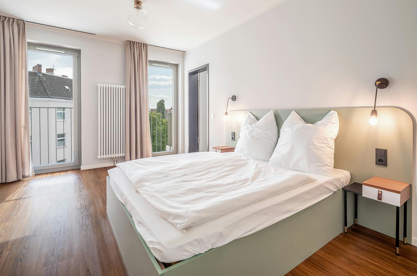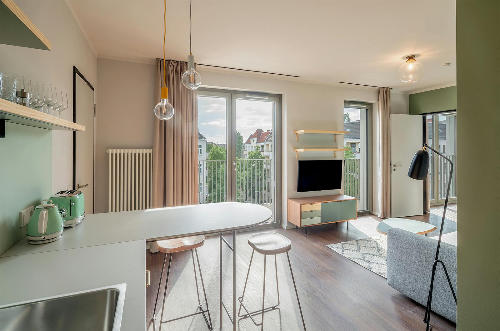 Our Apartments are fully equipped and furnished apartments between 27-67m2. Each type of apartment has been individually designed and offers high quality. Our commitment is to provide a high standard of living comfort, emphasizing aesthetics and digitization, as well as respecting the privacy of our tenants. With a balanced mix of natural materials and selected vintage pieces, we combine simplicity with a warm aesthetic. Here, it's easy to recharge your batteries and clear your head for the next day. Welcome to your new home. Enjoy our largest residential units and make the difference for your life also in living. At 67 square...