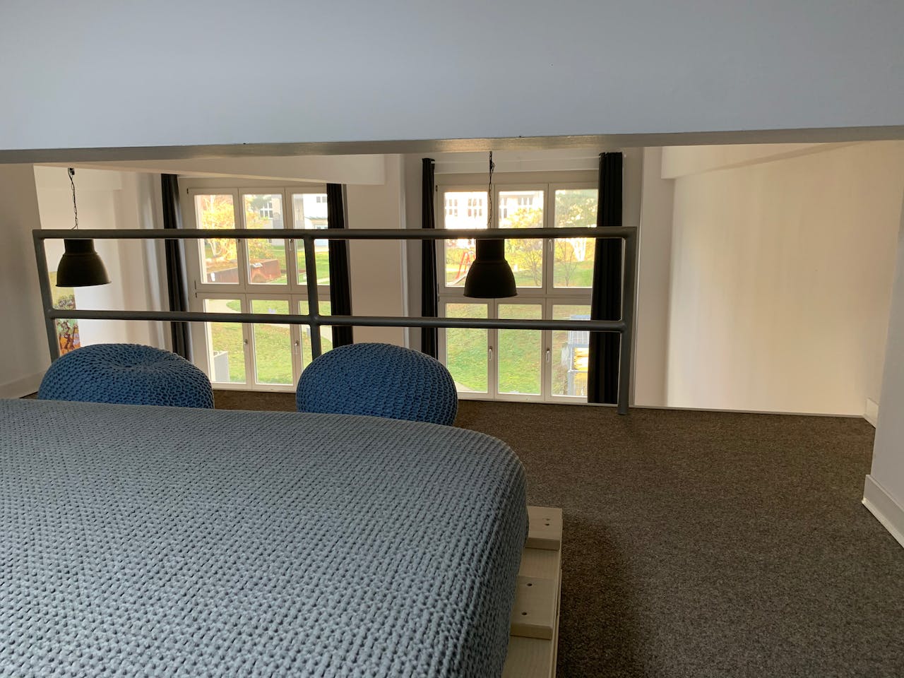 This beautiful, bright, fully furnished studio apartment is on the first floor. A modern open kitchen with dining area and a large, beautiful living area complete the studio apartment. Furnishing • High-quality furnished 1.5-room studio apartment with parquet floor • Sleeping area with kingsized double bed 180x200cm, on the gallery level • Comfortable, bright living and dining area with a ceiling height of 3.7 meters • Fitted kitchen with ceramic hob, microwave, Nespresso coffee machine, fridge-freezer, dishwasher, an island breakfast table with high chairs • Modern bathroom with high-quality equipment from Grohe, toilet, bathtub and separate shower; Miele Washing machine and dryer combination is available Video apartment...