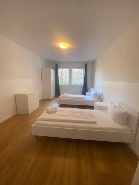 Big apartment in the city center. The apartment is fully equipped with 3 bedrooms. Max occupancy 4/6 persons. The first forniture of towels and bed linen are also included. The big flat has also as common area, one bathroom with bathtube, one big dining room with kitchen. The area is in Mitte close to Postdamerplatz and Brandenburger Gate. The bis shopping center Mall of Berlin is only 300 meter far away. Dieses schöne und geräumige 4 Zimmer Apartment mitten in Berlin ist perfekt für 4/6 Personen. Die Küche ist komplett ausgestattet mit allem was Sie zum Kochen benötigen. Im großem Wohnzimmer...