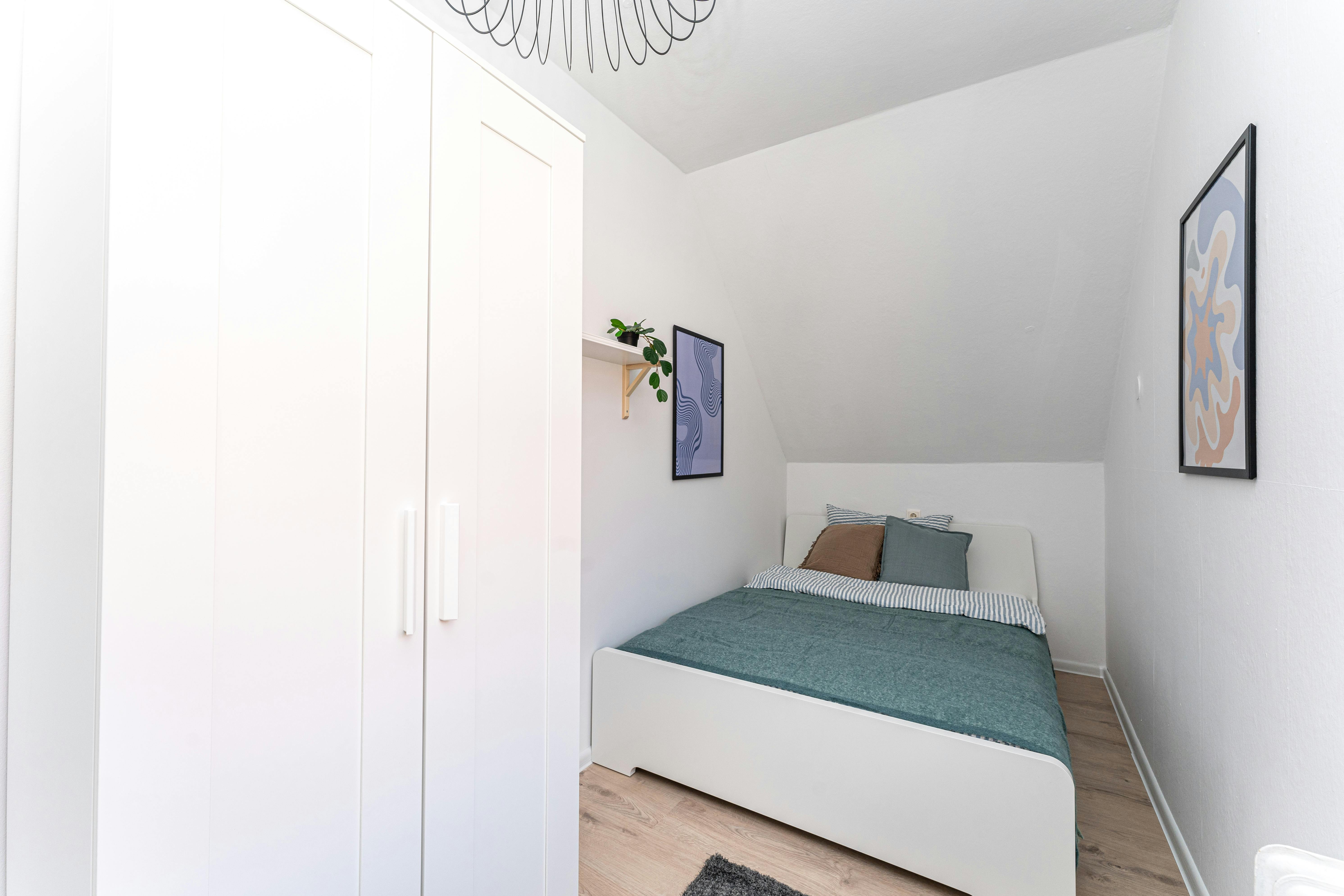Room 5 Hi Guys, this is a fully furnished room in a shared flat. The room has a comfortable bed, a desk with chair and a wardrobe for your clothes. Also the common areas are fully equipped with washing machine, cooking equipment and all you need for your daily living. Anmeldung/Registration is possible. The monthly rent price is all inclusive (rent + heating + water + Internet + GEZ/german TV license fee). For the move in dates we have only the 1st or the 16th of each month a tenant can move in. In specific cases we have a flexible move in date, but...