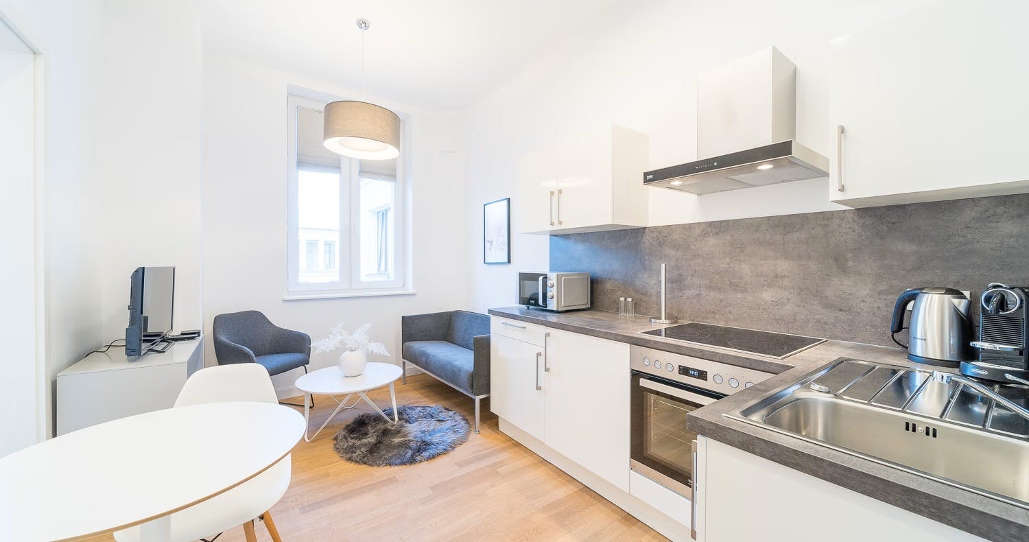 ? Cozy 1-Bedroom Apartment in Berlin Wilmersdorf – Stylish Living in a Prime Location Welcome to your serene city retreat! This bright and modern 1-bedroom apartment (completed in 2020) is perfectly located in the elegant district of Wilmersdorf — just a 10-minute walk from the iconic Kurfürstendamm. Designed for comfort and convenience, it’s ideal for professionals or couples seeking a stylish and peaceful home base in Berlin. HOUSE ? Located on the 4th floor of a modern building (built in 2020) ? Elevator access for easy convenience ? Quiet and secure building in a well-kept residential area APARTMENT ✨ Open-plan living area with modern furnishings ?️ Cozy sofa...