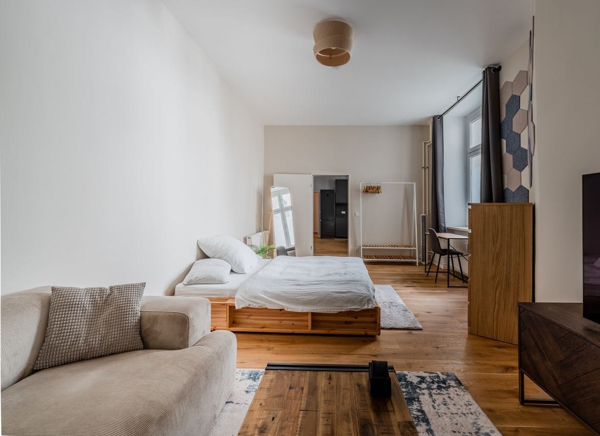 This stylish 60 m2 apartment combines the charm of a classic Berlin Altbau with modern comfort. Tucked away in the rear building facing a quiet courtyard, it offers a peaceful retreat in the heart of Neukölln. The flat features two well-proportioned rooms, an open-plan kitchen with a modern dishwasher, oven, and microwave, and a renovated bathroom with a bathtub and rain shower. High-quality wooden parquet flooring adds warmth throughout. A washer and dryer are also included. The interior is modern and thoughtfully designed, with a large 55" HDR TV for entertainment. Excellent transport connections: • Ringbahn (S Sonnenallee) and...