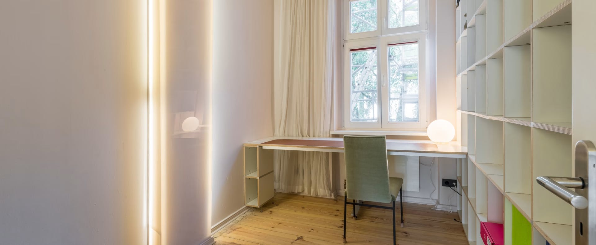 ? Stylish 2-Bedroom Apartment in Prenzlauer Berg – Bright, Spacious & Fully Equipped ??️✨ This beautifully furnished 3-room apartment on Gaudystr. 11 offers modern living in one of Berlin’s most charming neighborhoods. With generous space and classic Altbau character, it’s ideal for couples, small families, or shared living. HOUSE ? Located in a classic Altbau building in quiet Prenzlauer Berg ? Positioned on an upper floor with green surroundings ? Calm residential area with secure entry ? Name tag on the mailbox possible APARTMENT ?️ One bedroom with double bed and storage ? Separate office with cozy charm ?️ Bright living room with sofa, Smart TV, and dining space ?️ Fully...