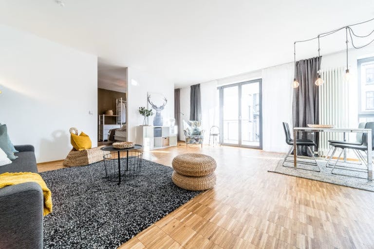 ? 1-Bedroom Apartment in Friedrichshain – Bright, Trendy & Well-Connected ?️?️✨ This fully furnished 1-bedroom apartment on Kadiner Str. 18 offers the perfect mix of comfort and location in Berlin’s lively Friedrichshain district. Ideal for singles or couples looking for a calm home in a vibrant area. HOUSE ? Located in a well-maintained residential building ? Situated on the 2nd floor, facing a quiet street ? Peaceful atmosphere with secure entry ? Name tag on the mailbox possible APARTMENT ?️ Bedroom with a comfortable double bed and wardrobe ?️ Living room with Smart TV, sofa, and dining table ?️ Fully equipped kitchen with oven, fridge, and dishwasher ? Bathroom with walk-in...