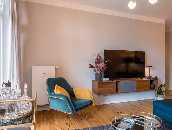 ? Stylish 1-Bedroom Apartment in Prenzlauer Berg – Design, Comfort & Light ?️?✨ Located on Käthe-Niederkirchner-Straße 31, this beautifully furnished 2-room apartment offers a calm retreat with designer finishes in vibrant Prenzlauer Berg. Ideal for singles or couples looking for elegance and connection in one of Berlin’s most popular areas. HOUSE ? Renovated Altbau building in a peaceful residential street ? Upper-floor unit with bright, quiet atmosphere ? Secure entry and well-maintained property ? Name tag on the mailbox possible APARTMENT ?️ Bedroom with a comfortable double bed and wardrobe ?️ Stylish living room with sofa, dining table, and Smart TV ?️ Fully equipped kitchen with oven, fridge, and dishwasher ?...