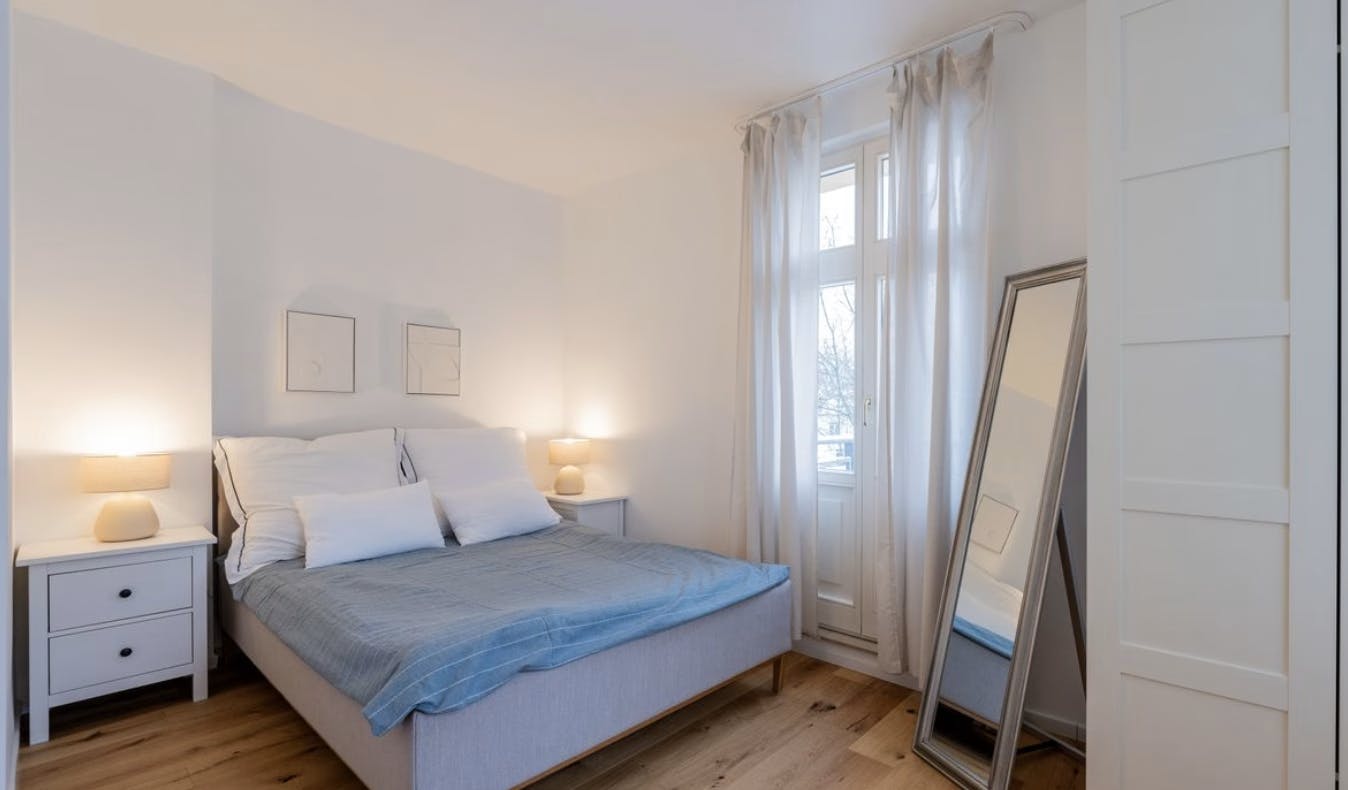 ? Modern & Stylish 2-Room Apartment in Grün & Secure Area – Regattastraße 137 ?️?✨ Enjoy relaxed city living in this fully furnished 2-room apartment at Regattastraße 137. With a bright interior and peaceful green surroundings, this residence suits those looking for style and comfort in a safe Berlin neighborhood. ? About the House: - Modern residential building surrounded by greenery - Quiet courtyard location for a peaceful ambiance - Mid-floor unit with elevator access - Secure premises with controlled entry ?️ About the Apartment: - 55 m2 of stylish, well-planned living space - Bedroom with double bed and built‐in wardrobe - Living area with sofa, Smart TV, and dining...