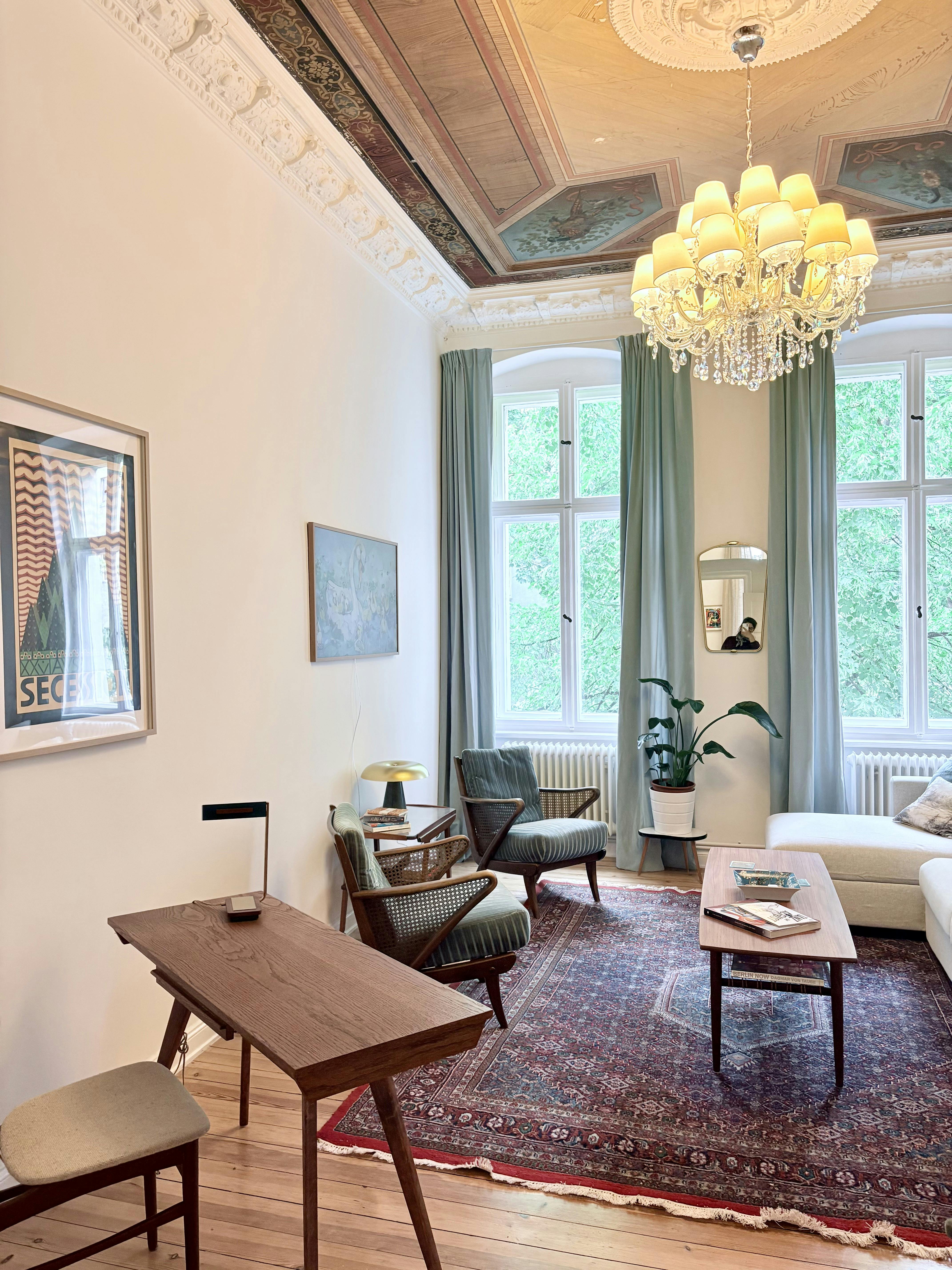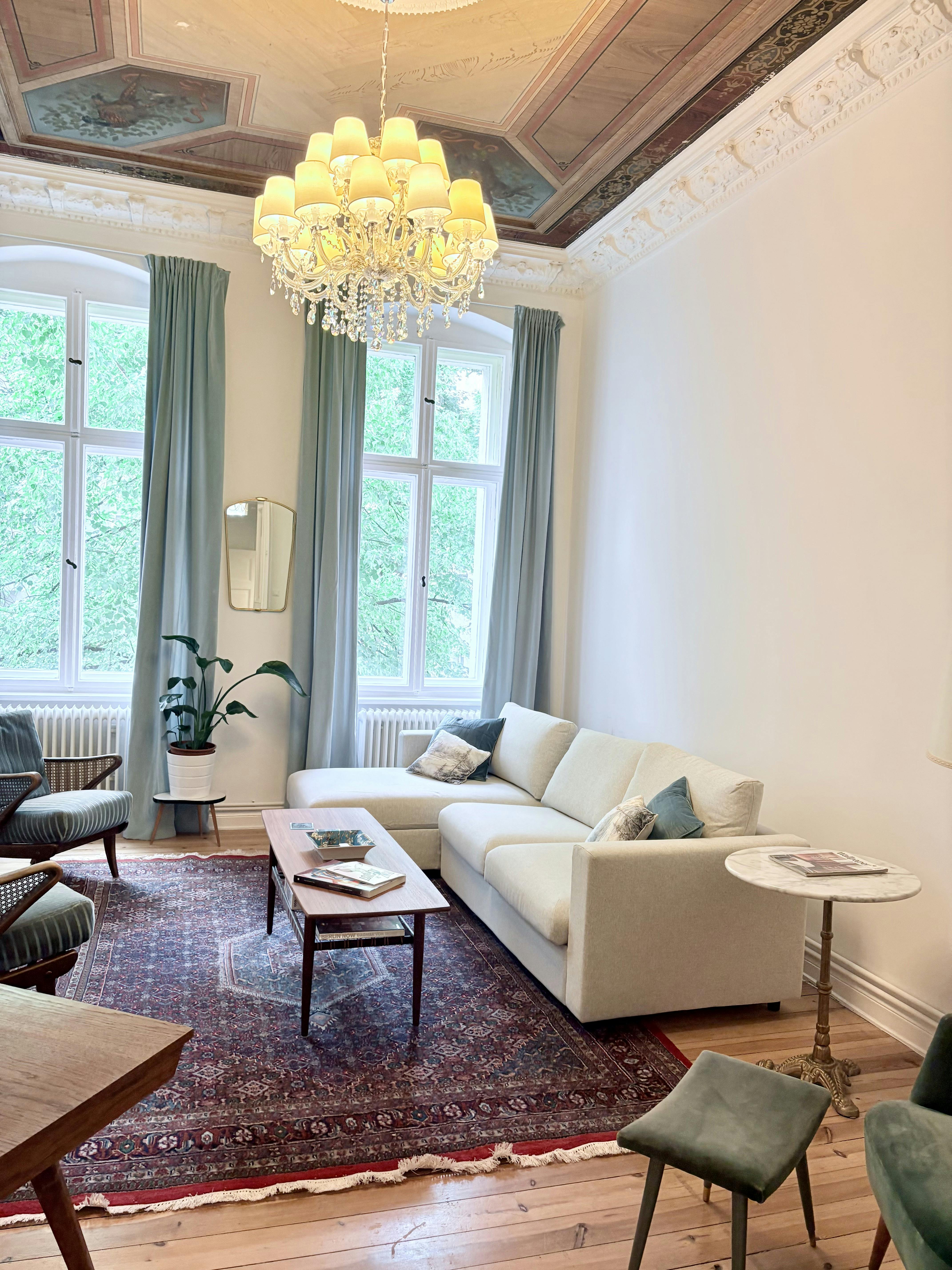 This beautifully restored apartment is located on Willmanndamm, a peaceful, tree-lined street in Berlin's popular Schöneberg district. With fantastic public transport options and local cafés right around the corner, it's an ideal location for business travelers and remote workers.