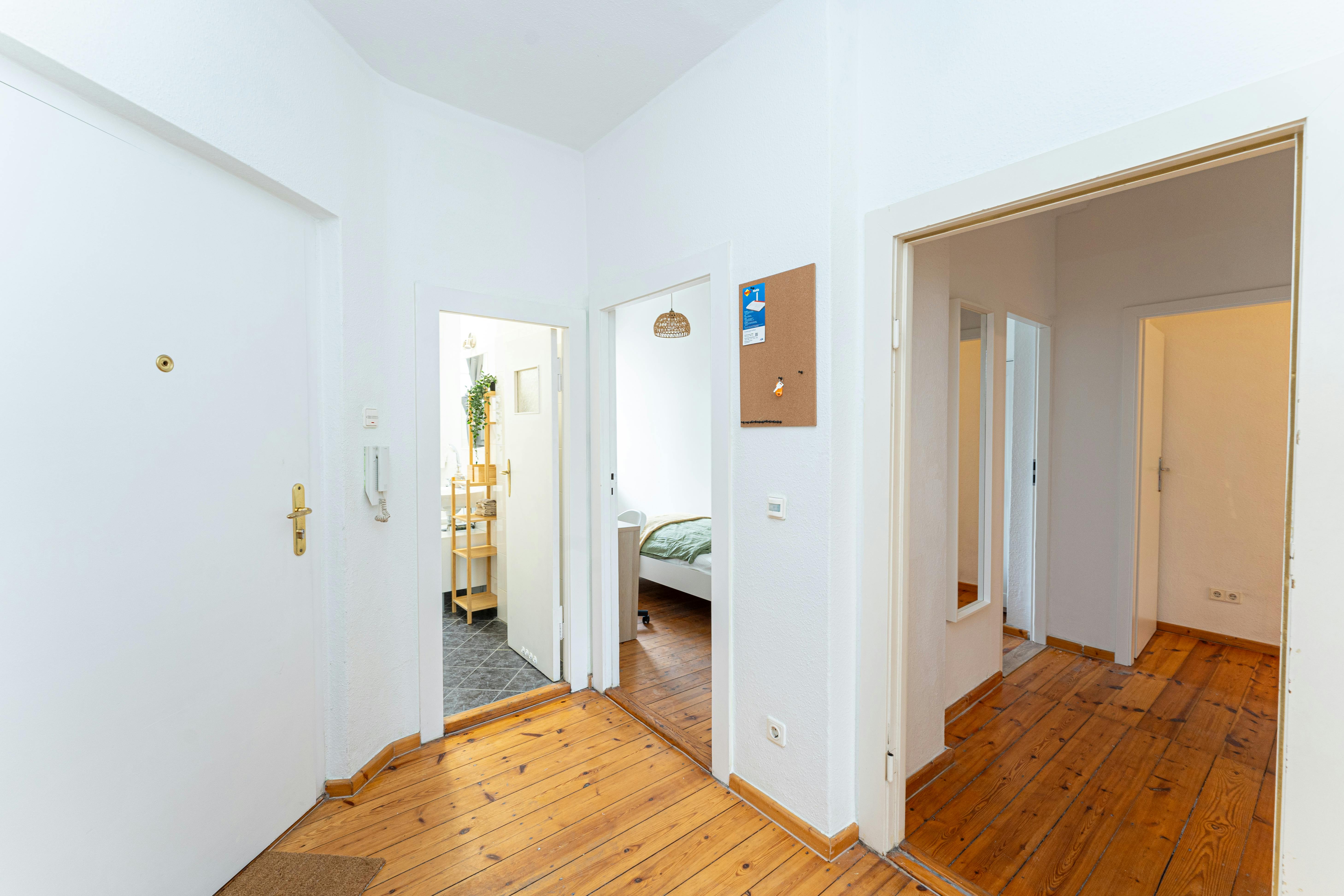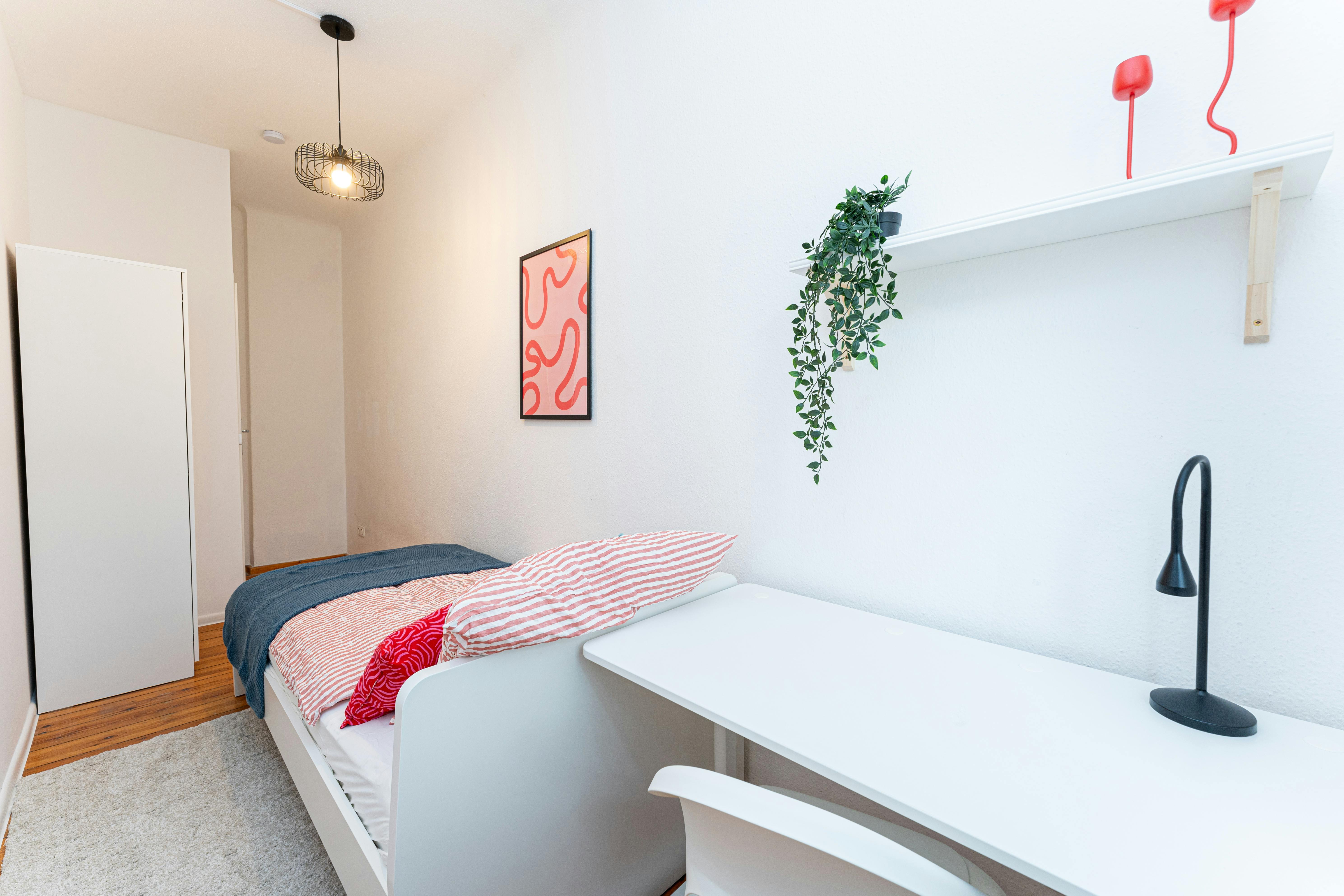 Room 2 Hi Guys, this is a fully furnished room in a shared flat. The room has a comfortable bed, a desk with chair and a wardrobe for your clothes. Also the common areas are fully equipped with washing machine, cooking equipment and all you need for your daily living. Anmeldung/Registration is possible. The monthly rent price is all inclusive (rent + heating + water + Internet + GEZ/german TV license fee). For the move in dates we have only the 1st or the 16th of each month a tenant can move in. In specific cases we have a flexible move in date, but...
