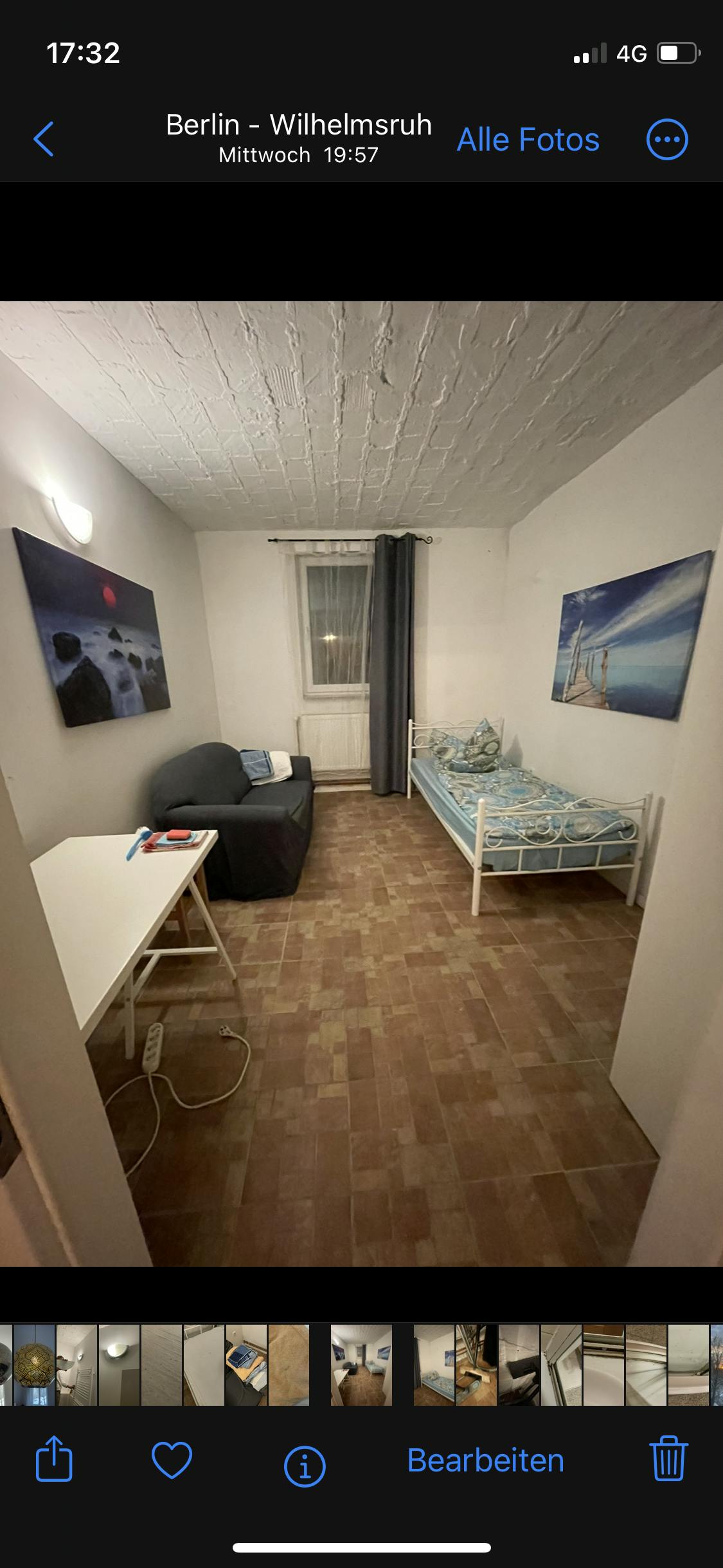 Schöne helle und liebevoll sanierte Wohnung mit Blick in den Park für 1-4 Personen mit einer sehr gut ausgestatteten Wohnküche, Duschbad mit Toilette, bepflanztem Innenhof mit Gartenmöbeln und drei separaten Zimmern. Die Zimmer haben je ein Bett, Schrank, Kommode, Schreibtisch mit Stuhl sowie Verdunklungsvorhänge. Dieses Zimmer könnte auch mit einem zusätzlichen Bett ausgestattet werden. 200 Euro kämen monatliche Miete hinzu. Durch die Superlage der Wohnung können sie mit der S-Bahn alle 10 Minuten Berlin-Mitte innerhalb von 10-15 Minuten erreichen. Die Wohnung liegt direkt an einem See mit anschließendem großen Park und in der Hauptstraße befindet sich ein Edeka sowie viele...