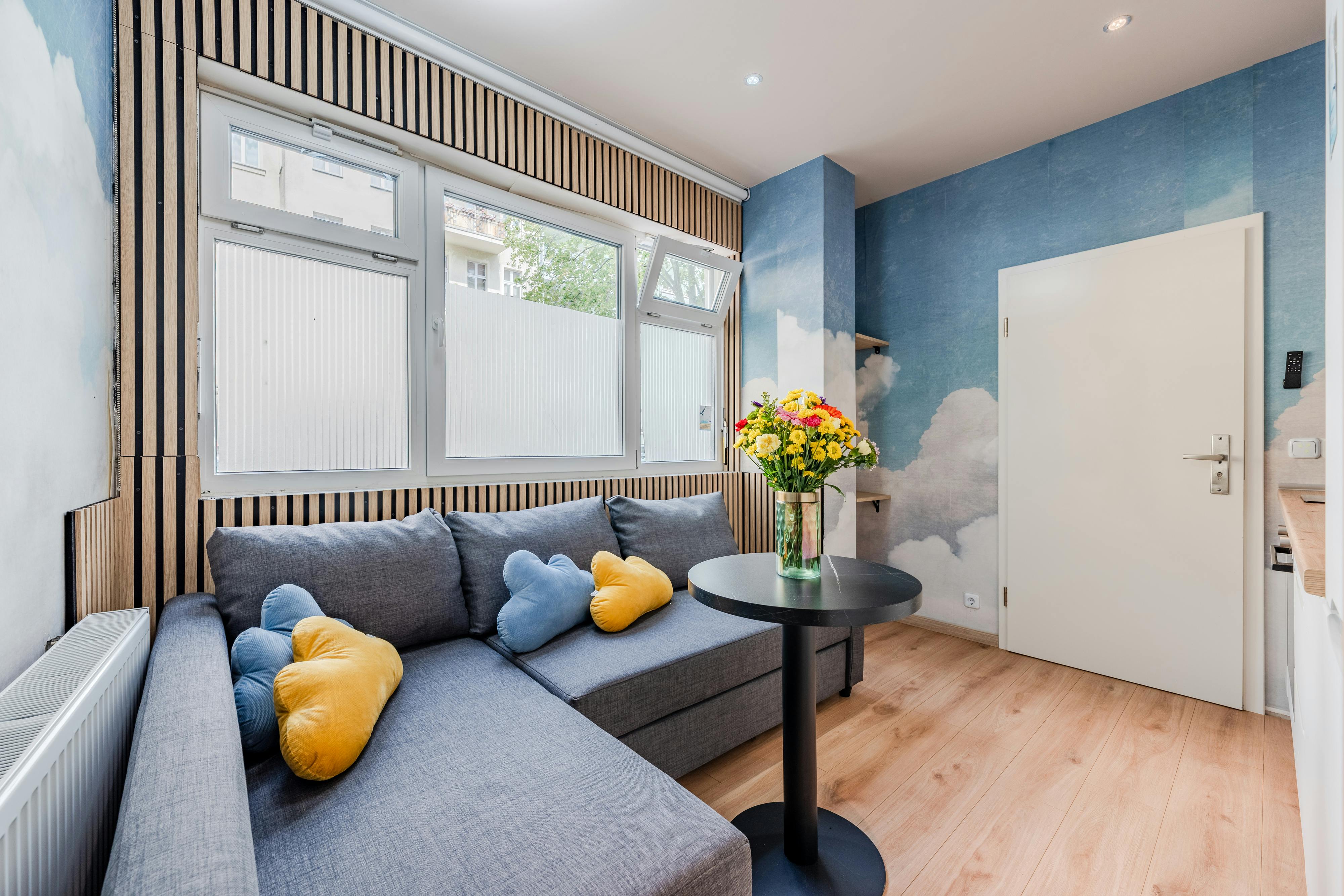 Fully Furnished Ground Floor Apartment in Central Berlin This compact, fully furnished apartment is located on the ground floor of a residential building in a central Berlin neighborhood. It is well-suited for longer stays, whether for work or personal reasons. Features: Combined living and sleeping area with a 140x200 cm bed and an additional sleep sofa (140x200). Fully equipped kitchen with stove, oven, microwave, refrigerator, coffee maker, cookware and utensils and washing machine Dedicated desk for working or studying Modern bathroom with shower, towels, and basic toiletries High-speed WiFi included Private entrance directly from the street, no stairs Location: The apartment is situated in a lively and diverse...
