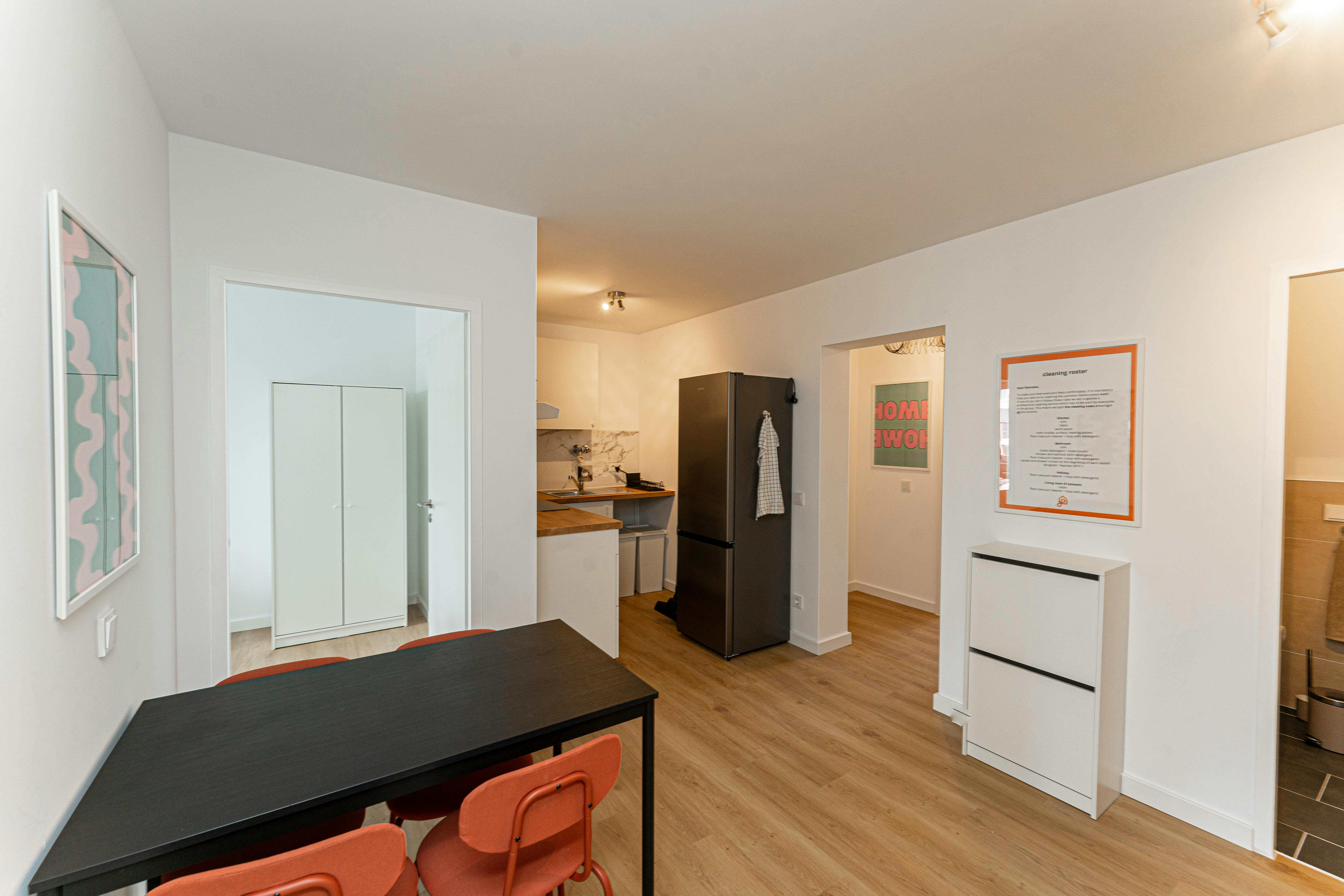 Hi Everyone, We’re excited to offer a bright and fully furnished room (Room 4) in a shared apartment on the 6th floor. The room is equipped with a comfortable bed, desk, chair, wardrobe and a shared balcony (with Room 5) – ideal for studying, working, or simply relaxing. The apartment includes shared access to the kitchen and bathroom, which are fully equipped with all essentials, including kitchen supplies and a washing machine. ? Registration (Anmeldung) is possible, making it suitable for both students and professionals staying longer term in the city. ? The monthly rent is all-inclusive, covering rent, heating, water, high-speed internet,...