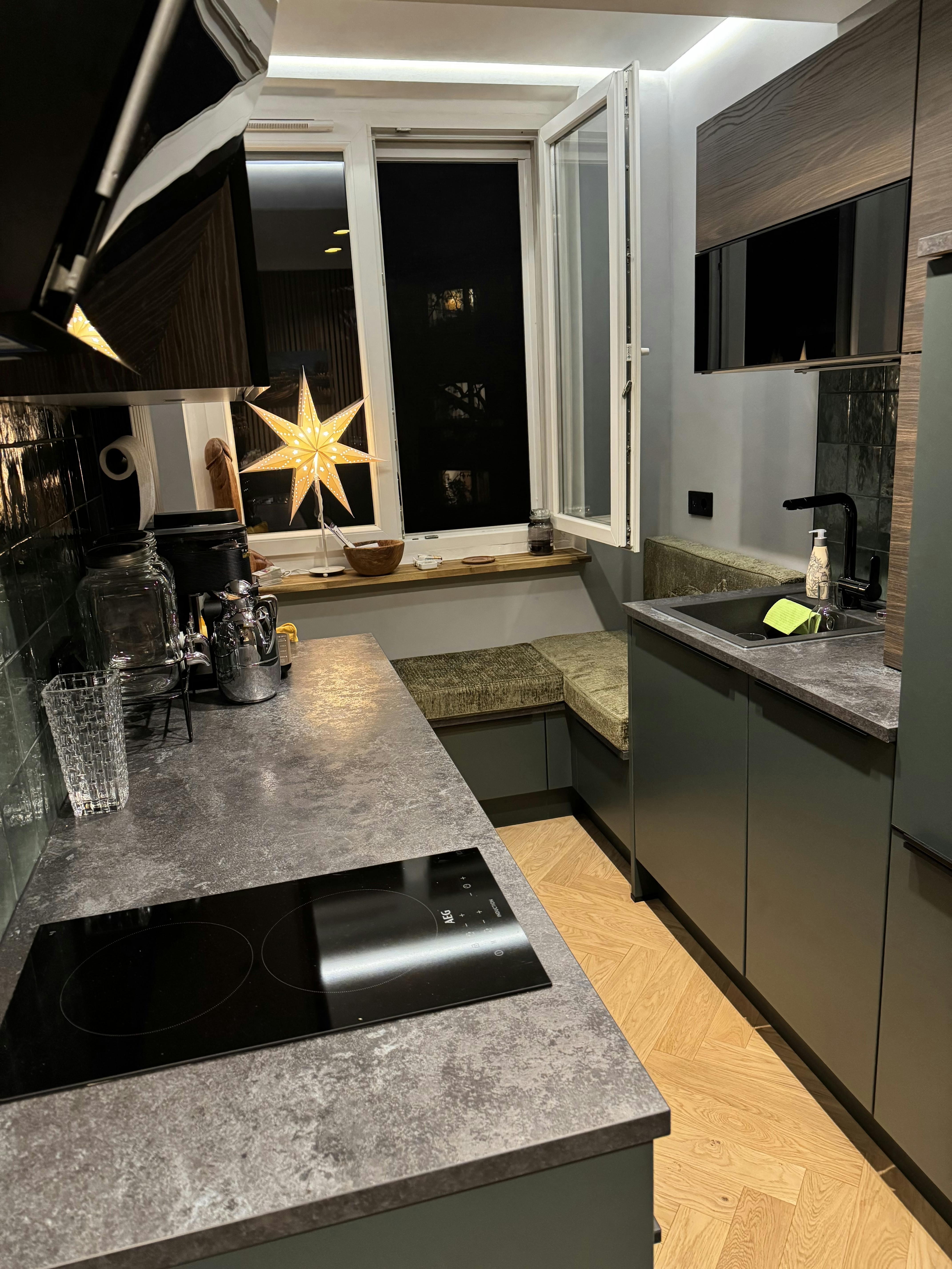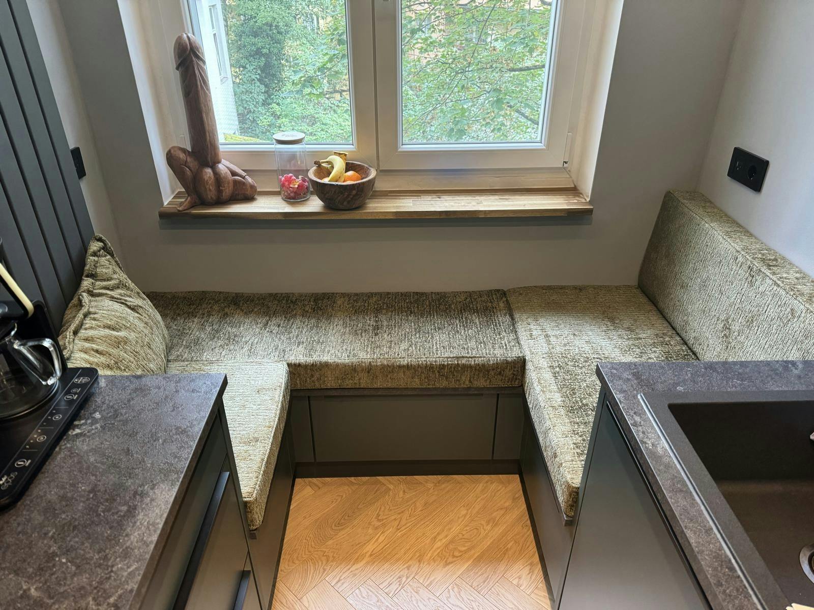 Es handelt sich um eine frisch kernsanierte Luxuriöse Wohnung mit Balkon, Einbauküche, Klimaanlage. Echtholzpaket und neuem Badezimmer mit Regendusche. Die Wohnung isst hochwertig ausgestattet und die Möbel kommen vom Schreiner.