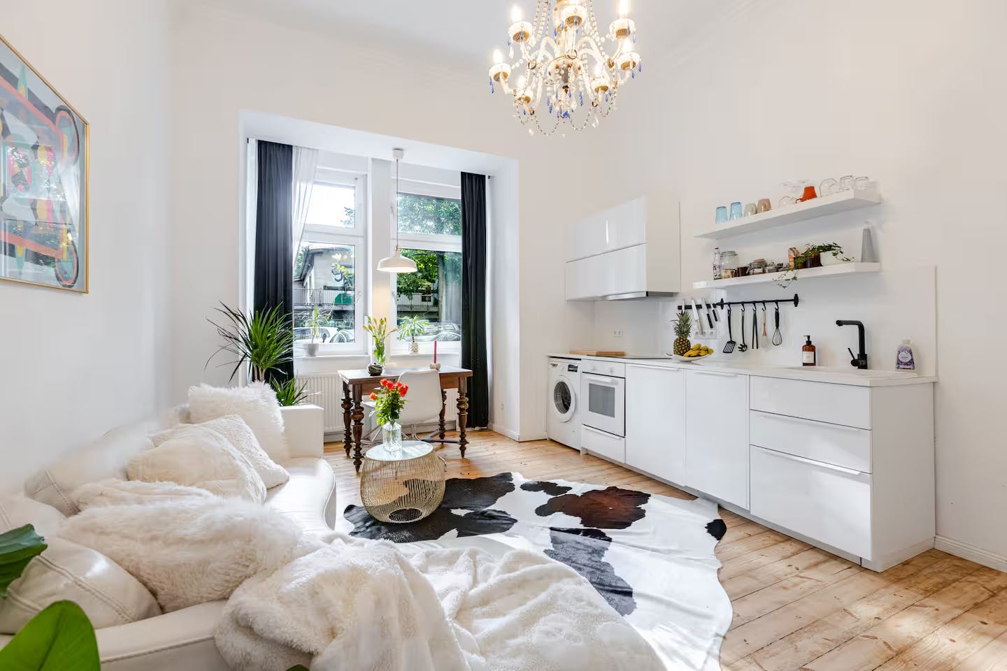 Absolut beautiful 2 rooms designer apt located in a characteristic Berlin old house, at an unbeatable location. Right at the famous Berlin park Tempelhofer Feld, in central popular district Neukölln, neighboring Kreuzberg, Prenzlauer Berg, Friedrichshain and Mitte. Easy access to 2 subway stations connecting 2 major lines, with numerous public transport connections, quick ride into Alexanderplatz and all other districts. The apt is nearly 50 sqm, 1 bedroom can sleep 2 (+1 child). - Unique designer style, original Berlin spirit - Airy sunny space with high ceilings - Quiet street - Real hard wood floor - Spacious bathroom with walk in shower - Full kitchen...