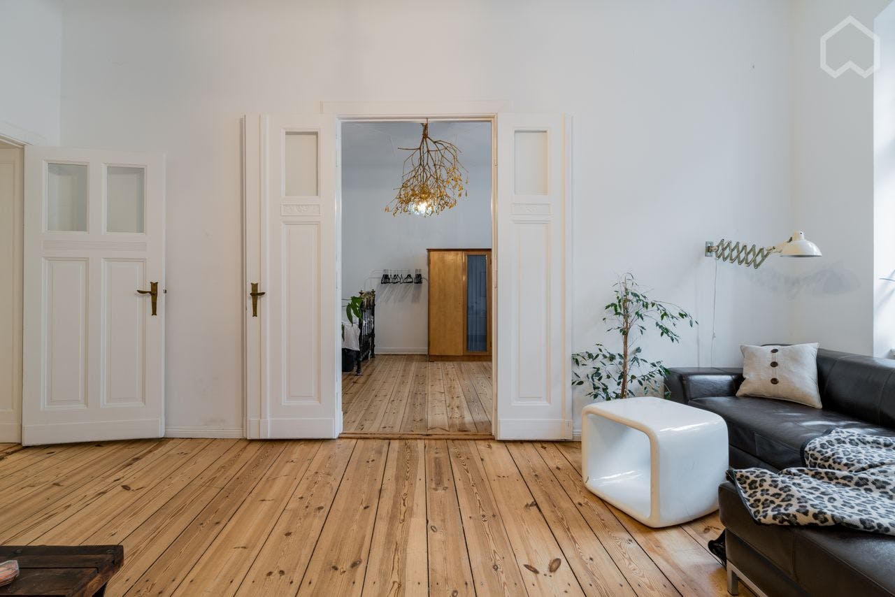 You come all the way to Berlin, so you should live in a true Berlin place. Cozy 2-room apartment located in a typical Berlin-style building, in an unbeatable central Neukölln location, right next to vibrant Kreuzberg. Just steps away from two large parks and the canal, with easy access to three subway stations connecting two major lines, offering a quick ride to anywhere in the city. * Unique designer style with authentic Berlin character * Bright and airy space with exceptional 4-meter-high ceilings * Genuine hardwood floors * Two spacious, sun-filled rooms * Desk and chairs for home working * Sunny balcony * Spacious bathroom with walk-in shower *...