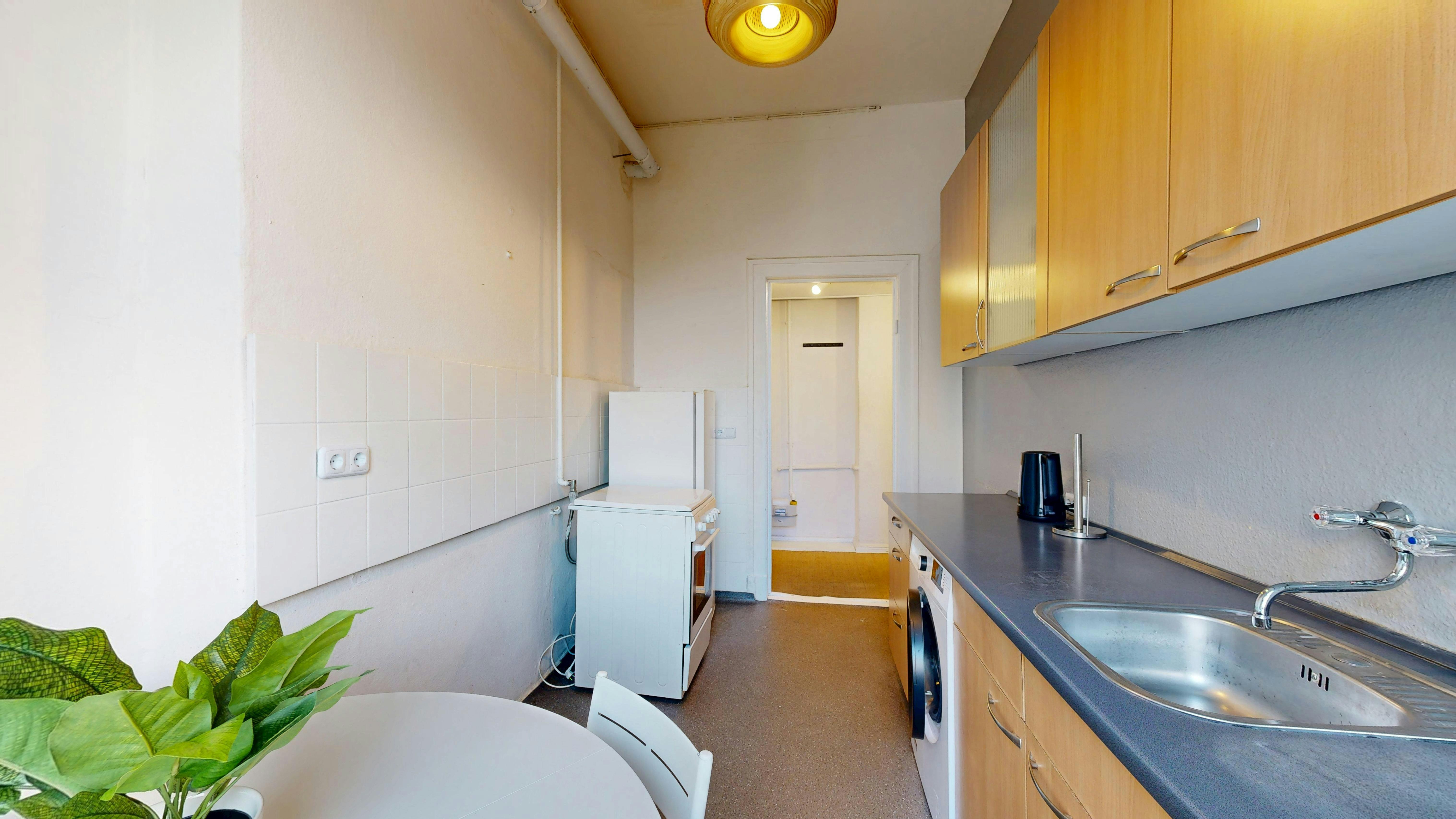 A beautifully designed 2-bedroom apartment on the first floor in Gesundbrunnen. This fully furnished, fully equipped apartment is perfect for flatmates or a family who are looking for a cosy place. Just a 2-minute walk to S-Bahn Wollankstraße (lines S1, S26); reach Friedrichstraße or Hauptbahnhof in about 12–13 minutes Multiple bus stops right outside the building for easy connections All essential shops, including a large REWE, cafés, restaurants, doctors, and pharmacies within a 5-minute walk Bürgerpark Pankow, with its rose garden and beer garden, a pleasant 5-minute stroll away. The apartment includes: -Fully accessorised kitchen -Washing machine -TV -High-speed WiFi -Electricity, heating and utilities included in rent -Registration (Anmeldung)...