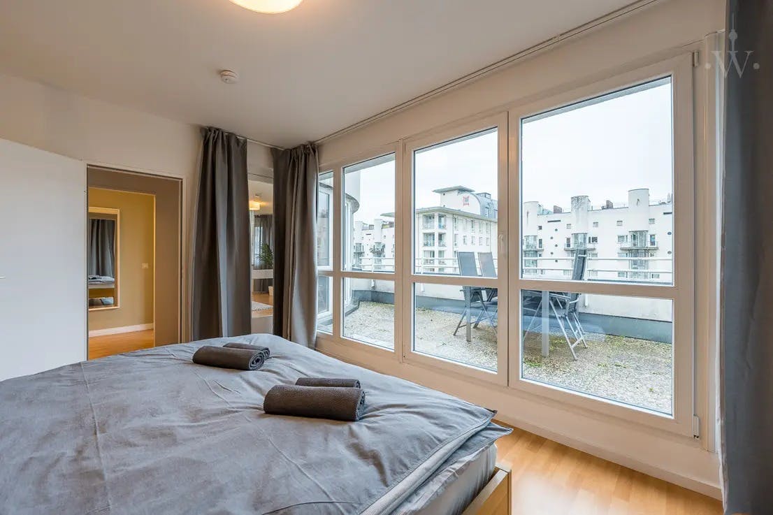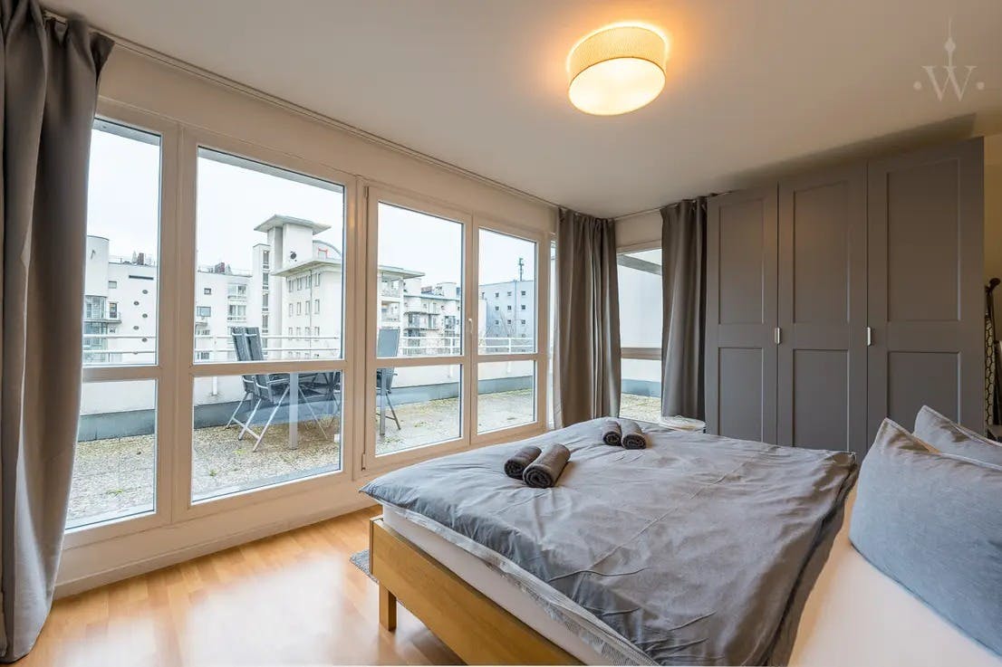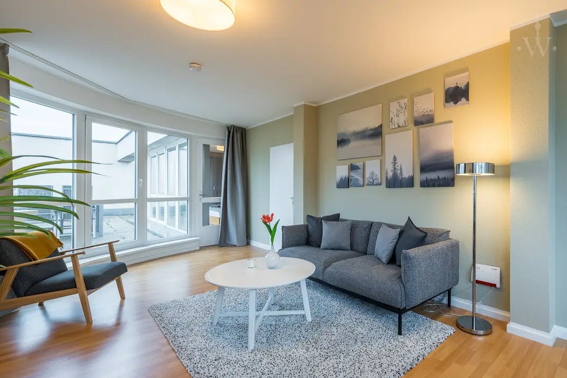 ??? Our 2-room apartment with large roof terrace This lovingly and stylishly furnished apartment is located on a quiet side street right next to Checkpoint Charlie. It features a spacious, bright living room with a dining area and a large roof terrace, perfect for relaxing and enjoying the sunshine. The apartment also includes a high-quality kitchen, a comfortable bedroom, and a bathroom with a bathtub. This lovingly and stylishly furnished apartment is located in a quiet side street directly at Checkpoint Charlie. You can expect a spacious, bright living room with a dining area and a large roof terrace, which promises many hours...