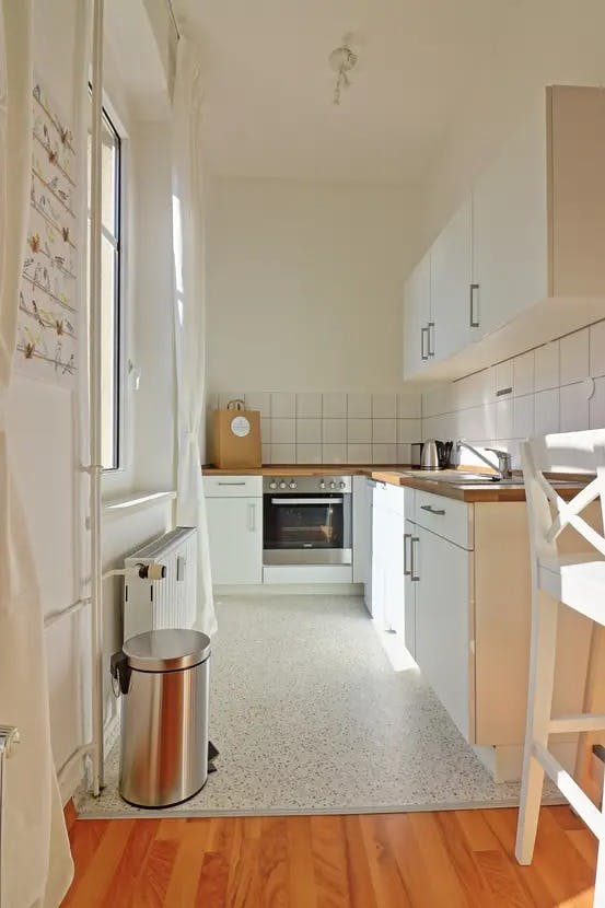 ??? Cozy 1-room apartment in beautiful Pankow This cozy 1-room apartment is located on the third floor of a beautiful old building constructed in 1905 and features a living and bedroom with a nice open kitchen and a modern shower room. The property is within walking distance of the Greifswalder Straße S-Bahn station. Ostseeplatz and Antonplatz, with their numerous restaurants, bars, and shops, are just a short walk away. The beautiful Weißensee lido can be reached in only 20 minutes. Internet with 100 Mbit/s, optionally expandable to 250 Mbit/s (extra charge) When renting with pets, there is a fee per pet ???