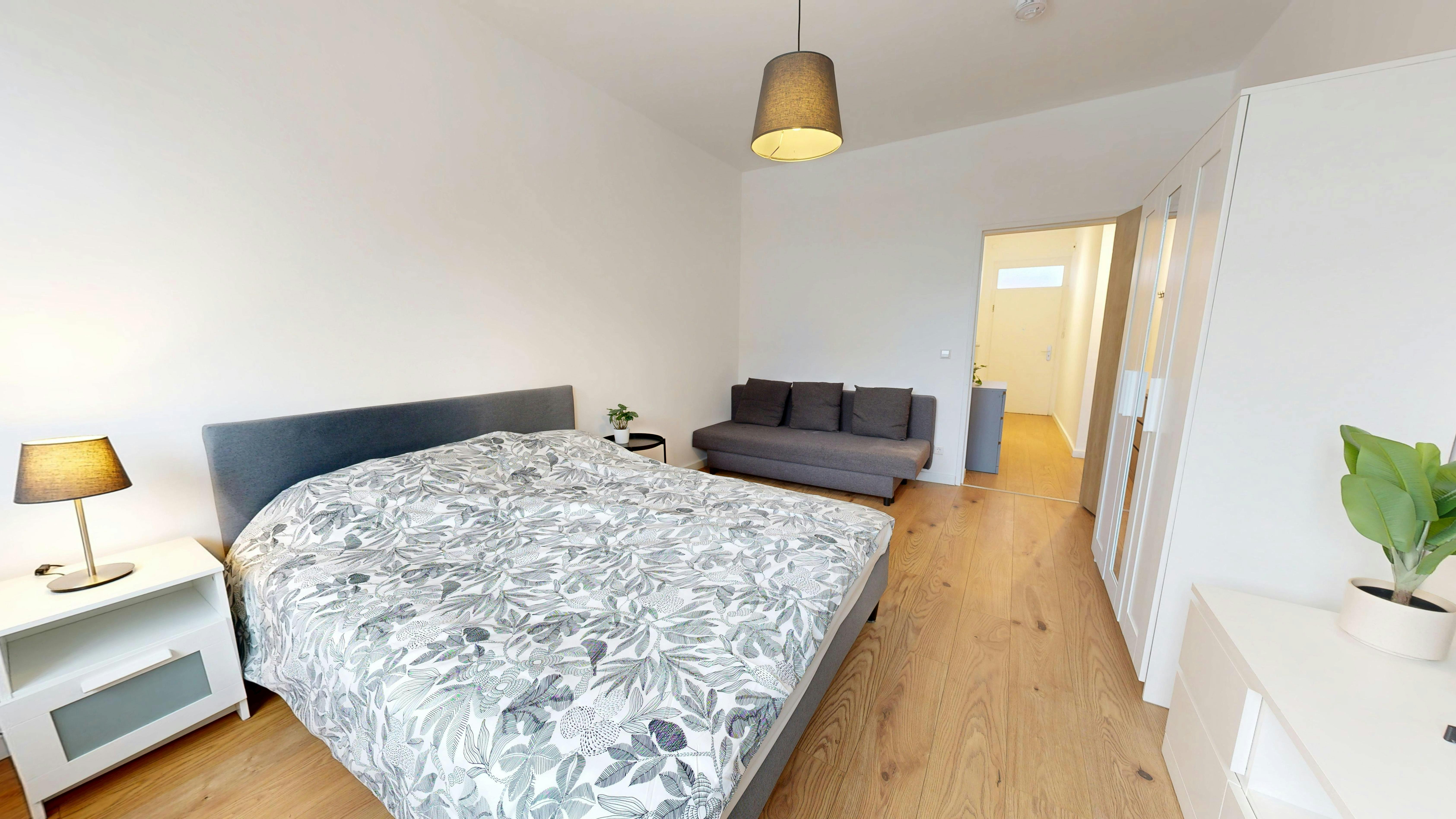 This stunning apartment in a quiet building in Schöneberg is ready to welcome you. This new and beautiful property consists of a nicely furnished 2 bedrooms with a double-size bed, a fully accessorised kitchen and a modern bathroom with a washing machine. Located in the middle of Schöneberg the place is surrounded by many stores, restaurants, cafes, businesses, boutiques, and much more! Due to the connection to the S-Bahn and U-Bahn network as well as the proximity to the city highway, almost any Berlin location can be reached quickly. The apartment includes: - Fully accessorised kitchen - Dishwasher - TV - Washing machine - High-speed WiFi - Electricity,...