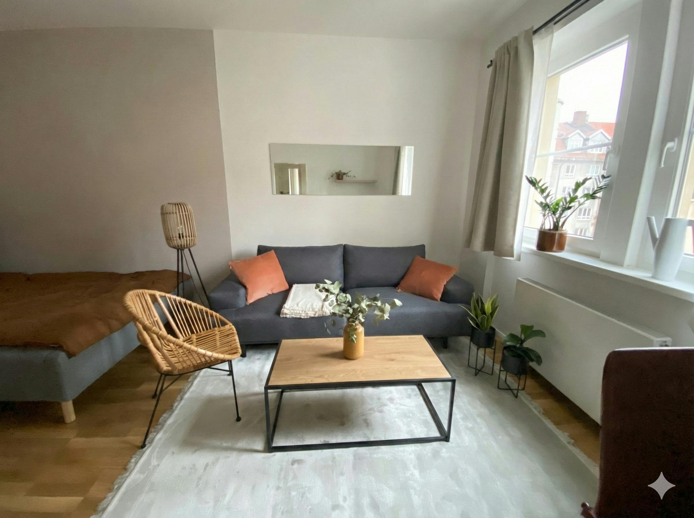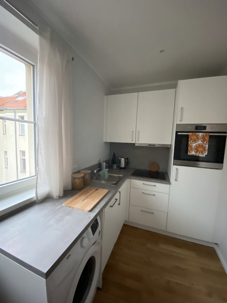 Welcome to your new home away from home! Our newly renovated 35 sqm studio apartment on the top floor offers the perfect setting for stylish and comfortable living. Thanks to a recent refurbishment, the entire flat shines in new splendour, impressing with modern comfort and attention to detail. The Apartment The heart of this fully furnished studio is its smart layout. Unlike many studios, the kitchen here is a highlight—it features a dedicated dining area with a table and two chairs. It’s not just for cooking; it’s a bright, separate space perfect for enjoying your morning coffee, working from home, or having a...