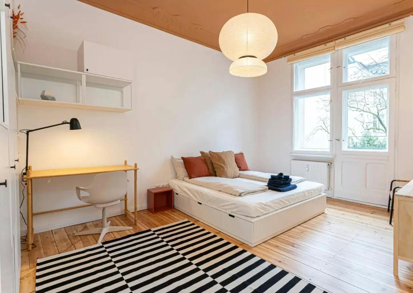 This furnished apartment has been renovated and offers a bright, welcoming atmosphere. The generous ceiling height gives the space an open, airy feel. The bedroom features a large wardrobe and additional storage under the bed, providing plenty of room for your personal belongings. The open kitchen is equipped with an oven, making it ideal for everyday cooking. The apartment is located on the second floor of a well-kept building and is just a short walk from local supermarkets. Public transport connections are excellent, with both the S1 and U9 easily reachable on foot. Please note that HousingAnywhere is an online booking platform,...