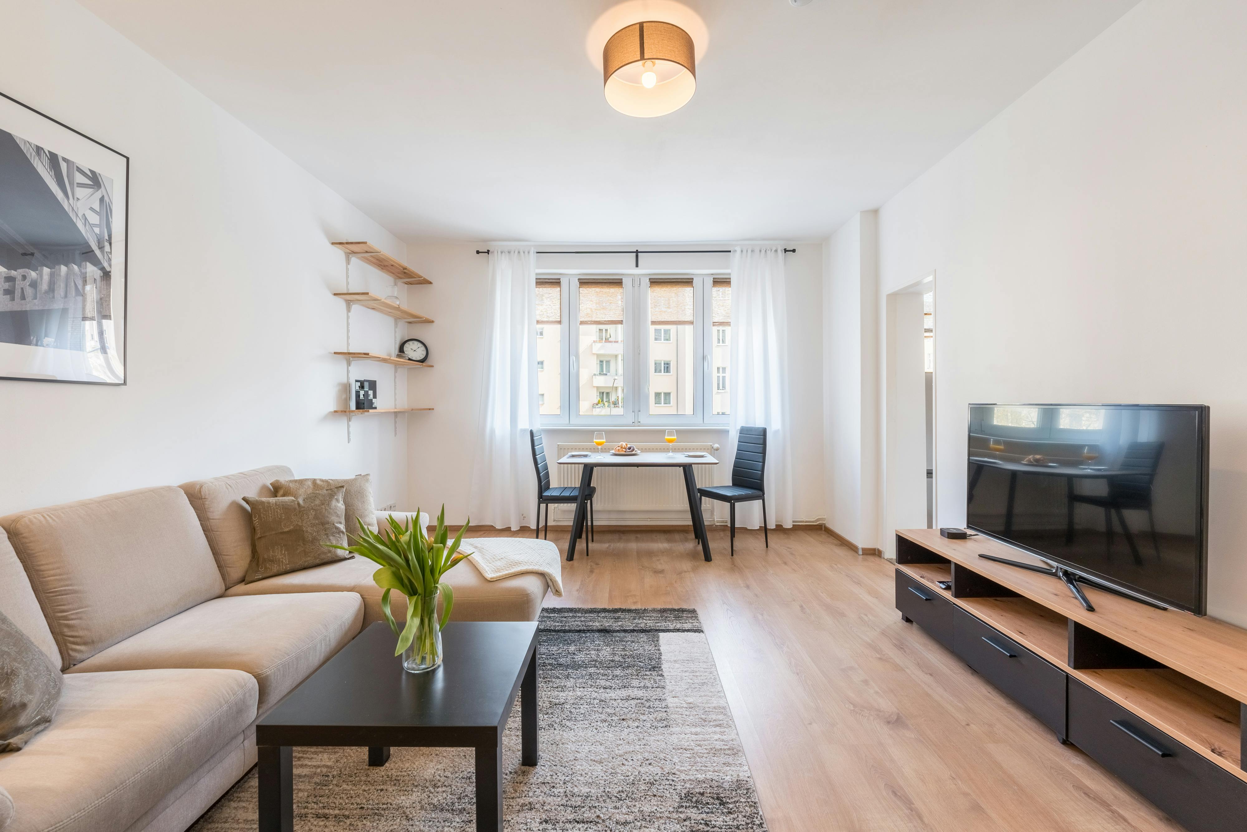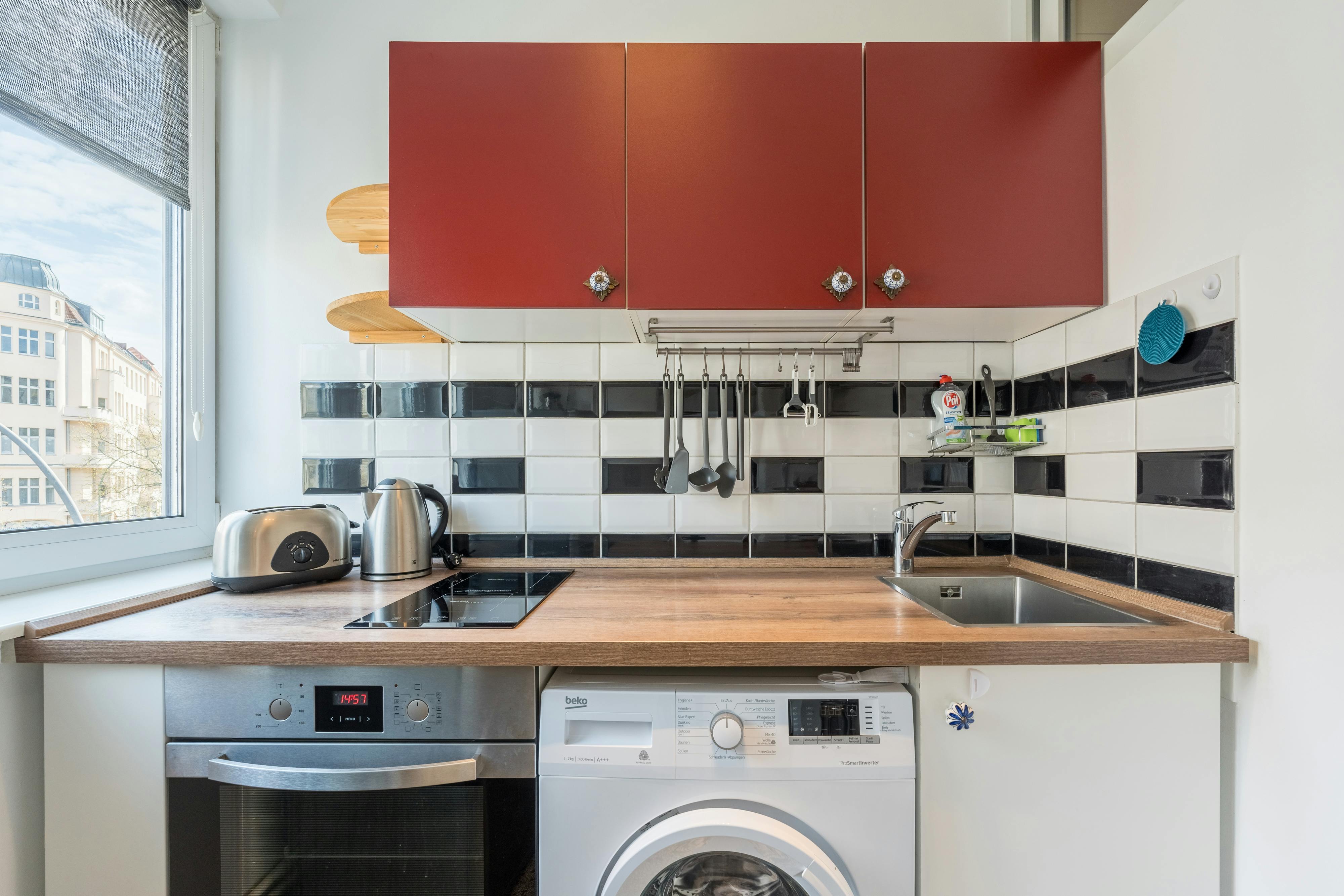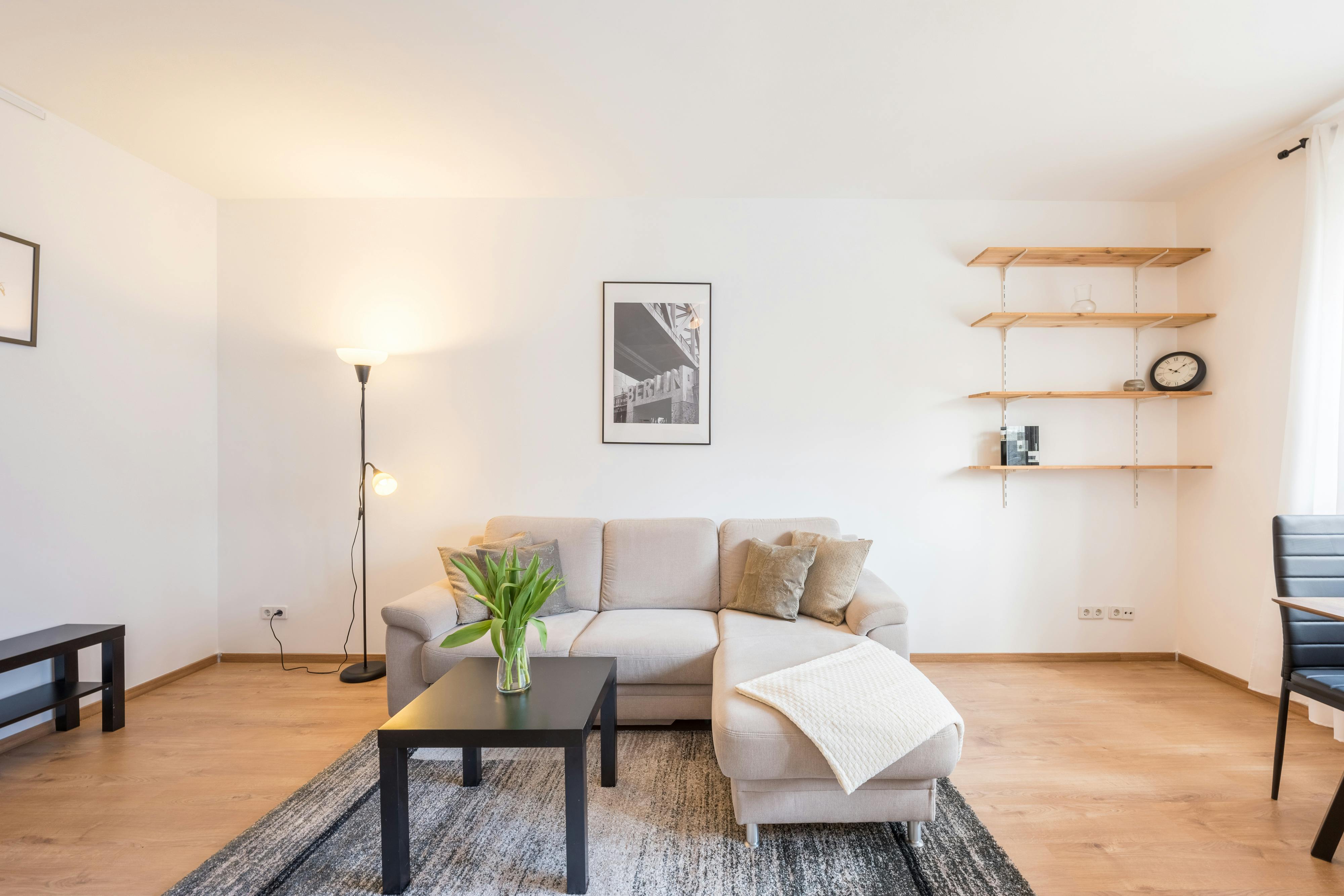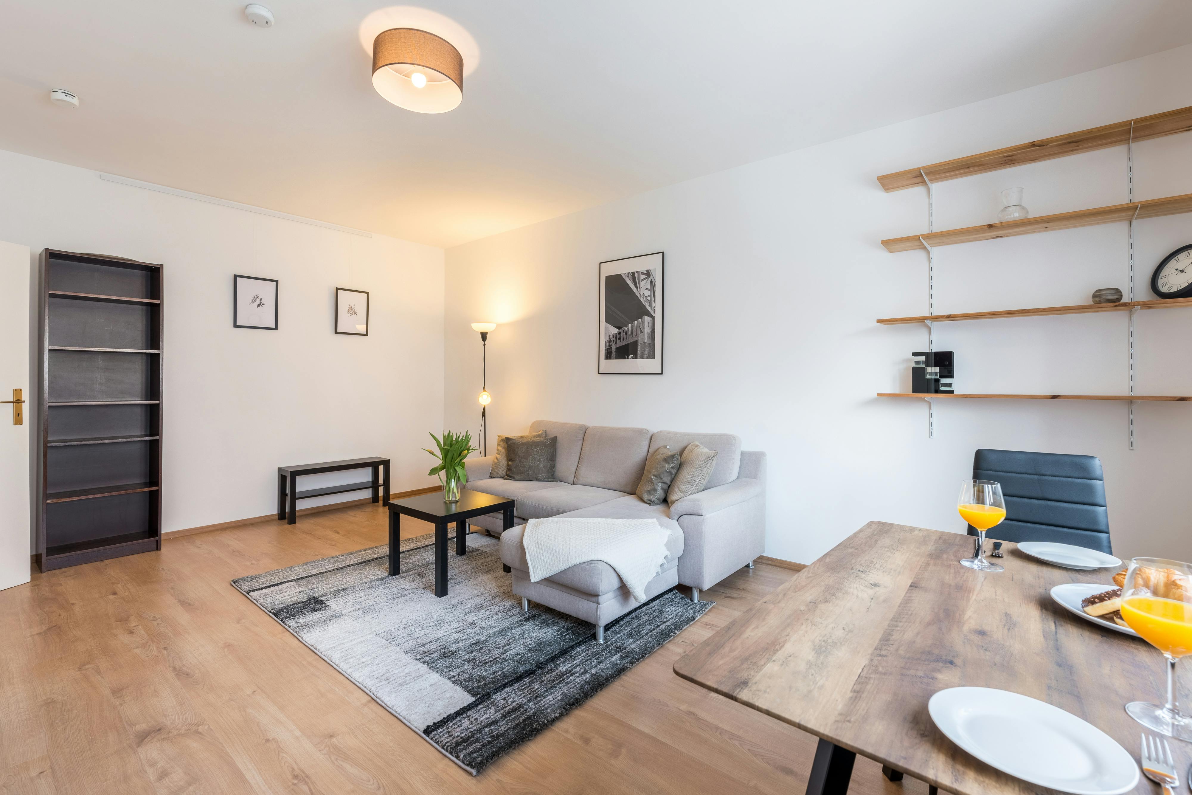 HOUSE The apartment is located on the second floor. There is no elevator in the house. APARTMENT This cute two room apartment offers enough space for up to two tenants. In the living room you will find a comfortable sofa, a large smart tv and a dining table with two chairs. The kitchen has all the essential equipment: an oven, a stove, a toaster, a kettle, a coffee machine, and cookware like pots and pans, plates, mugs, glasses and cutlery. There is a queen sized bed (140×200) in the bedroom. Here you will also find a dresser and some wardrobe rods to hang...