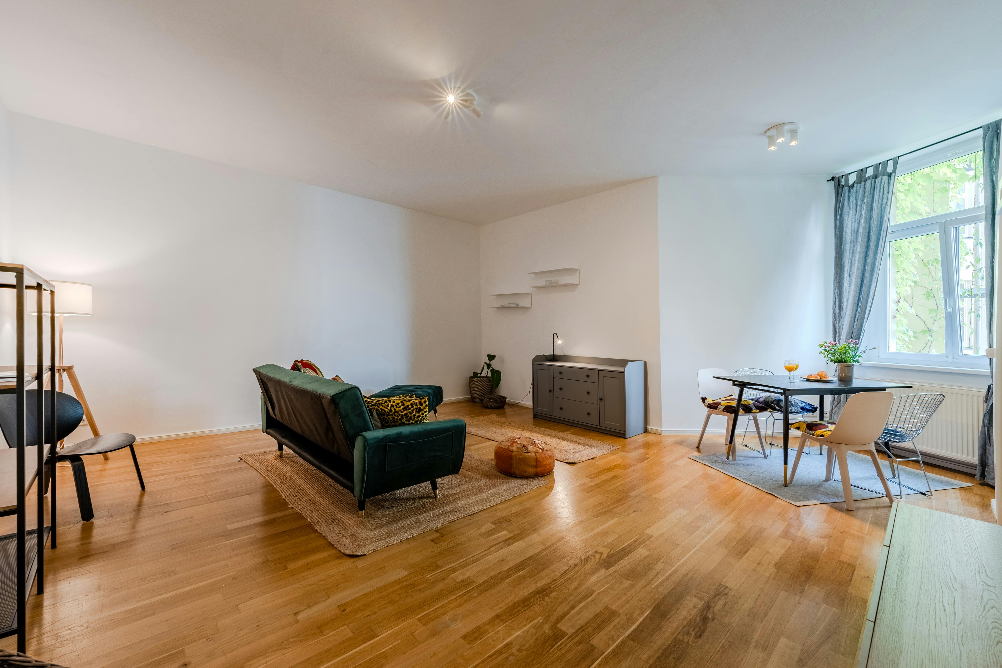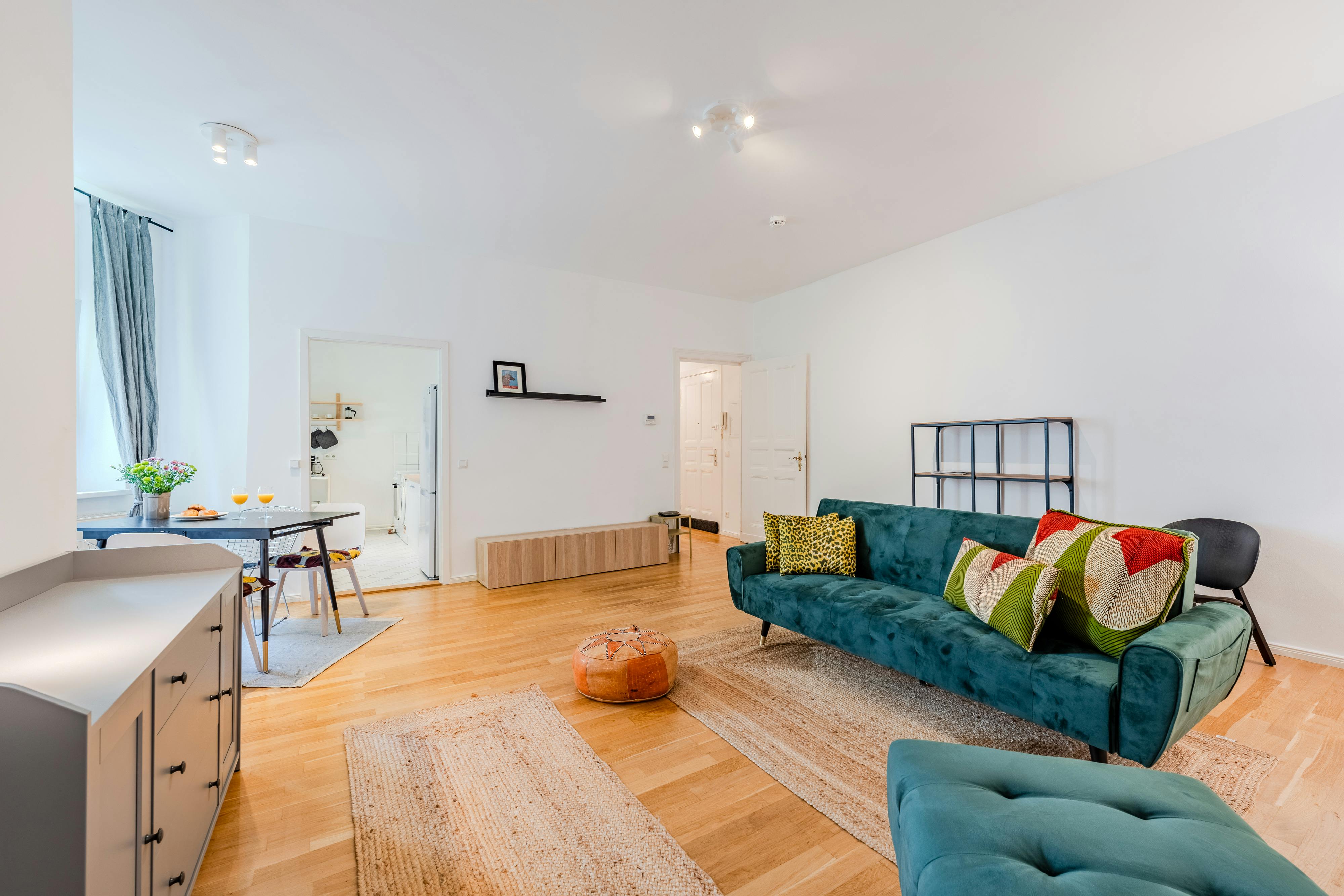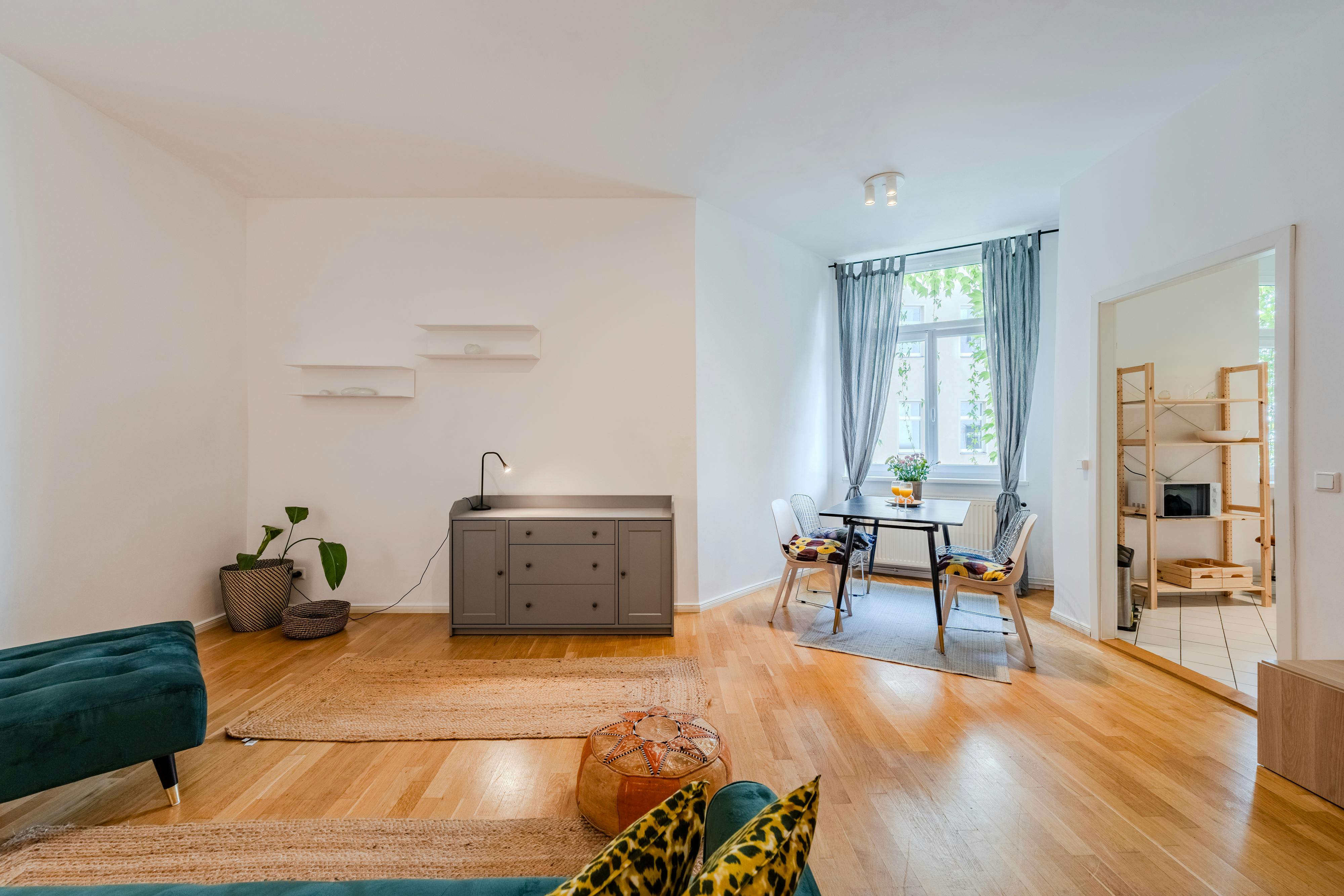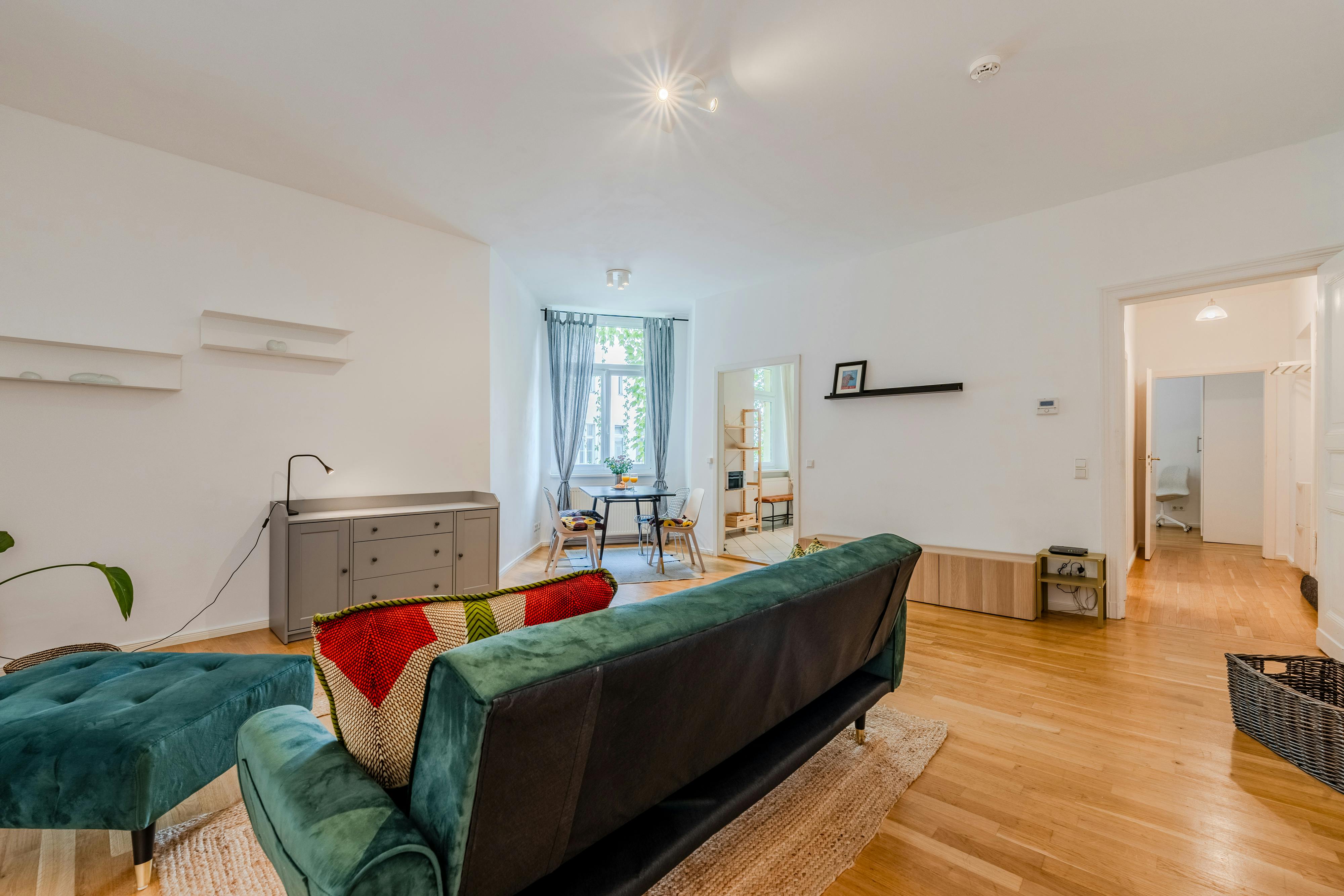 HOUSE This classic Berlin Altbau (old building) was built in 1900. The apartment is located on the 1st floor inside the calm and safe inner courtyard. APARTMENT This cute two room apartment offers enough space for up to two tenants. In the living room you will find a comfortable sofa, a large smart tv (not in the pictures yet) and a dining table with four chairs. The kitchen has all the essential equipment: an oven, a stove, a toaster, a kettle, a microwave, a coffee machine, a refrigerator with freezer and cookware like pots and pans, plates, mugs, glasses and cutlery. The washing...