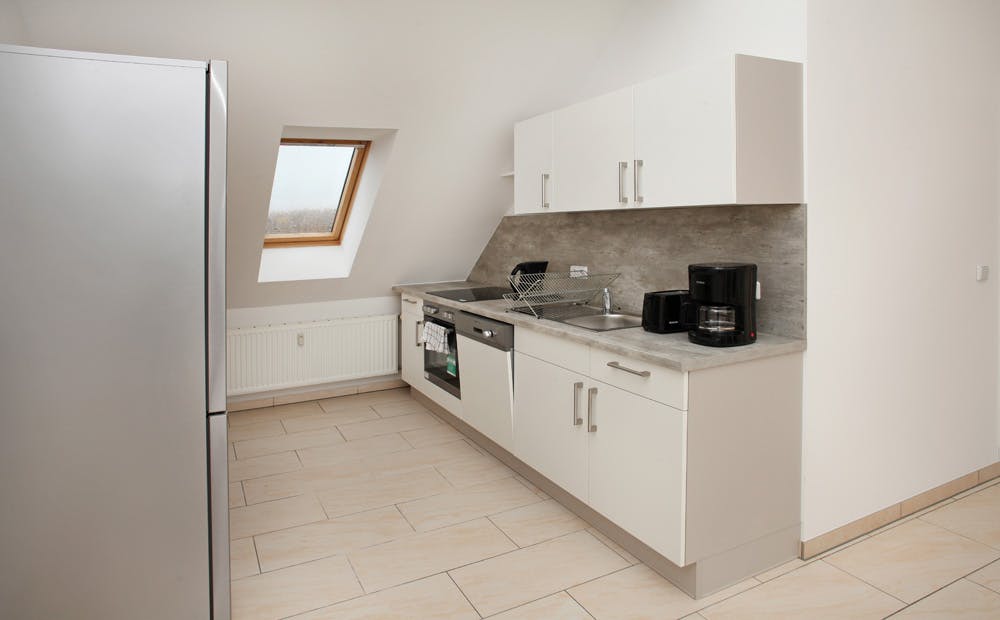ROOM Our flats fulfil all your daily living requirements. Every flat comes readily equipped with a kitchen, including refrigerator, cooking equipment and dishes. Flats also include a washing machine and Wi-Fi Internet. Each room is fully furnished and offers a comfortable bed with fresh linen and a workspace. The area provides you with several shopping opportunities and excellent connections to public transport.