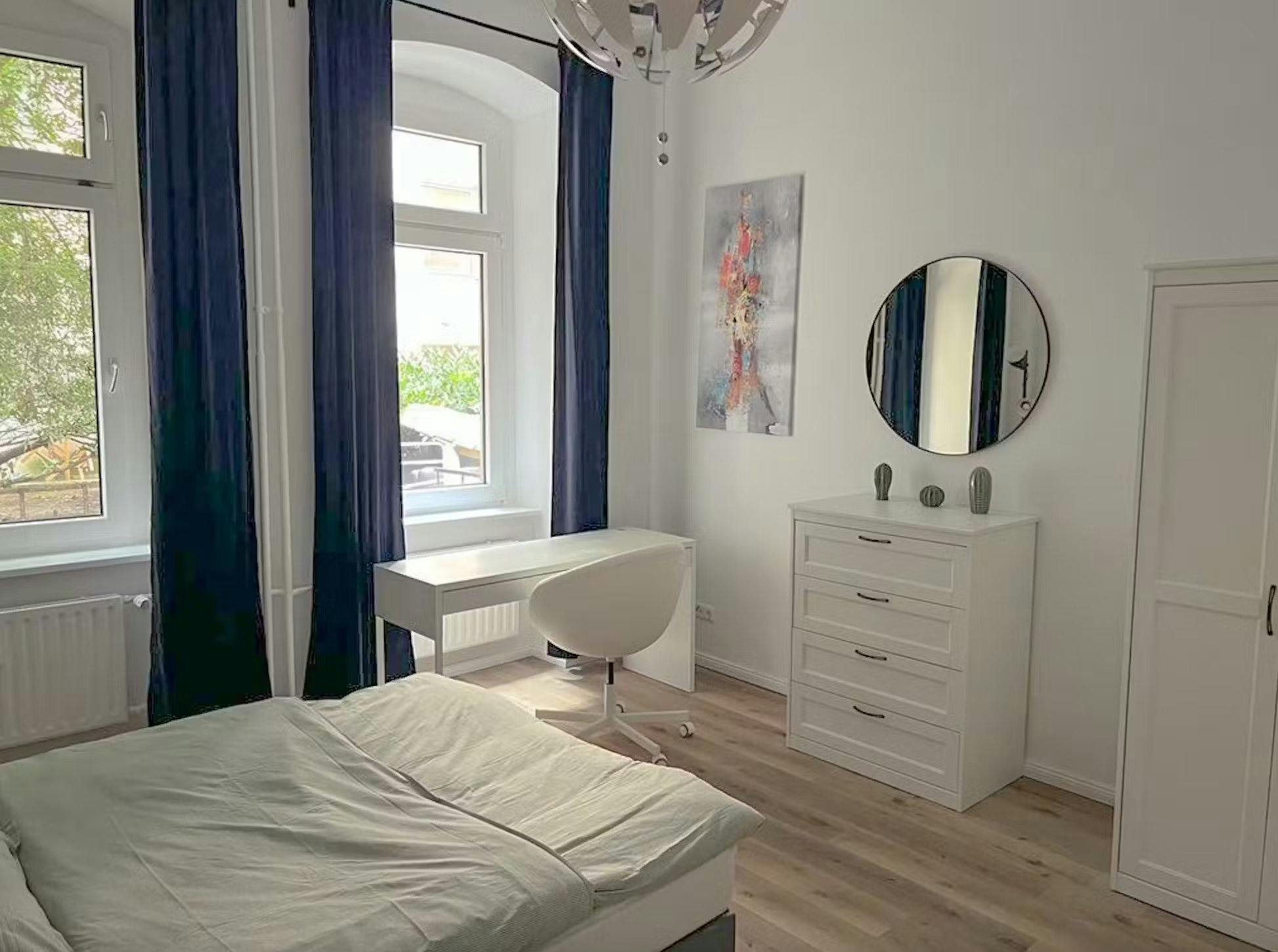 3 bedroom apartment in Berlin Kreuzberg THE APARTMENT: The apartment is particularly bright with an amazing balcony. The rooms are equipped with a king-sized box-spring bed with fine bedding as well as two bedside tables, a chest of drawers, a large mirror, a working desk with a corresponding chair, a floor lamp and a large closet. In addition to your own room, you and your guests share a spacious kitchen with a seating corner. Moreover, the kitchen is fully fitted with cooking equipment and utensils. Furthermore, the bathroom has a bathtub shower and a washing machine. LOCATION: The apartment is located in a very...