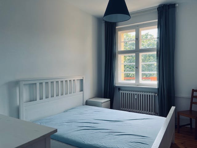 Following the spacious entrance hall, we find the living room with a sofa, a TV cabinet opposite and a large table for entertaining guests. The kitchen has a large refrigerator and a dining table. The bedroom has a double bed. The bathroom has a window and a shower. There is also a convenient storage room and a small balcony with a table and chairs. Rental available from 01.02.2026 to 31.08.2026. Cleaning costs at the end of the contract are €100.