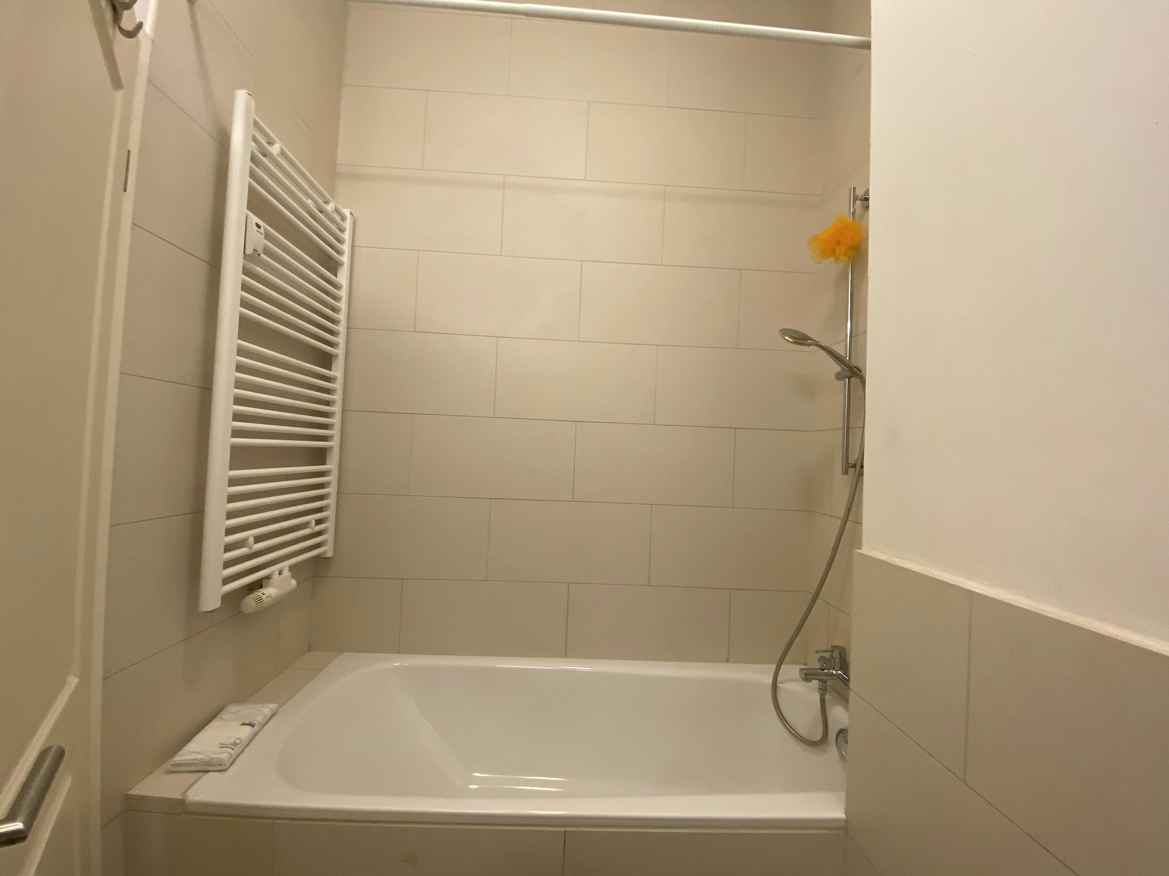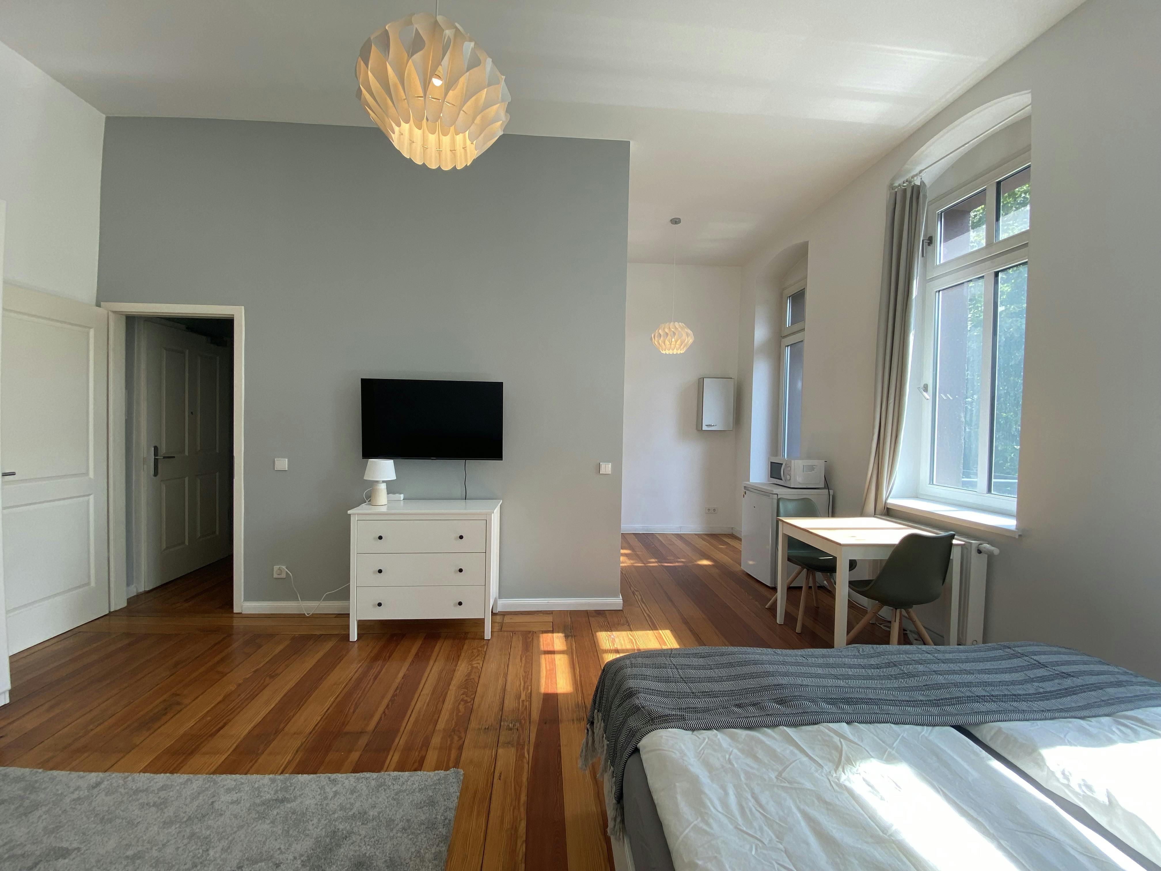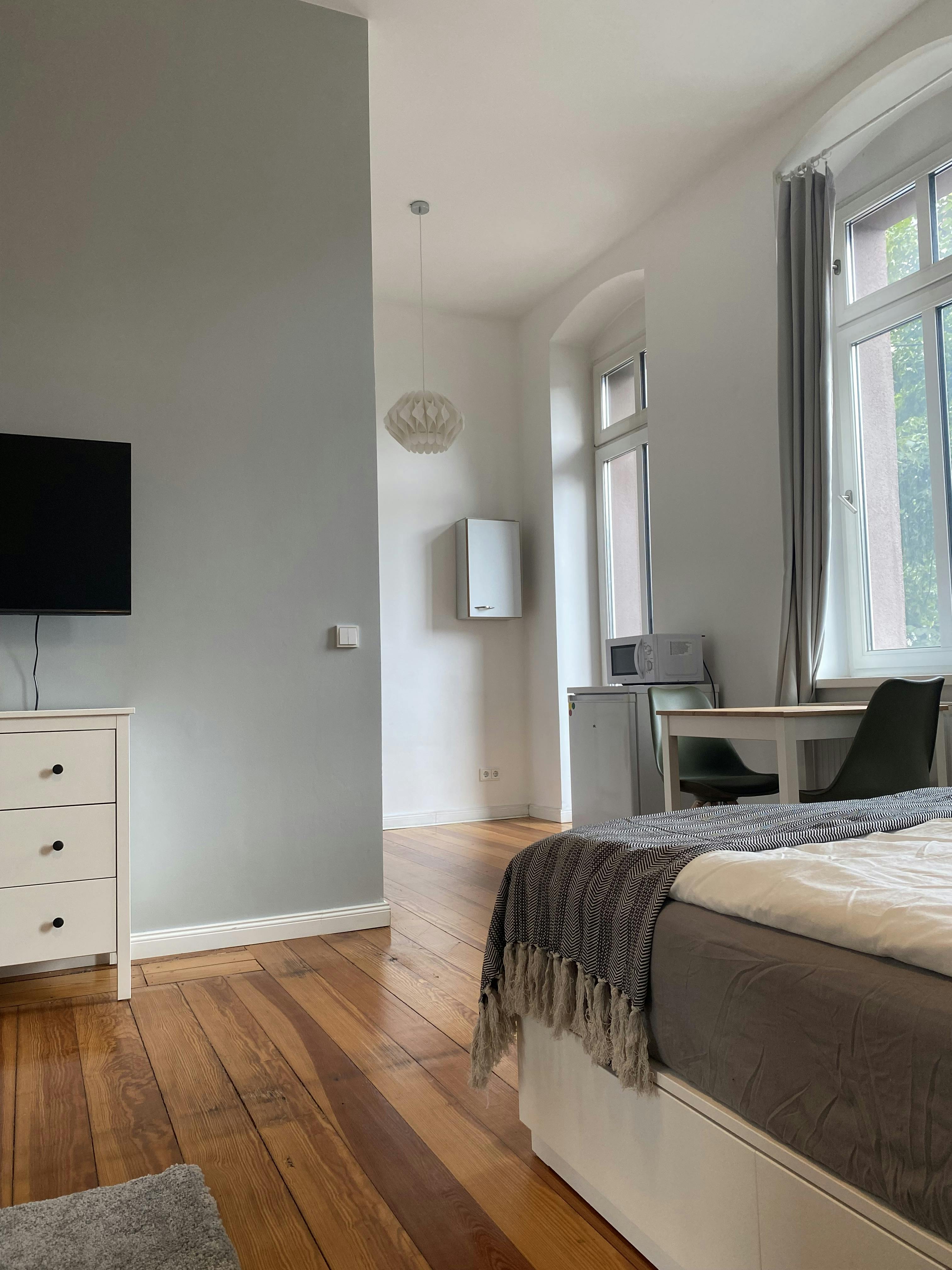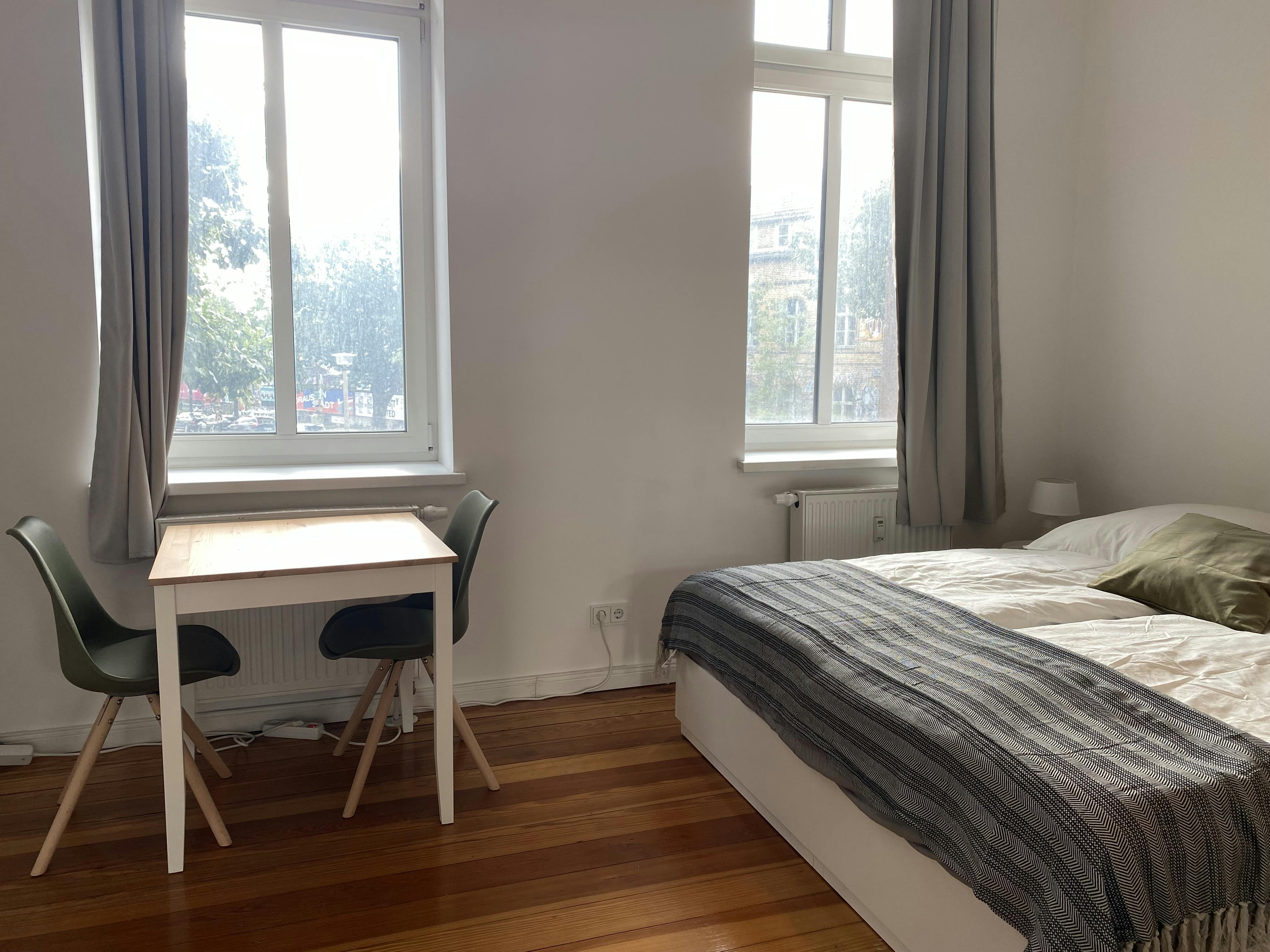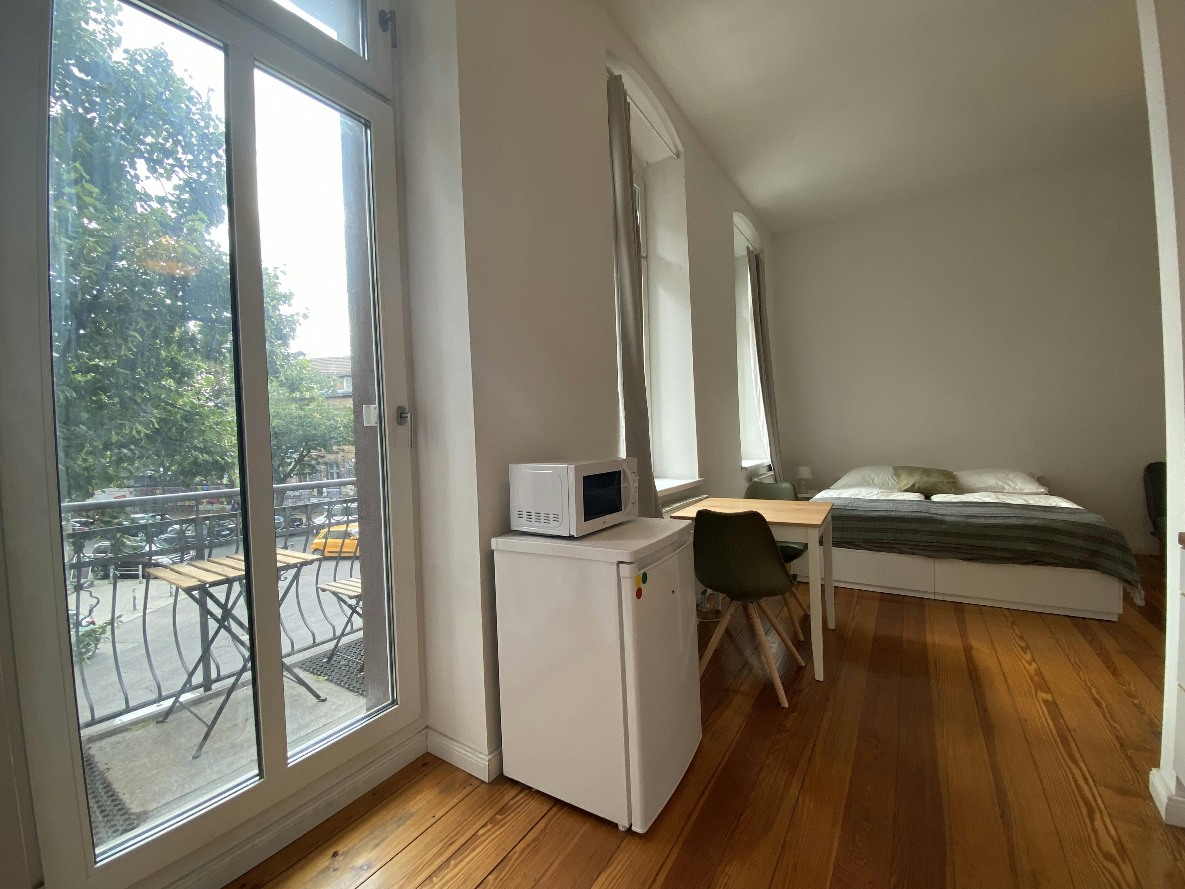 The apartment is located in the heart of Friedrichshain, one of Berlin’s most vibrant neighborhoods, offering excellent public transport connections as well as a wide range of shops, cafés, and restaurants within walking distance. The kitchen is fully equipped with all essential utensils, including an oven and refrigerator. A TV is also provided, ensuring a comfortable living experience from day one. Washing maschine in the apartment This apartment is ideal for students, professionals, or commuters looking for a well-located and conveniently equipped home in Berlin.
