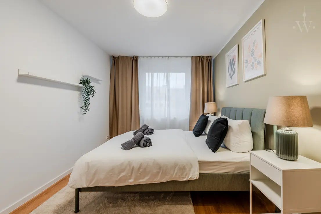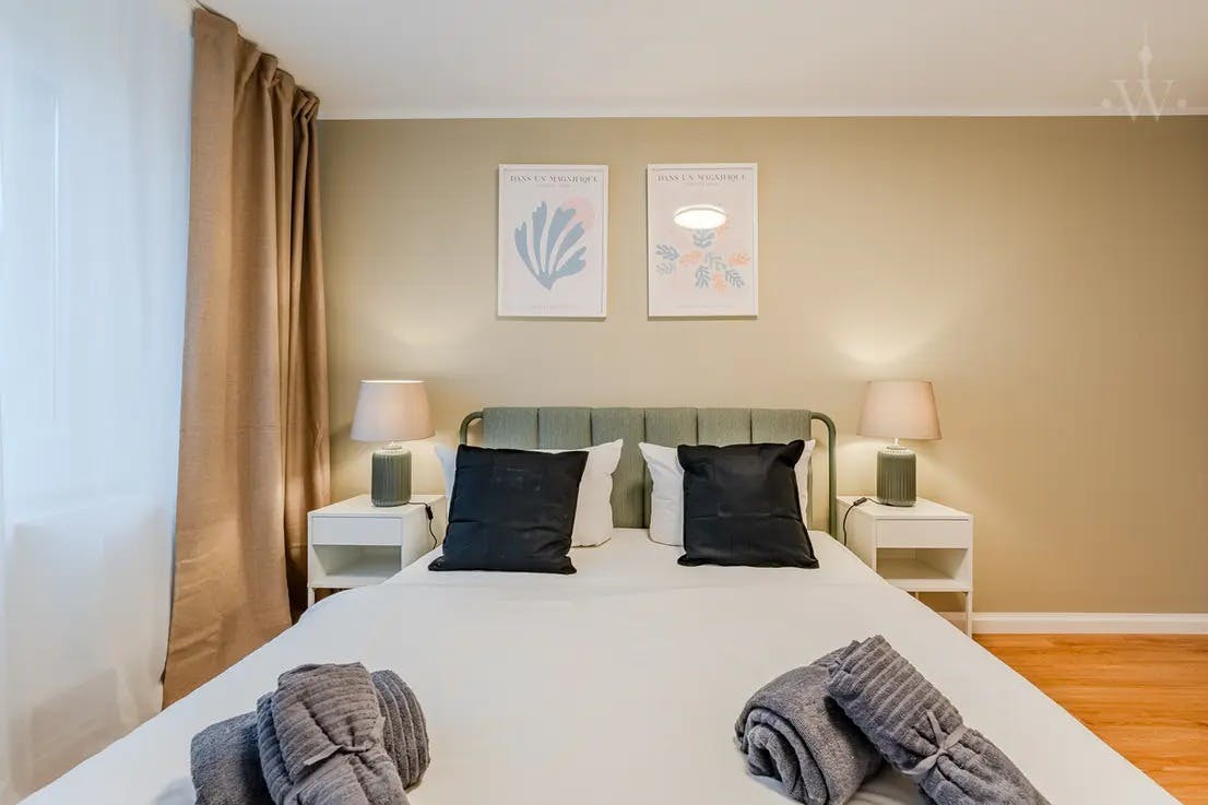 ??? Fully furnished 2-room apartment in Wilmersdorf This cozy 2-room apartment is located on the third floor of a beautiful building and has a spacious living room with sofa bed, a lovely kitchen, a cozy bedroom and a modern bathroom. equipement The following highlights await you: - Bedroom with double bed - closet - fully equipped kitchen (electrical appliances, cutlery, crockery etc. included) - dining area - bed linen and towels - bathroom with bathtub - washing machine - Living room comfort with sofa and Smart TV - Terrace with seating area - Parking space optional and subject to availability - Electricity included - Internet with 100mBit/s, optionally expandable to...