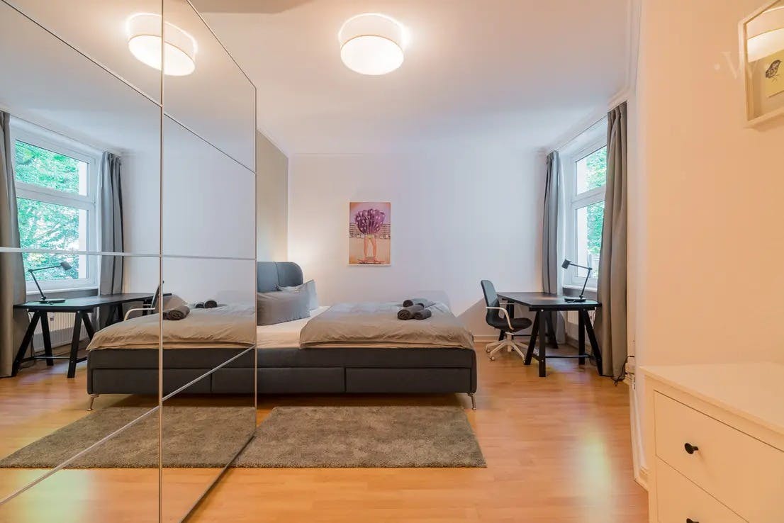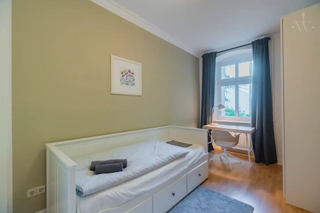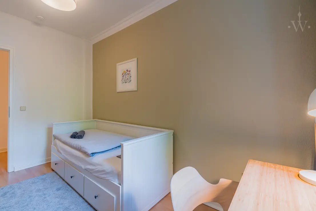 ??? Family-friendly 3-room apartment on a quiet side street in lively Wedding The lovingly furnished apartment is located in the garden house of a beautiful old building, which makes it very quiet at all times. You can expect a cozy bedroom, a children's / guest room, a large, modern, open to the hallway, a high-quality bathroom with shower tub and a spacious living room, which offers plenty of space for dining, relaxing and working. equipement The following highlights await you: - 2 bedrooms with double beds - closets - fully equipped open kitchen (electrical appliances, cutlery, crockery etc. included) - dining area for up to 4...