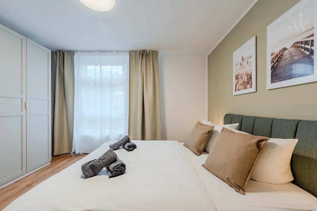 ??? Modern 2-room apartment in Steglitz – Perfect for singles or couples This lovingly furnished apartment is located in a quiet side street in Berlin-Steglitz. A fully furnished 2-room apartment with balcony awaits you. The apartment offers enough space to enjoy and relax at the end of the day. The has a living room with a sofa bed, a cozy bedroom. In addition, there is a high-quality kitchen and a modern bathroom. equipement The following highlights await you: - 1 bedroom - Closets - Desk - Fully equipped open kitchen (electrical appliances, cutlery, crockery etc. included) - Dining area for up to 4 people - Bed linen and...