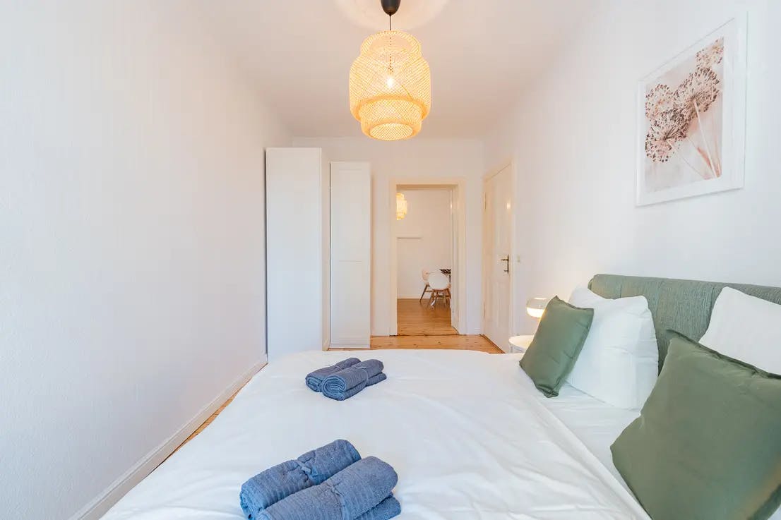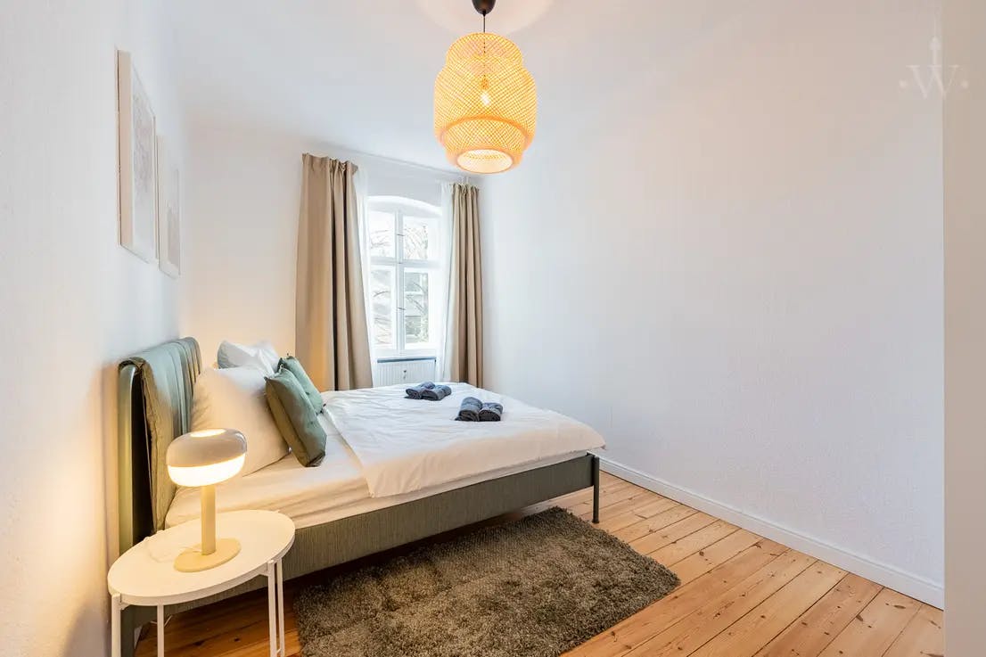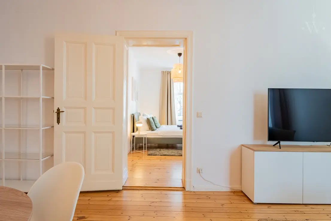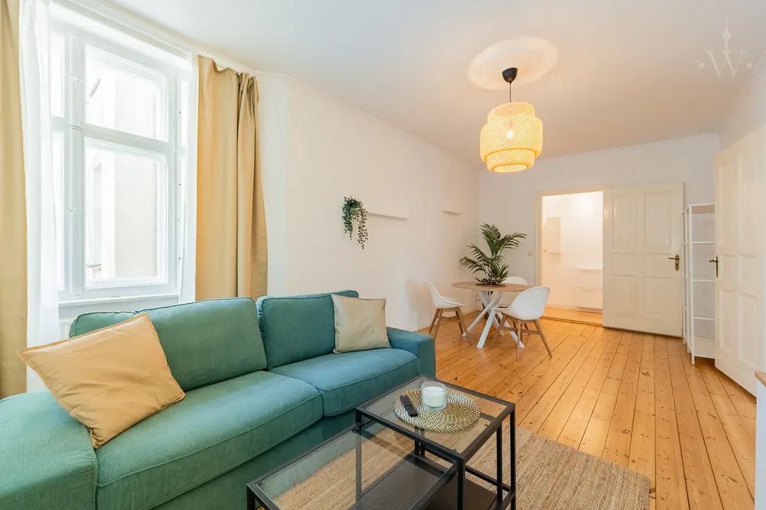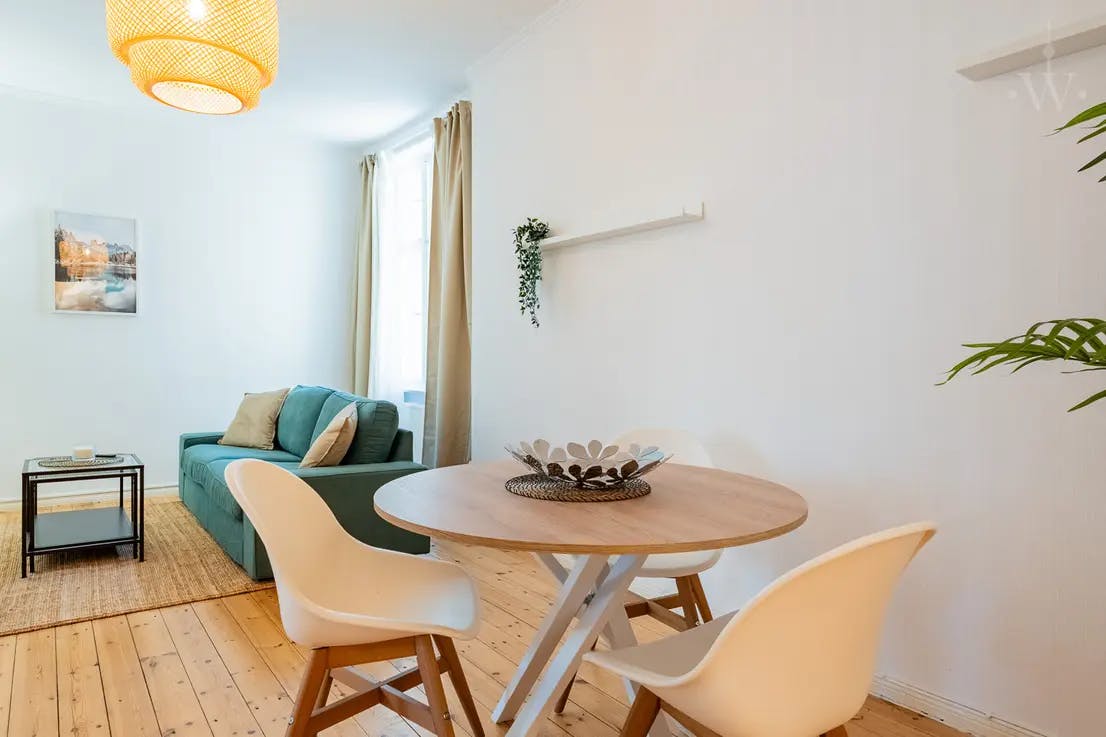 ??? Beautiful furnished 2-room apartment Modern furnished beautiful old building apartment on the 2nd floor. In addition to a spacious living and sleeping area, a great bathroom with shower and a large kitchen awaits you. equipement The following highlights await you: - 1 bedroom - Closets - Desk - Fully equipped open kitchen (electrical appliances, cutlery, crockery etc. included) - Dining area - Bed linen and towels - Bathroom with bathtub - Washing machine - Living room comfort with sofa and Smart TV - Electricity included - Internet with 100mBit/s, optionally expandable to 250m - When renting with pets, there is a fee per pet Position Wedding is an...