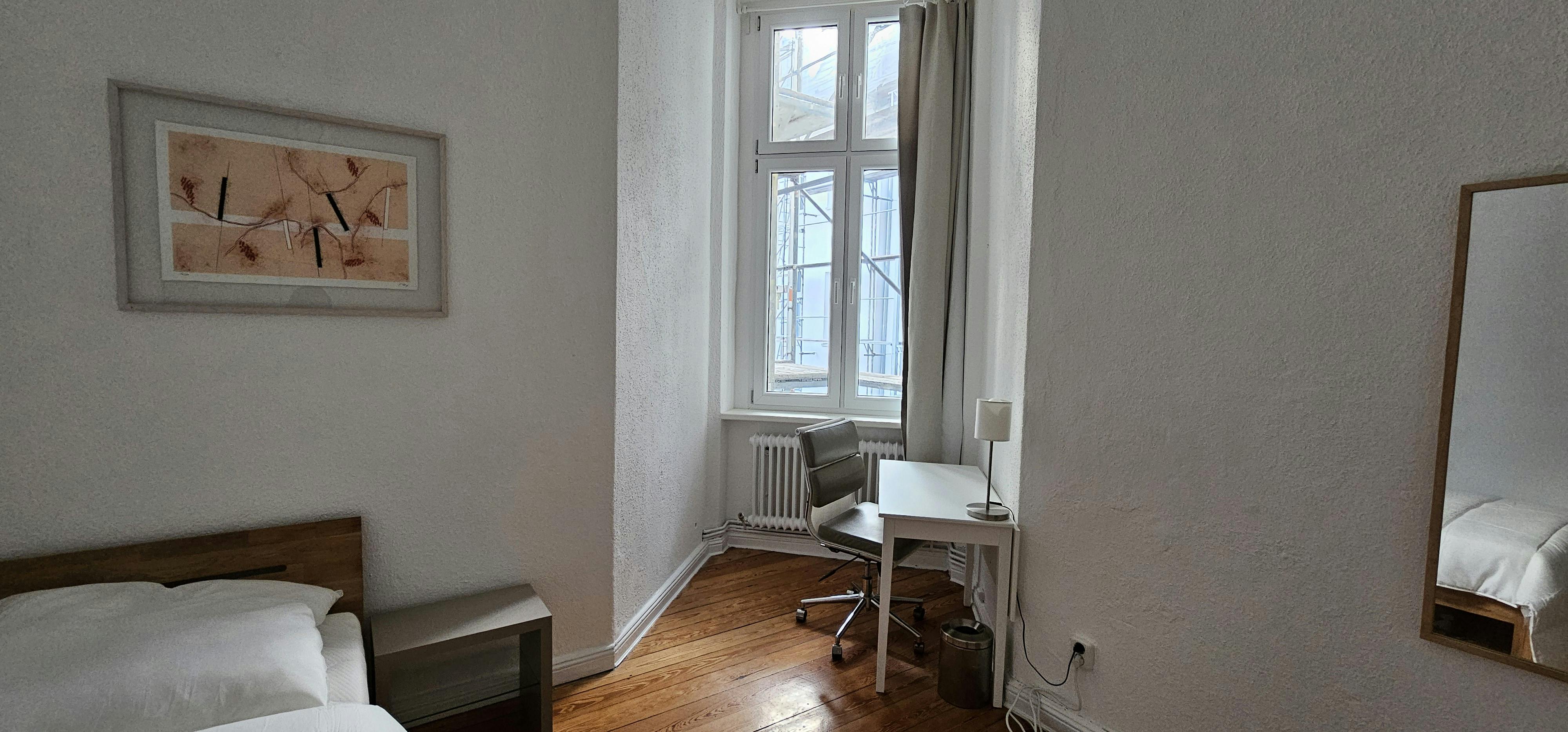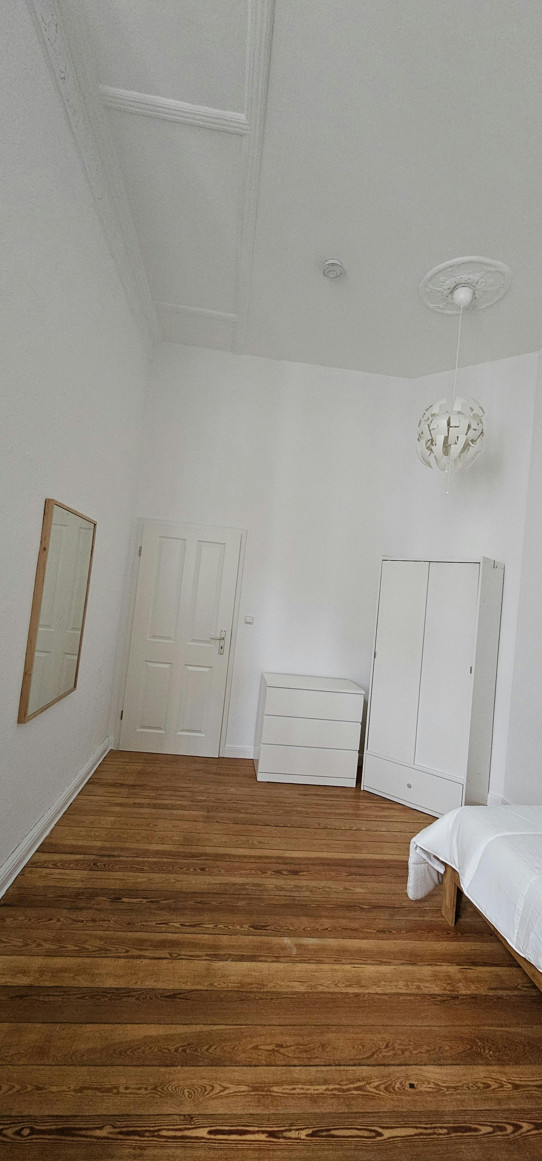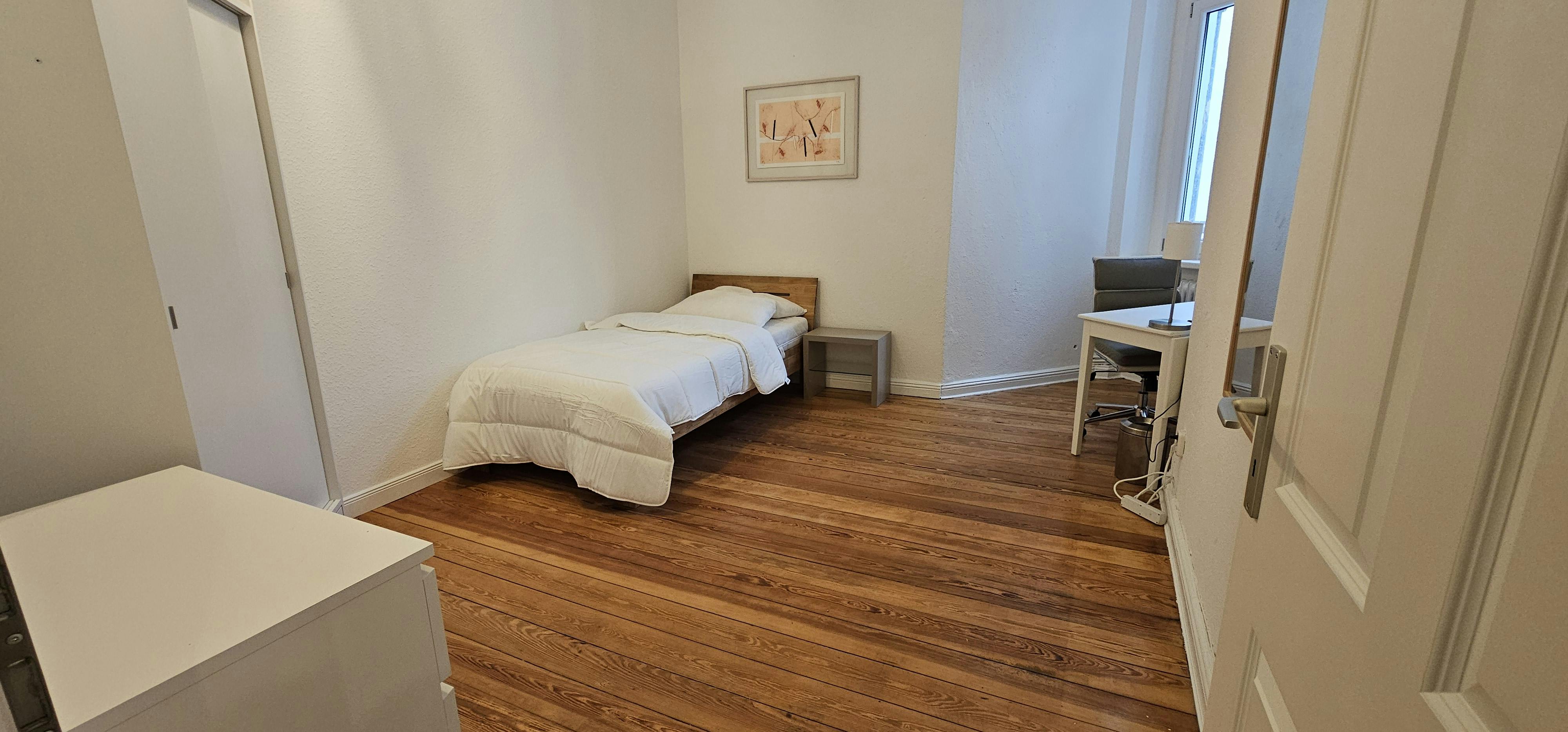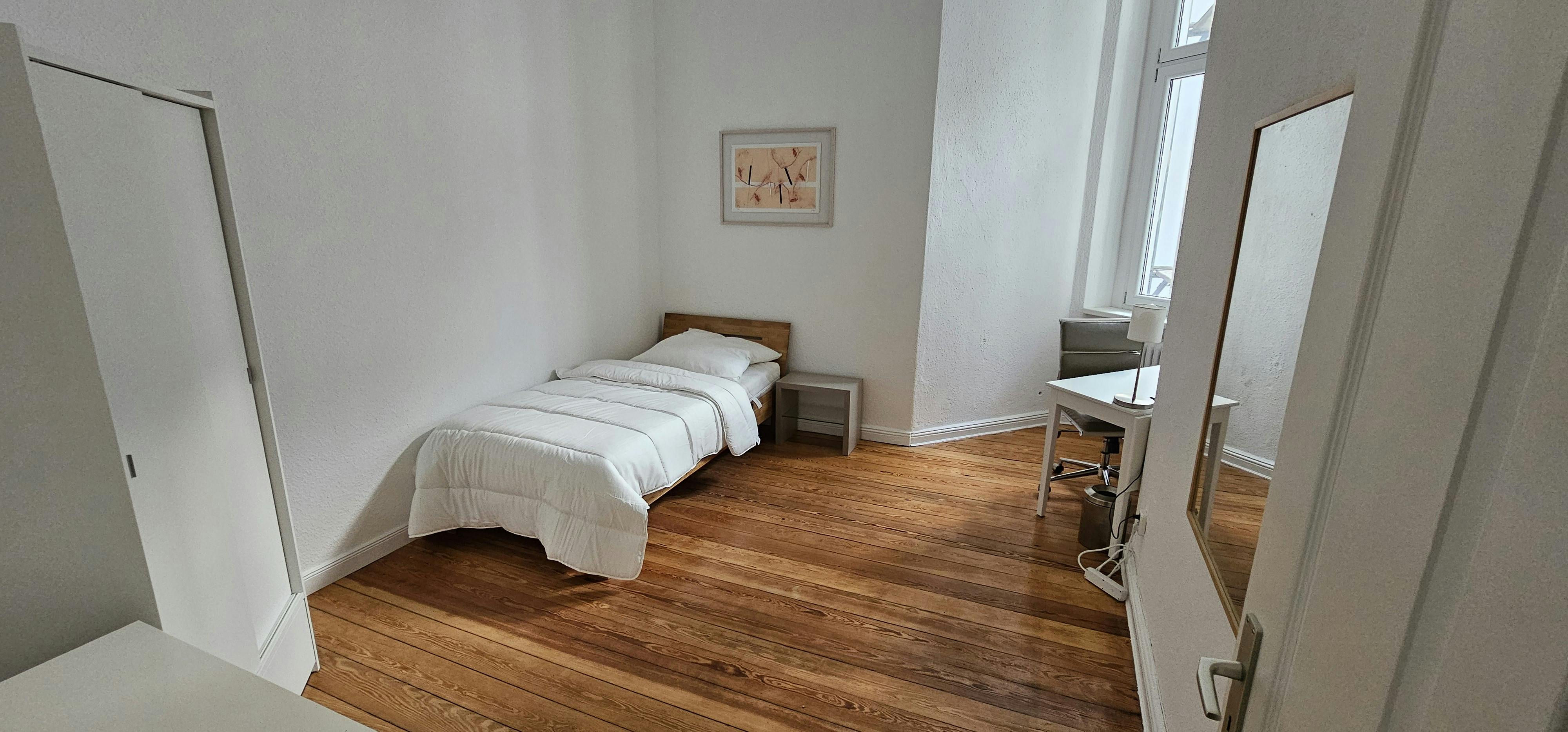 This wonderful 4-bedroom shared apartment is located in the heart of Berlin- the renowned district of Charlorttenburg. It is part of a beautiful Altbau building- with high ceilings. The area impresses with charming cafes and restaurants, trendy boutiques, shops, hotels, in the immediate vicinity, as well as the Famous Lietzenseepark- which offers a wonderful lake view and a stunning park for calmness and relaxation. Amazing public transportation/train stations in a walking distance to the building. It is ideal for interns and young professionals as it is in the center of Berlin. The private bedroom is a bright 15m2 room, equipped with a...