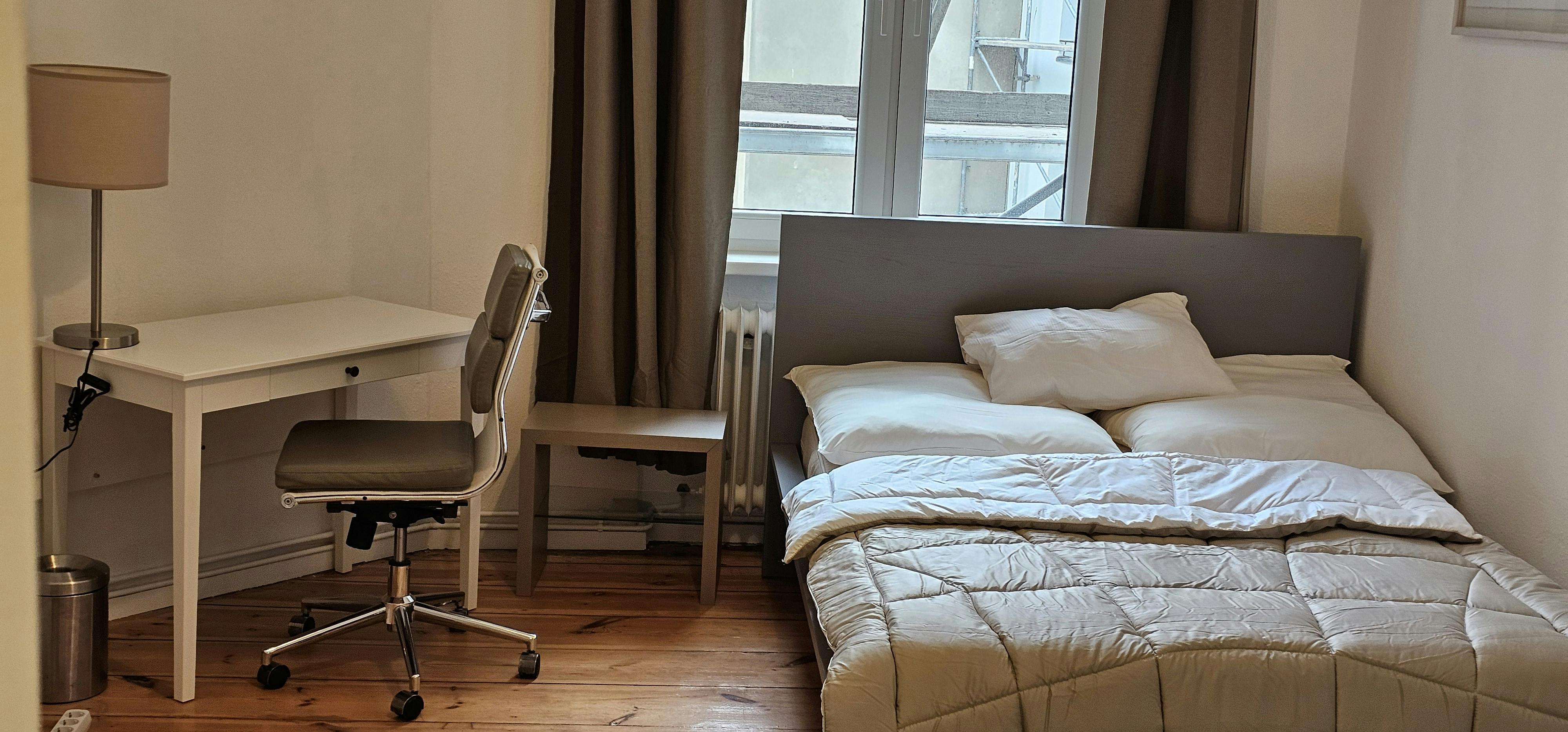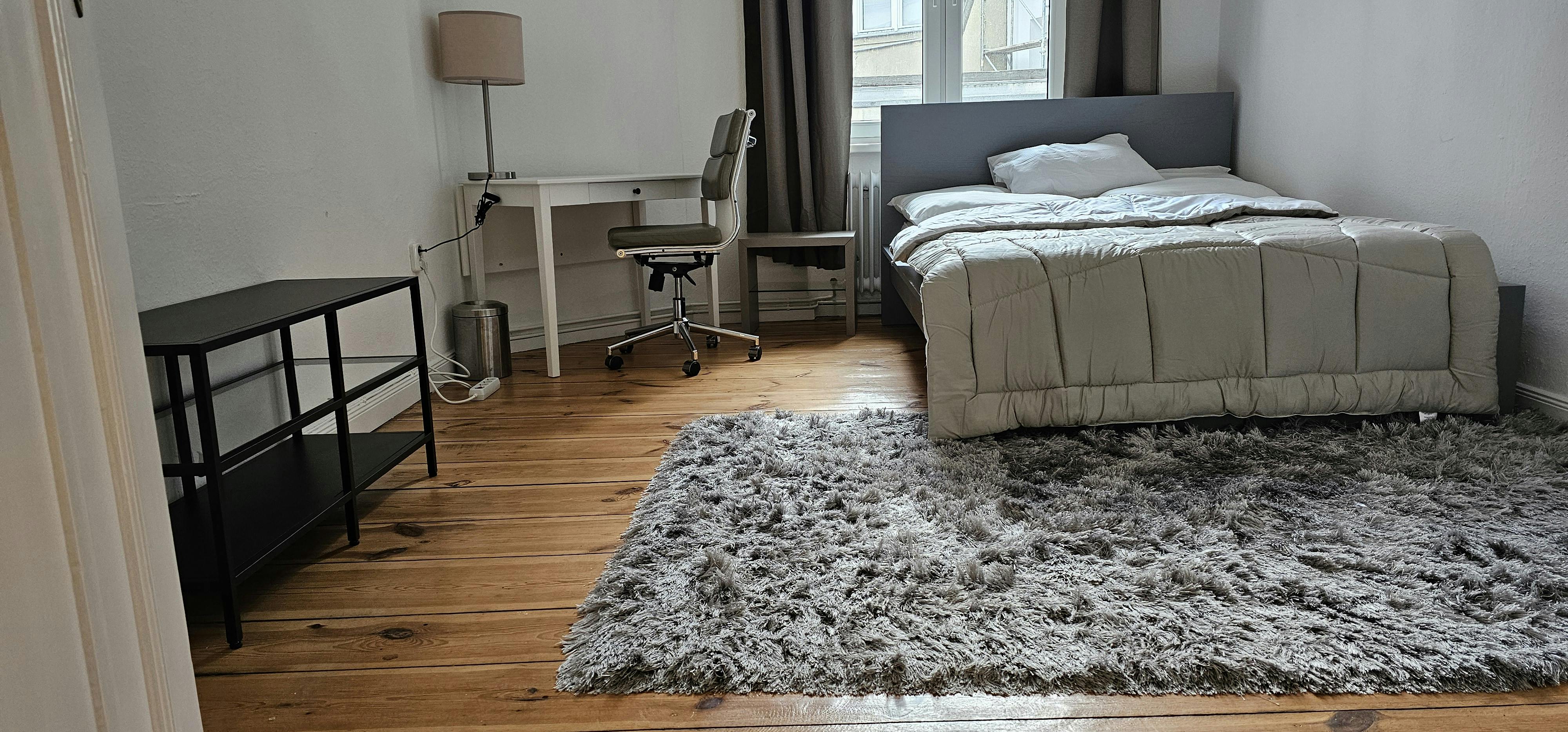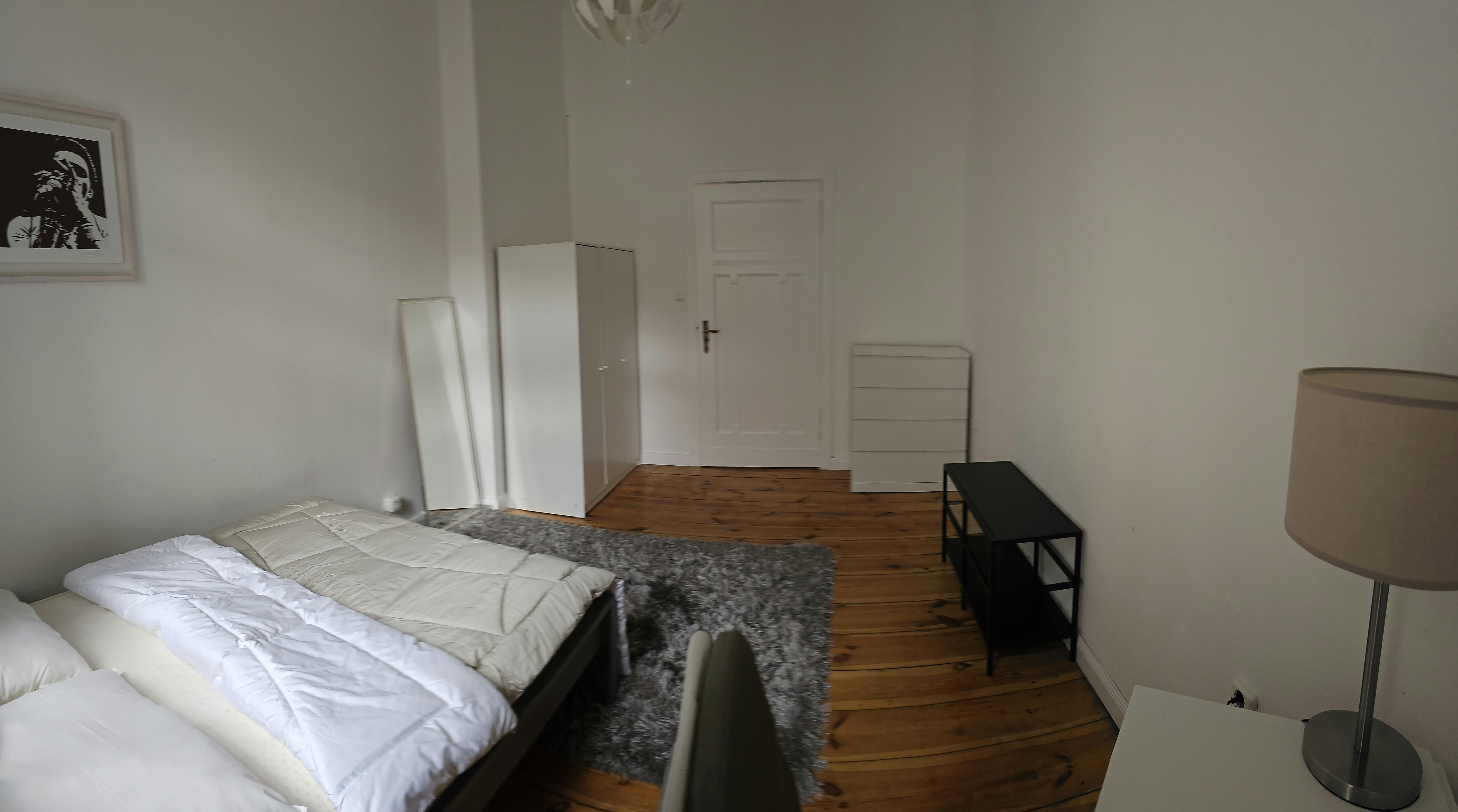 This wonderful 4-bedroom shared apartment is located in the heart of Berlin- the renowned district of Charlorttenburg. It is part of a beautiful old building with high ceilings. The area impresses with charming cafes and restaurants, trendy boutiques, shops, hotels, in the immediate vicinity, as well as the Famous Lietzenseepark- which offers a wonderful lake view and a stunning park for calmness and relaxation. Amazing public transportation/train stations in a walking distance to the building. It is ideal for interns and young professionals as it is in the center of Berlin. The private bedroom is a bright 16m2 room, equipped with a...