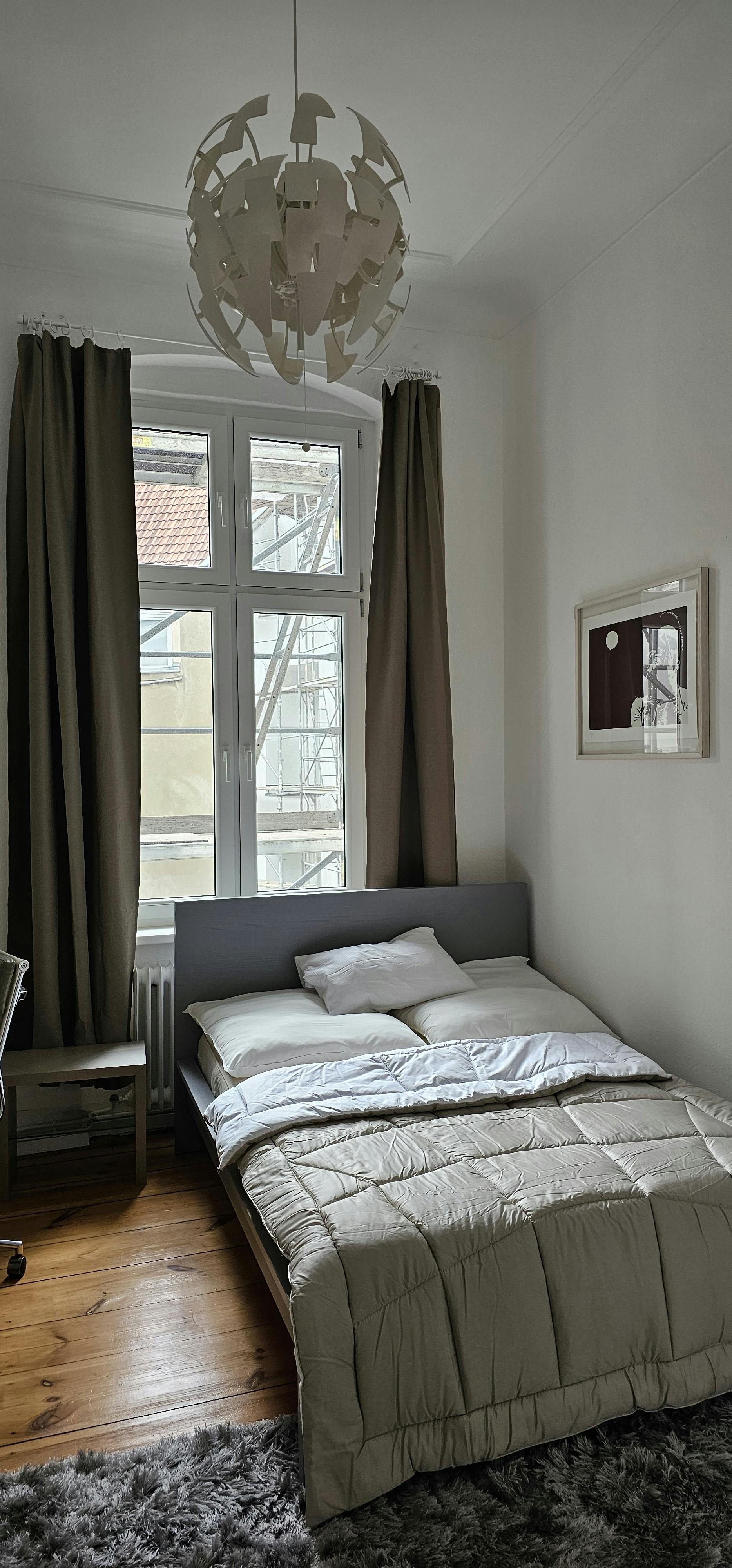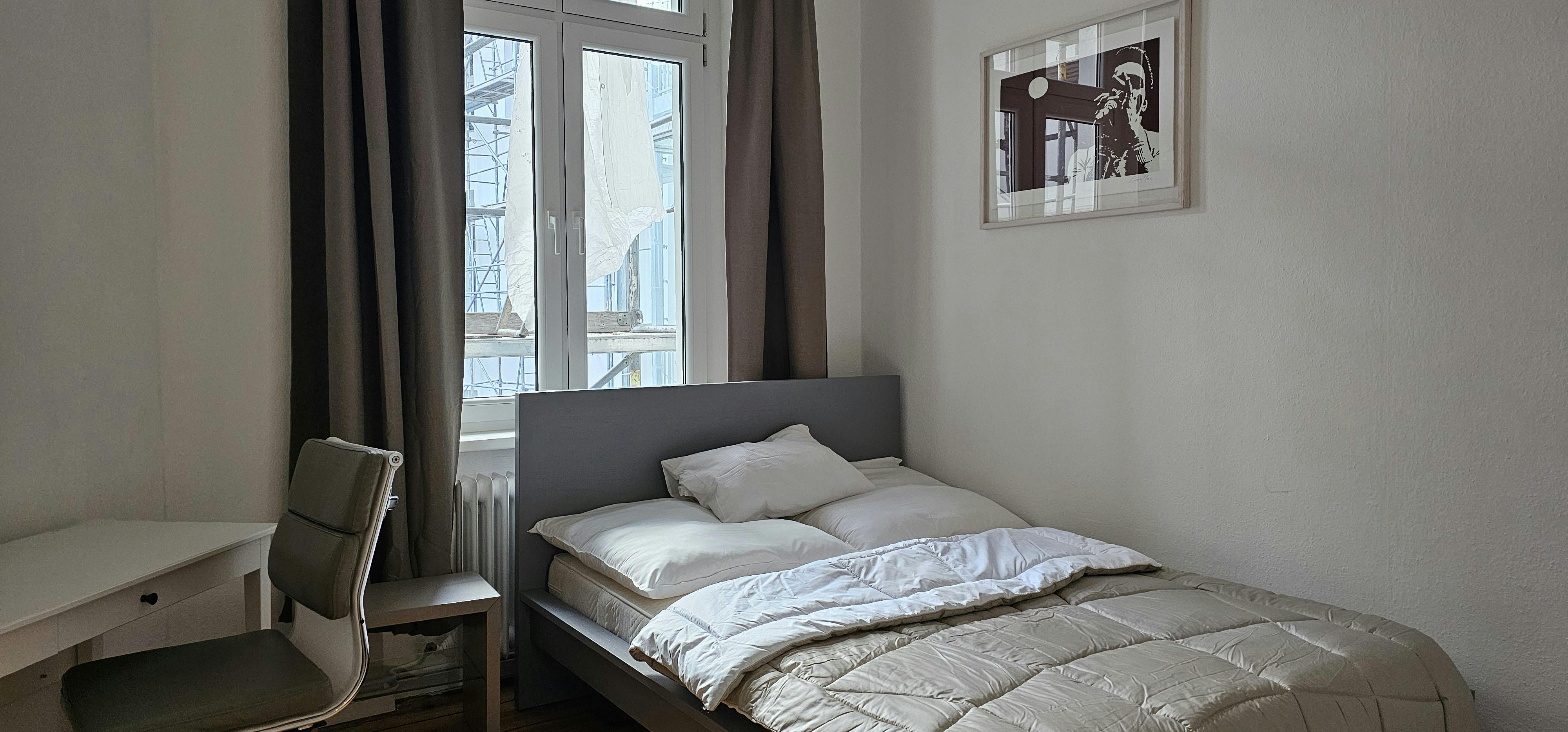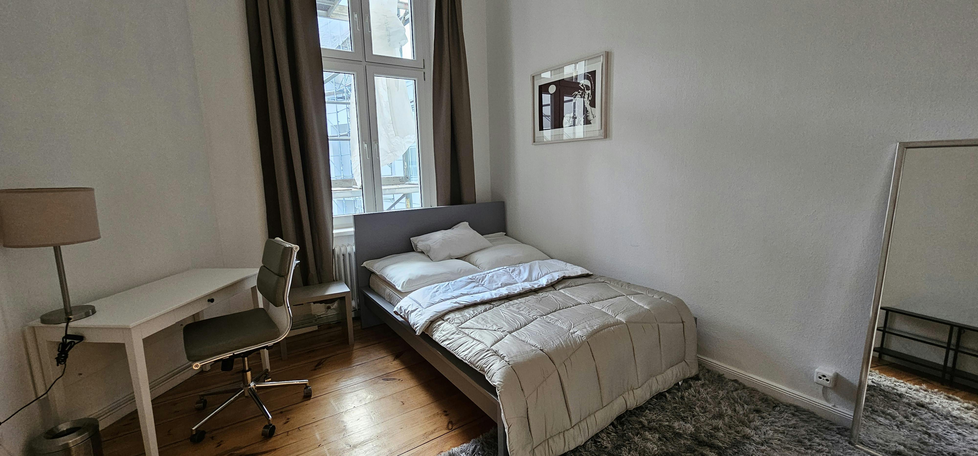 This wonderful 4-bedroom shared apartment is located in the heart of Berlin- the renowned district of Charlorttenburg. It is part of a beautiful old building with high ceilings. The area impresses with charming cafes and restaurants, trendy boutiques, shops, hotels, in the immediate vicinity, as well as the Famous Lietzenseepark- which offers a wonderful lake view and a stunning park for calmness and relaxation. Amazing public transportation/train stations in a walking distance to the building. It is ideal for interns and young professionals as it is in the center of Berlin. The private bedroom is a bright 16m2 room, equipped with a...