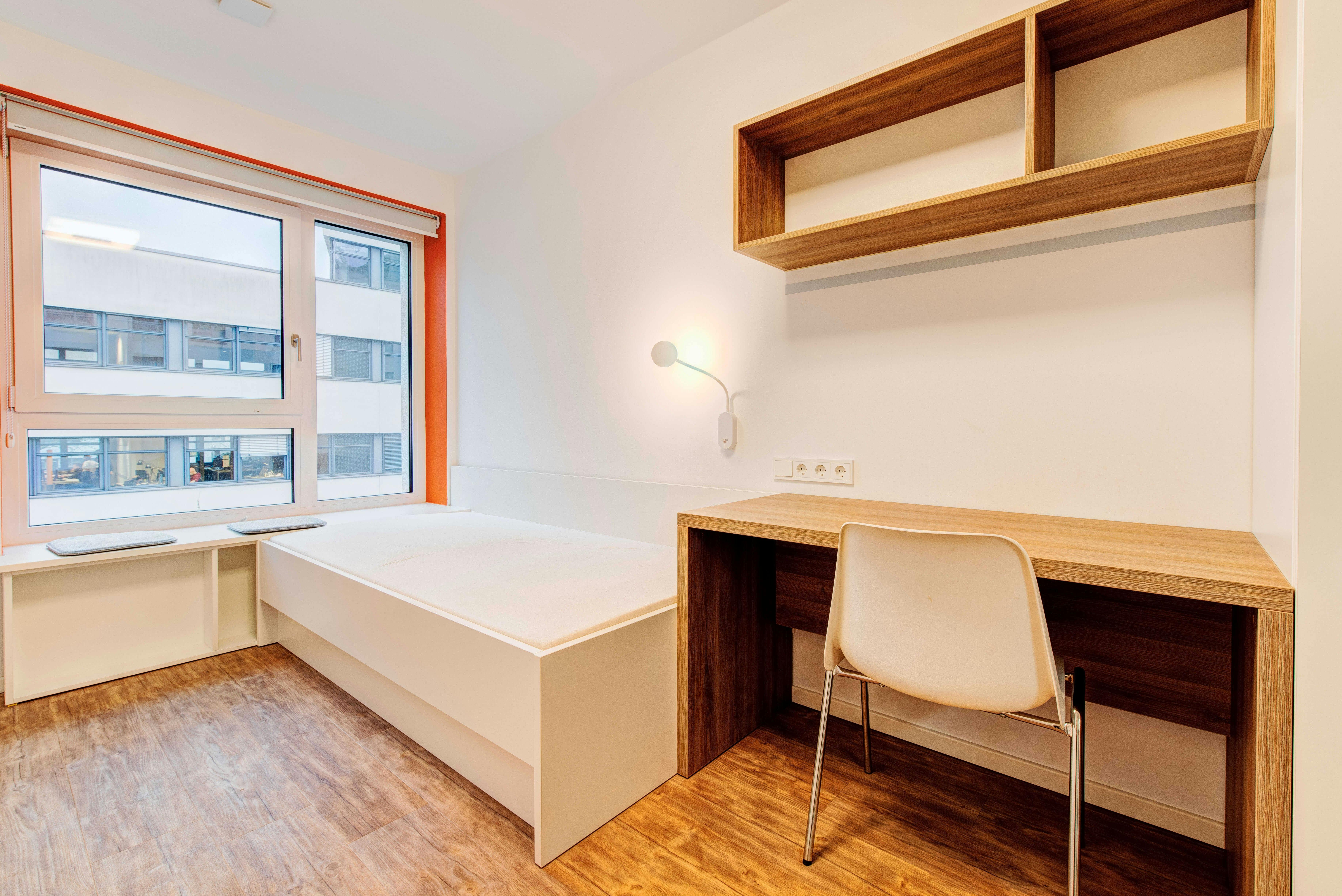 In Berlin's Schöneweide district stands the innovative and digital student residence on the cutting edge for efficiency houses. The building complex was designed with six floors and a communal garden, and is located in the immediate vicinity of the University of Applied Sciences. How is the commute from here to other locations? Tram lines 27, 60, 61 67 and the nightbus N65 stop, is just a few metres from the building complex. Does it have parking space? In the backyard there is a lockable and covered bicycle storage room. There are a plenty of parking spaces in the surrounding area. A parking vignette is...