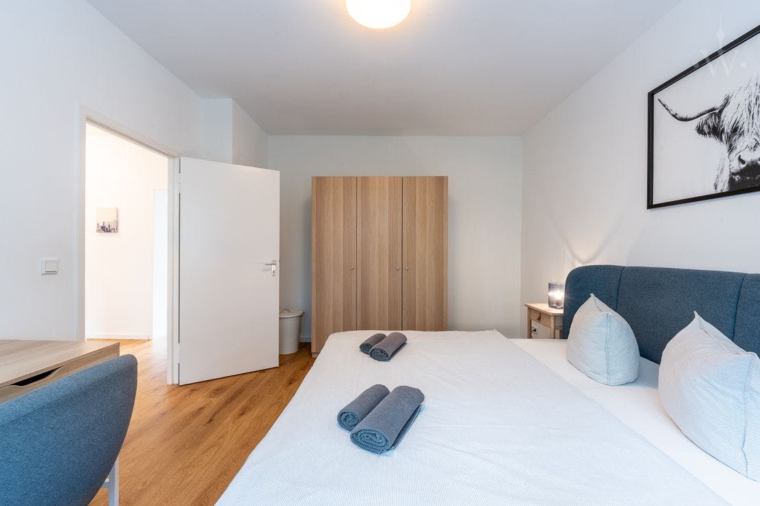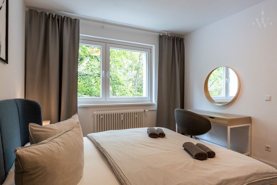 ??? Stylish, furnished 2-room apartment in Schöneberg The lovingly furnished apartment is located on a quiet side street directly on the water, near Bayerischer Platz and the Schöneberg town hall. It features a spacious living room with a dining area and a cozy bedroom – both fully furnished. The bathroom with a walk-in shower and the kitchen have been completely renovated and are of a high standard. A balcony offers ample space to relax after a long day . equipment The following highlights await you: - Bedroom with double bed - Wardrobe - Fully equipped kitchen (electrical appliances, cutlery, dishes, etc. included) - Dining area for up to four people - Bed...