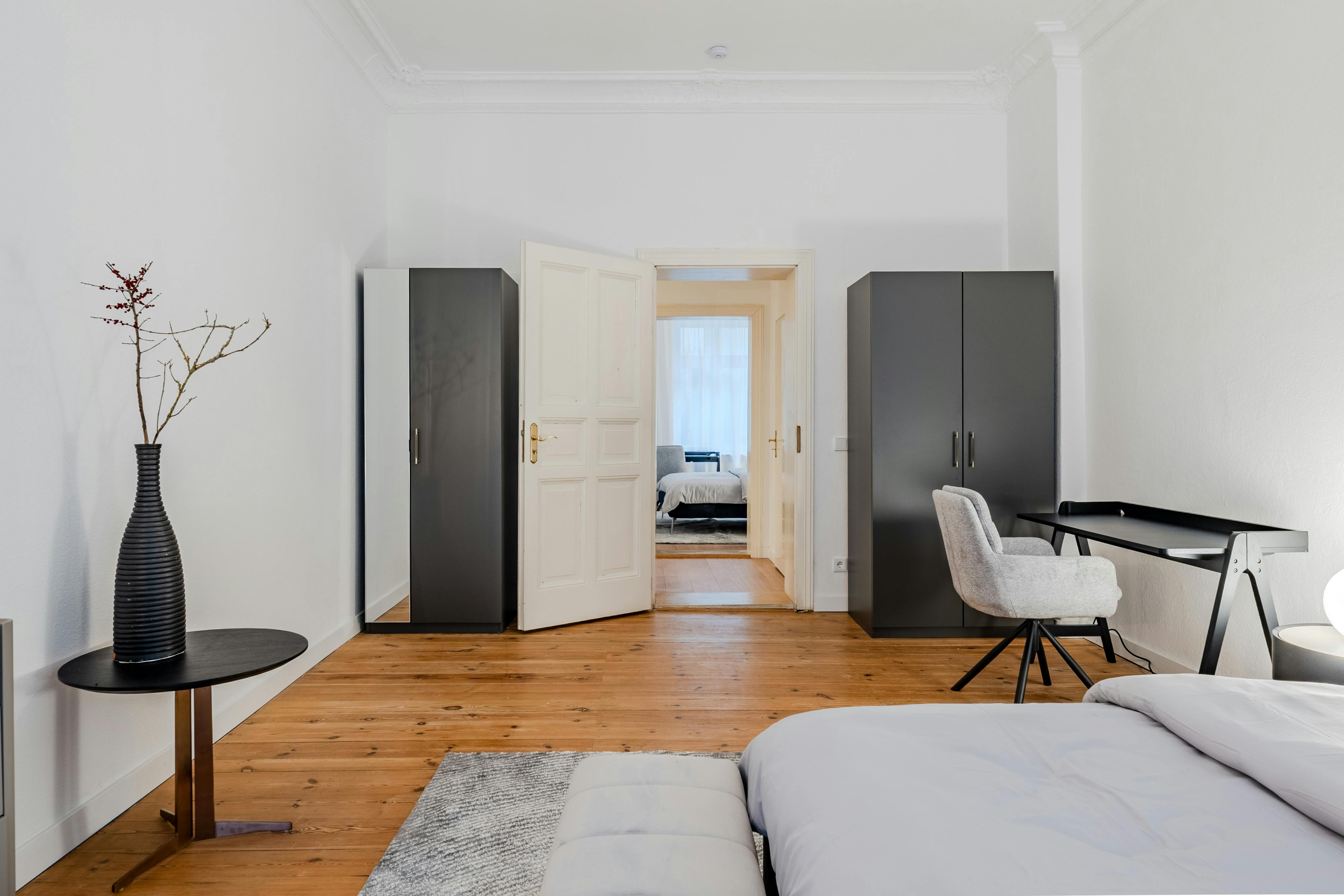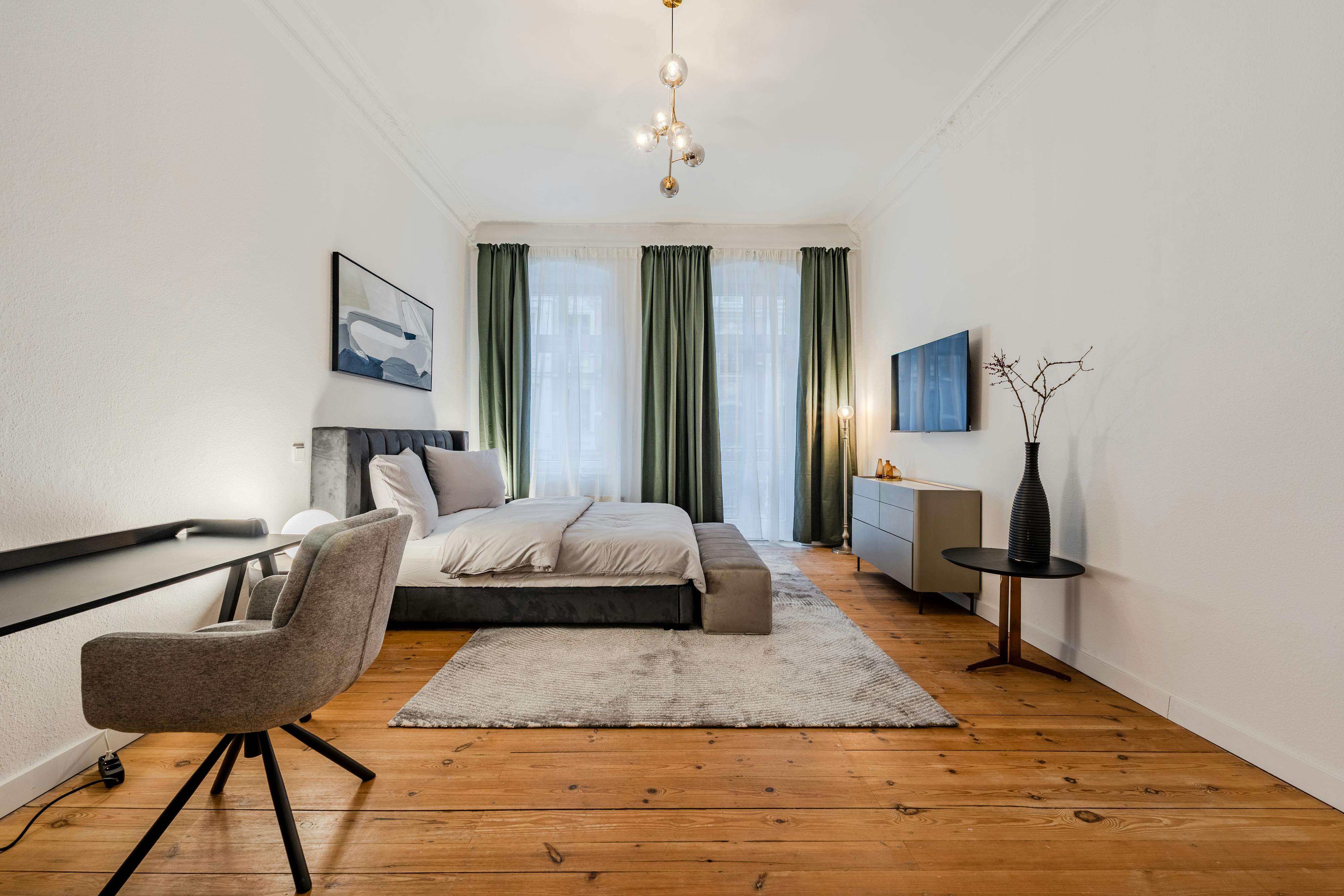 Located in the heart of the trendy neighborhood of Prenzlauer Berg, this fully equipped four-room apartment offers you everything you need for your stay. The apartment is located in the most beautiful and trendy district of the city. Discover the city's coolest bars, restaurants and cafes. Or take a walk in the famous Mauerpark. You live in a side street of Schönhauser Allee. It could not be better! The apartment boasts with an brand new kitchen Bathrooms and Furniture. The friendly dining area invites you to a joint dinner with friends or family. After work, you can relax on the beautiful...
