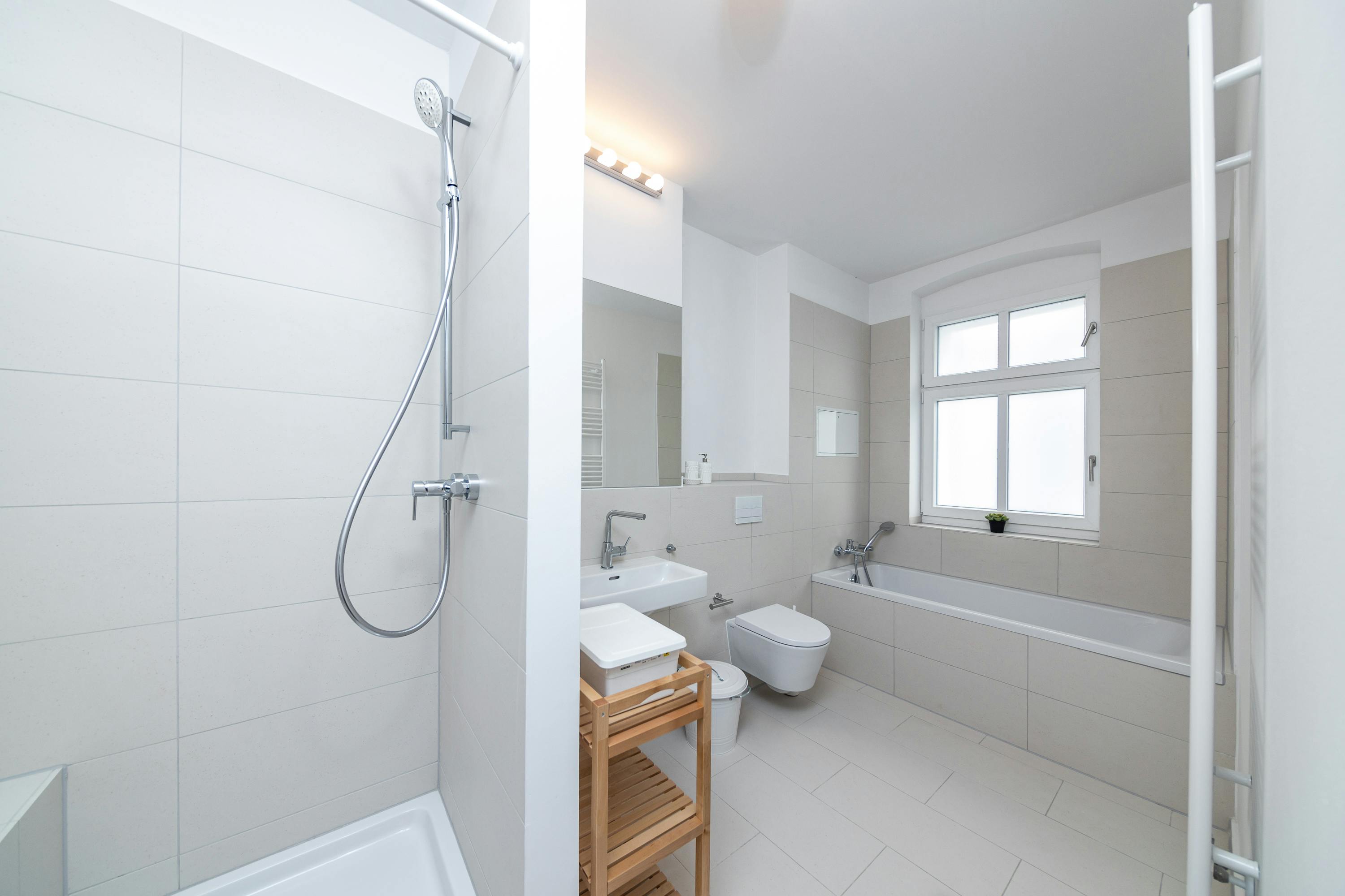 This bright and well-designed 2-room apartment offers approximately 61 sqm of comfortable living space in the vibrant district of Friedrichshain. The apartment features one cozy bedroom and a modern open kitchen/living room area, creating a welcoming and functional layout. The bathroom is equipped with a bathtub and shower , perfect for relaxing after a long day. Please note that small kitchen appliances such as a toaster or electric kettle are not included. Washing machine is in the apartment The apartment includes a washing machine connection, allowing tenants to install their own washing machine if desired.A laundry room with washing machines and dryers...