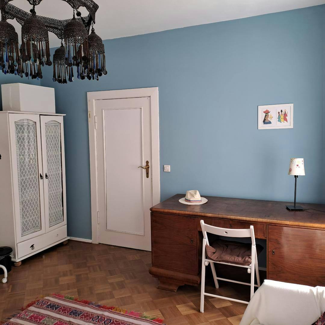 Wir bieten ein schönes helles WG Zimmer möbliert und gepflegt. 2 Bäder und ein Gäste Toilette. Garten, Küche zur Mitbenutzung. 5 mn entfernt von der Station S und Ubahn Tempelhof. Weitere Infos wenn Interesse bsteht.