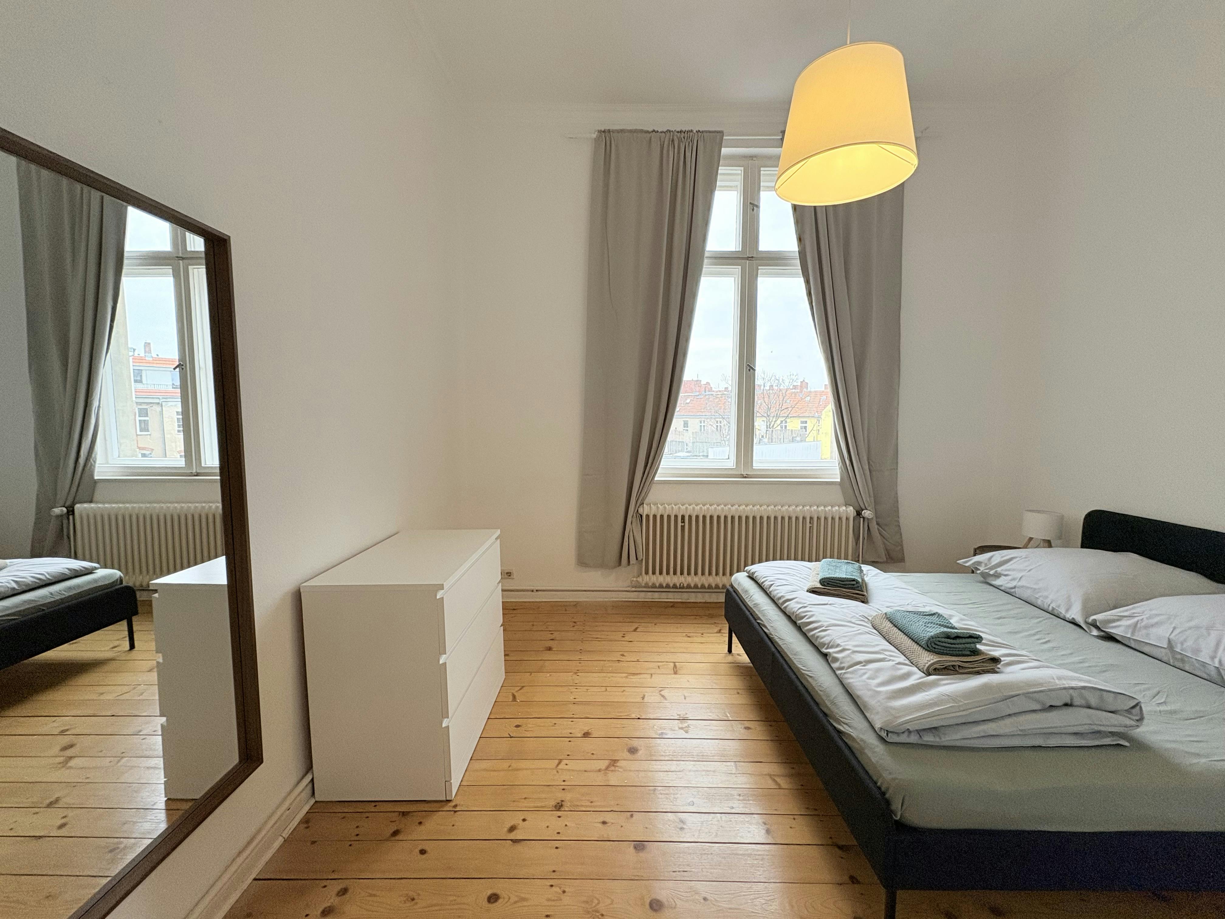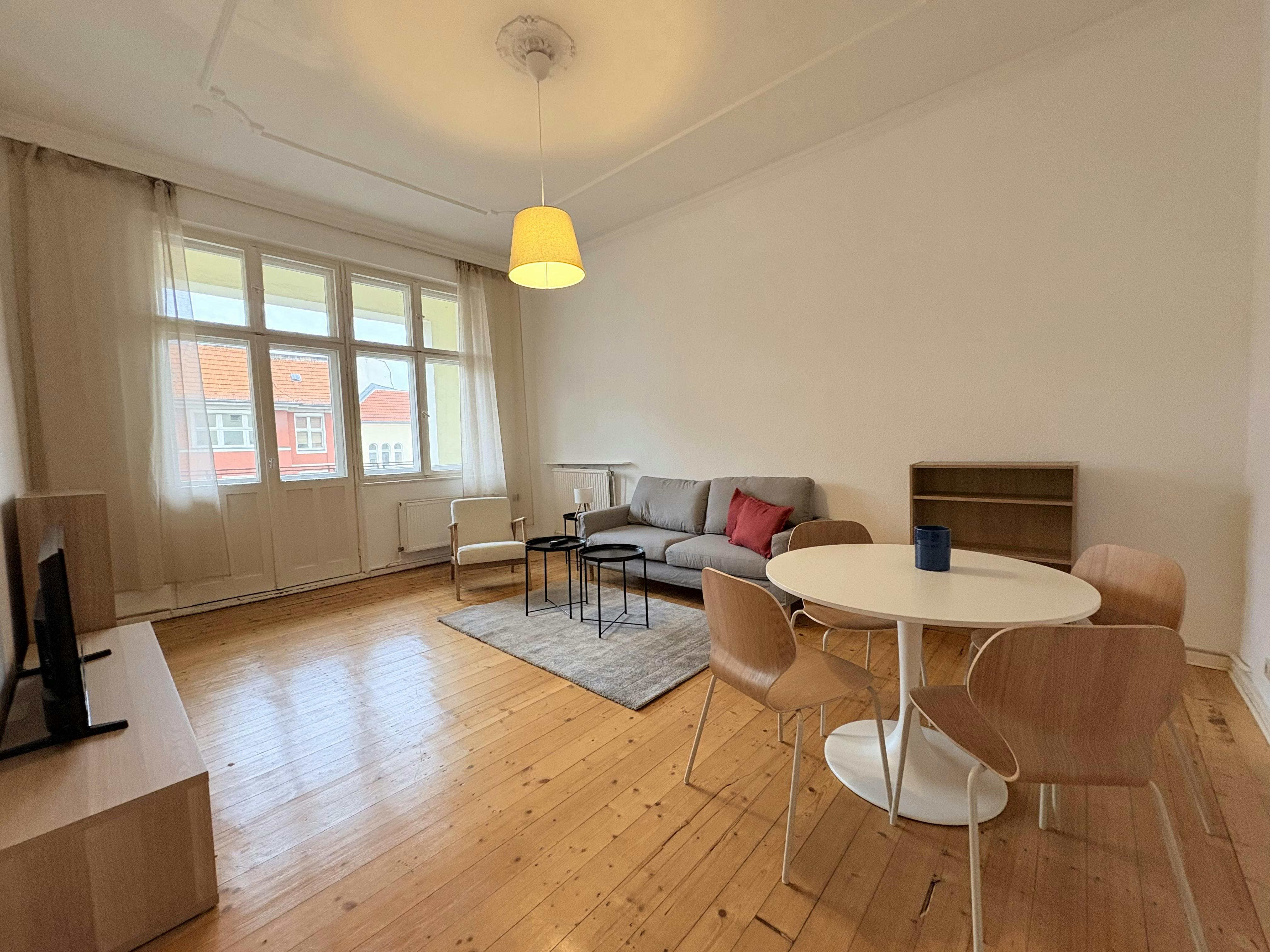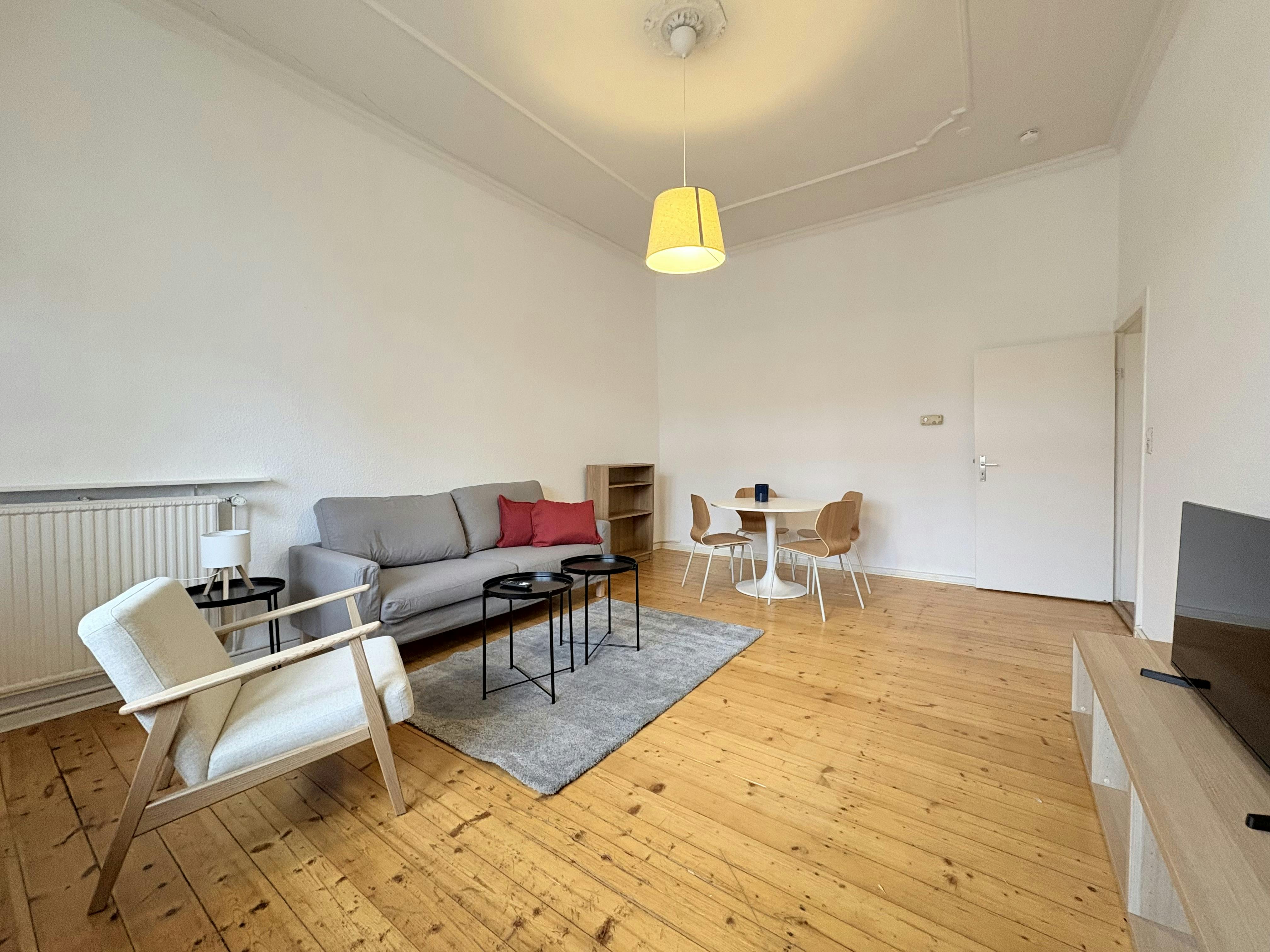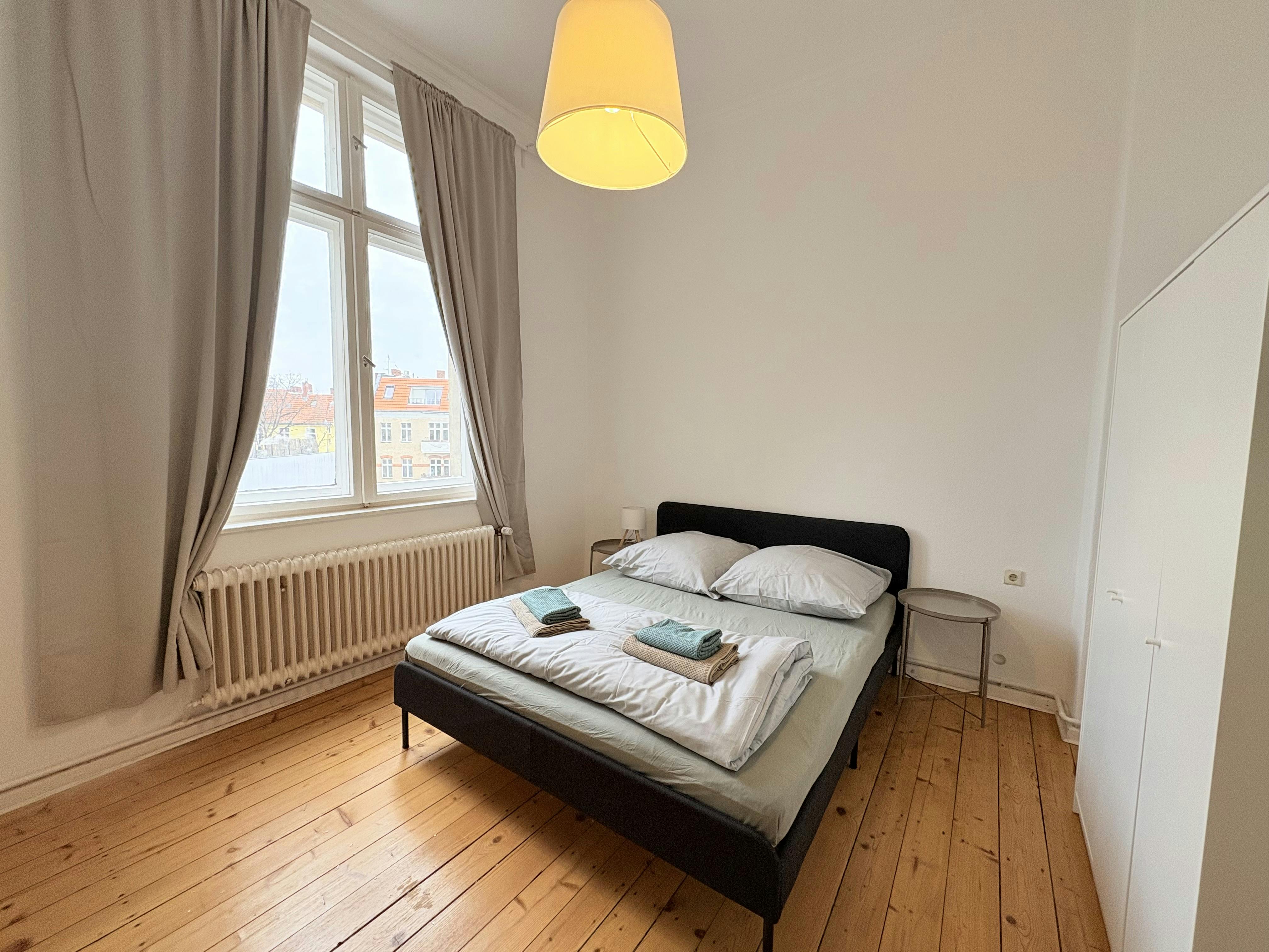 Fully furnished 2.5-room apartment (90 m2) in the popular Schöneberg district near Volkspark. The apartment includes one bedroom, a bright living room, a fully equipped kitchen, a bathroom, and a private balcony. The flat is move-in ready and includes internet and a smart TV. All utilities are included in the rent, and Anmeldung (official registration) is possible. Located in a quiet area with excellent public transport connections, shops, and green spaces nearby, it is perfect for comfortable city living.
