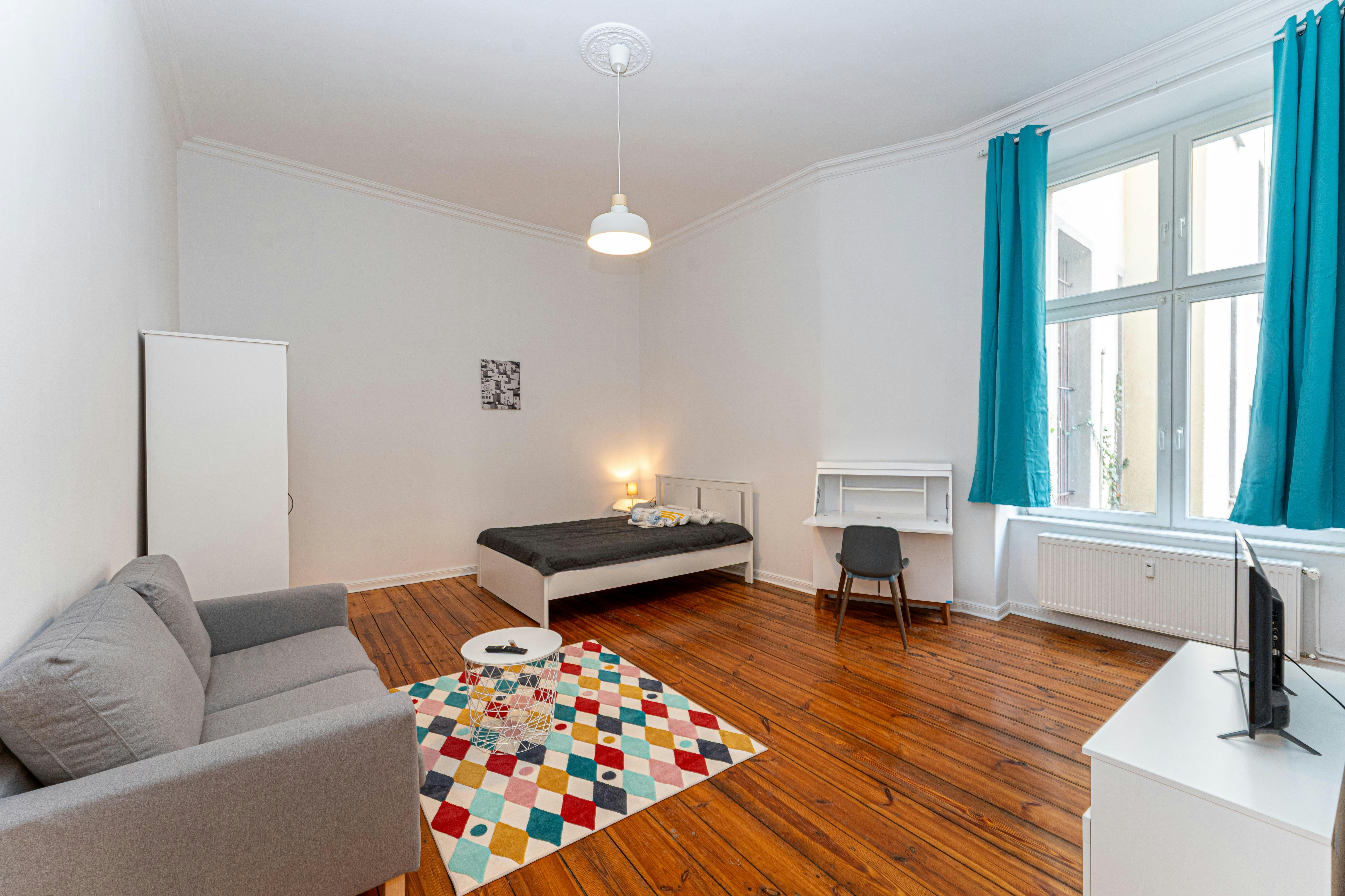 ? Urban Living in Prenzlauer Berg – Wisbyer Straße Arrive. Exhale. Feel at home. Welcome to one of Berlin’s most desirable neighborhoods. This charming 1-room apartment combines urban energy with quiet retreat — perfectly positioned in the vibrant district of Prenzlauer Berg. ? The Apartment This beautifully cut 43 sqm studio apartment impresses with: High ceilings creating an airy, open atmosphere Elegant wooden flooring Quiet location in the side wing (ground floor) Spacious kitchen and generously sized bathroom Fully equipped interior – ready to move in The apartment offers the perfect balance between comfort and functionality — ideal for professionals, creatives or students who value both centrality and calm. All-inclusive living: Strong...