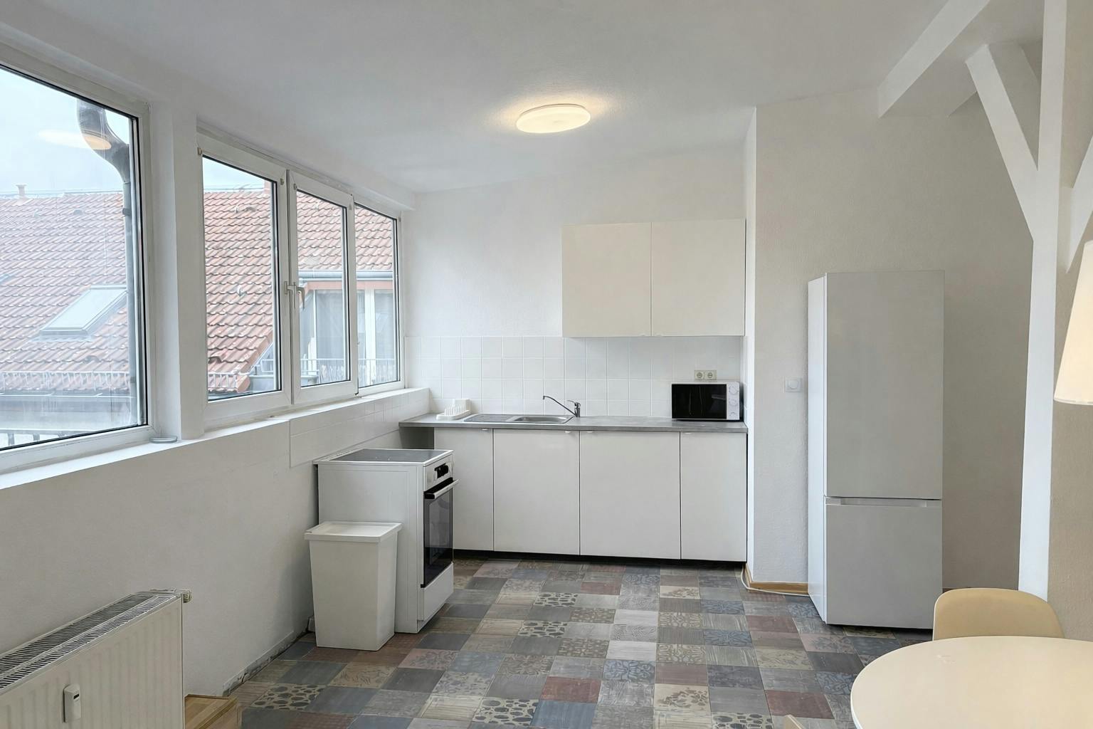 This rooftop penthouse offers a perfect stay in a spacious and comfortable setting. The apartment features three bedrooms, each with a king-size bed, and a large studio-style living room with access to a generous balcony. The open kitchen is fully equipped and includes a large dining table. The balcony offers a beautiful view, and the big windows fill the rooms with natural light all year round. Welcome to your dream home in the heart of Kreuzberg, Berlin! This stunning furnished apartment combines modern comforts with the charm of a beautiful historical building. All bills are included and registration is possible. The...