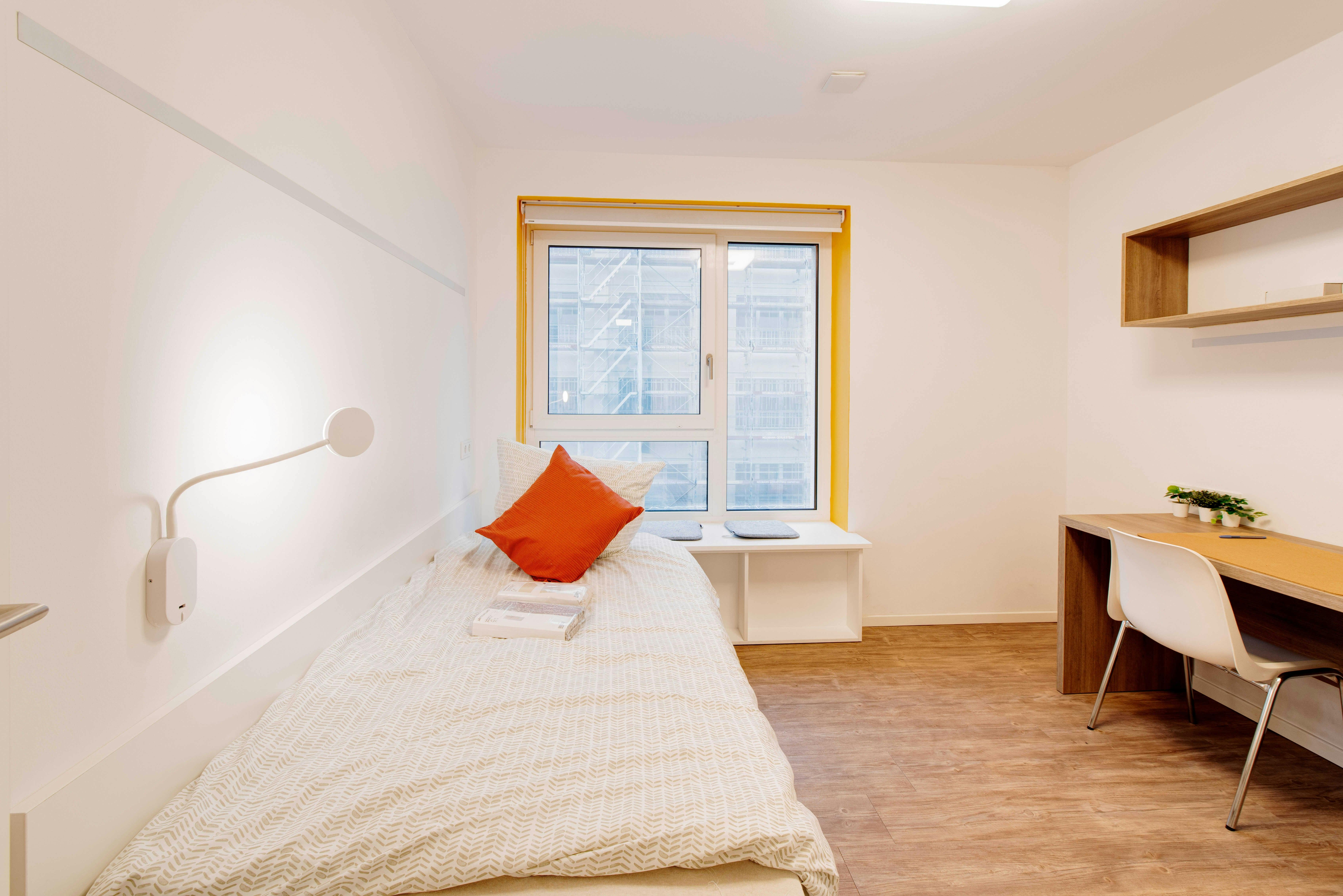 In Berlin's Schöneweide district stands the innovative and digital student residence on the cutting edge for efficiency houses. The building complex was designed with six floors and a communal garden, and is located in the immediate vicinity of the University of Applied Sciences. How is the commute from here to other locations? Tram lines 27, 60, 61 67 and the nightbus N65 stop, is just a few metres from the building complex. Does it have parking space? In the backyard there is a lockable and covered bicycle storage room. There are a plenty of parking spaces in the surrounding area. A parking vignette...