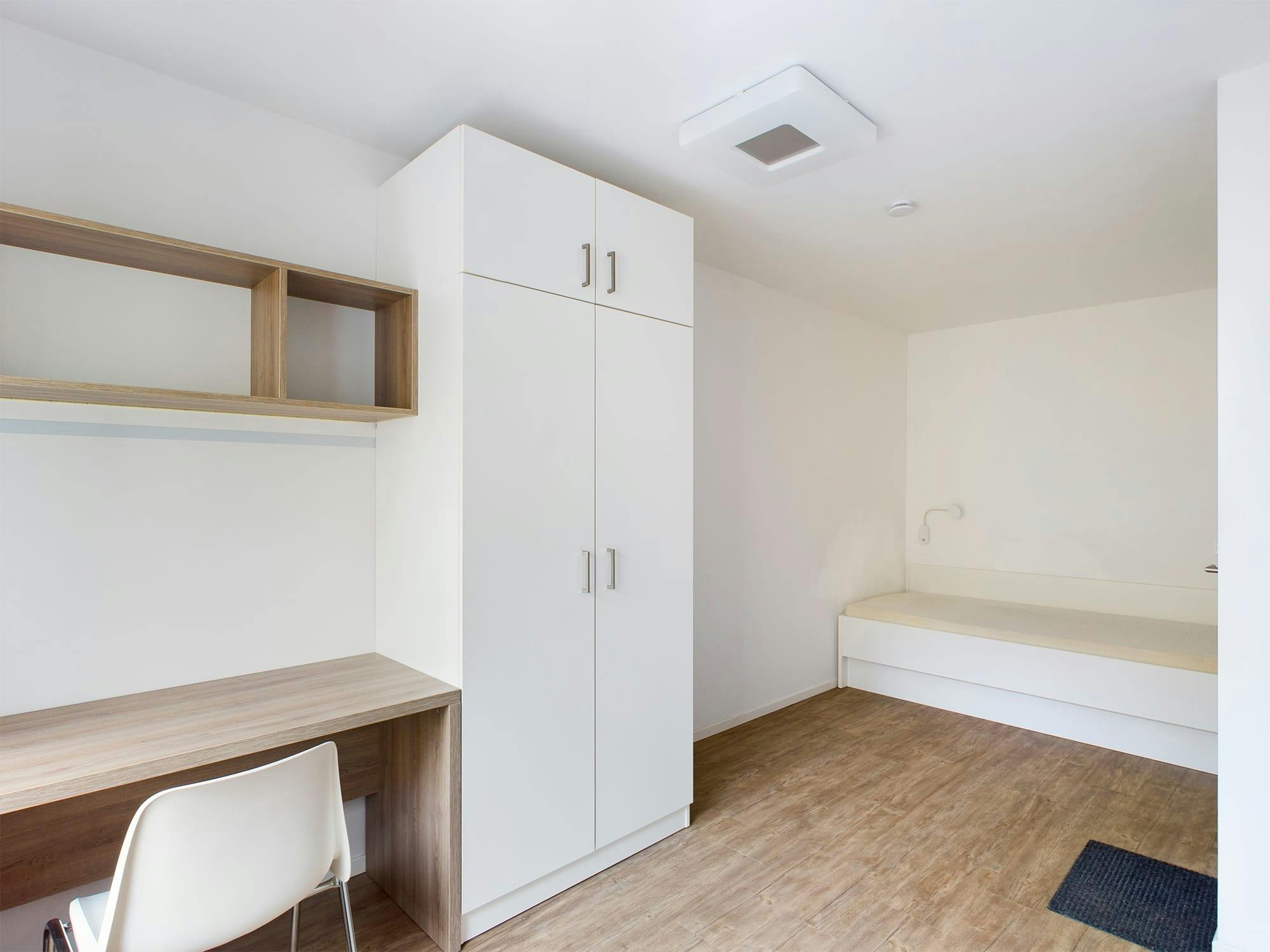 In Berlin's Schöneweide district stands the innovative and digital student residence on the cutting edge for efficiency houses. The developed building complex was designed with six floors and a communal garden, and is located in the immediate vicinity of the University of Applied Sciences. How is the commute from here to other locations? Tram lines 27, 60, 61 67 and the nightbus N65 stop, is just a few metres from the building complex. Does it have parking space? In the backyard there is a lockable and covered bicycle storage room. There are a plenty of parking spaces in the surrounding area. A parking...