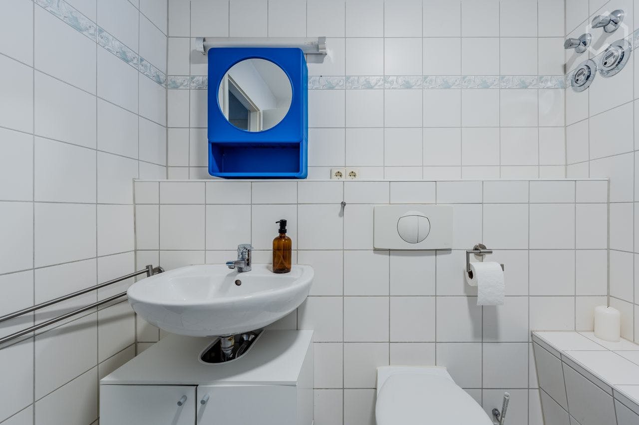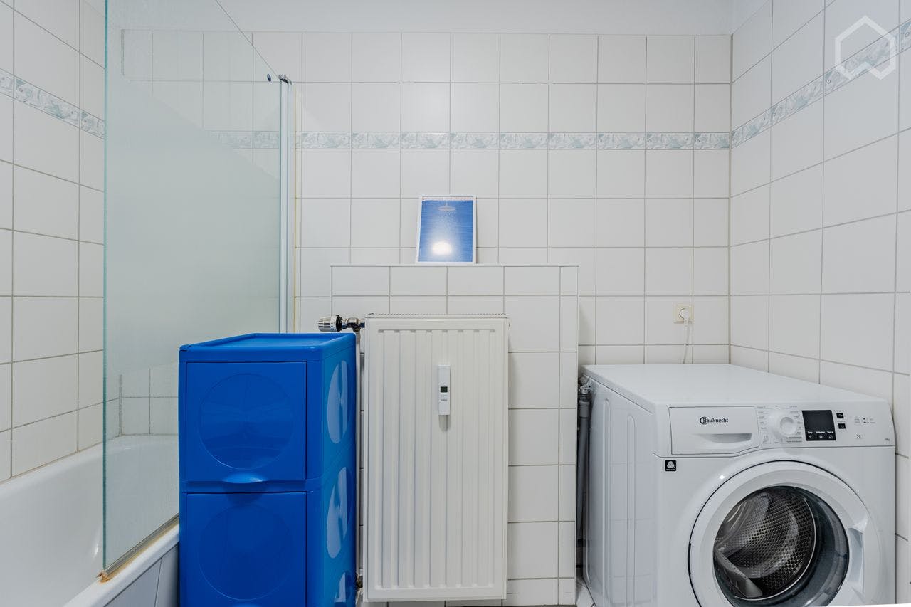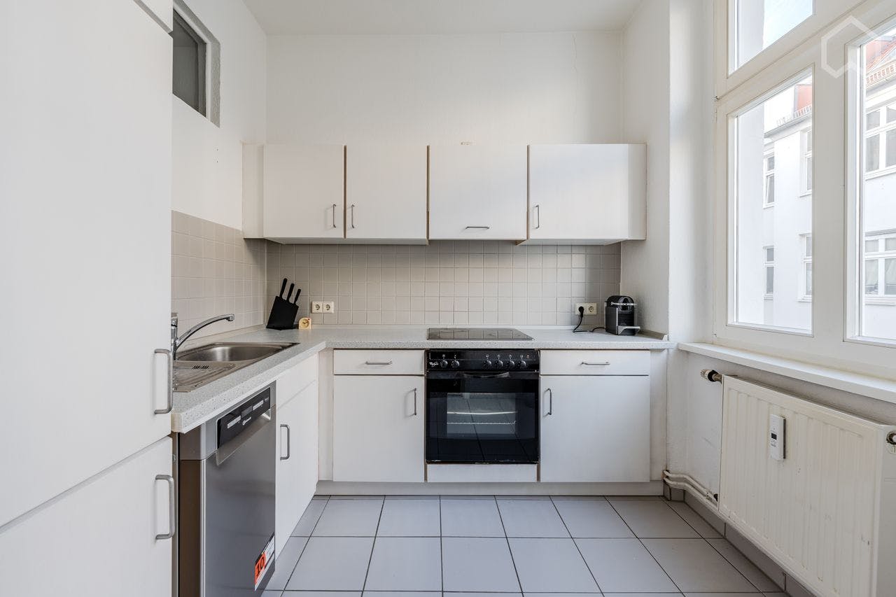 Stylish, modern furnished 2-room apartment (52 sqm) with a sunny balcony and bathtub, located on the 3rd floor in trendy Prenzlauer Berg. The flat is in the backyard and all neighbors are respectful. The flat has a well-designed layout with lots of natural light, fully equipped with dishwasher and washing machine. It's a typical Berlin Altbau building with vintage charm and thanks to modernization, the flat is well insulated and therefore warm and quiet. The flat has an excellent location close to the Ringbahn. The closest stations including S/U Schönhauser Allee, S Gesundbrunnen and S Bornholmer Str., which makes traveling very convenient and...